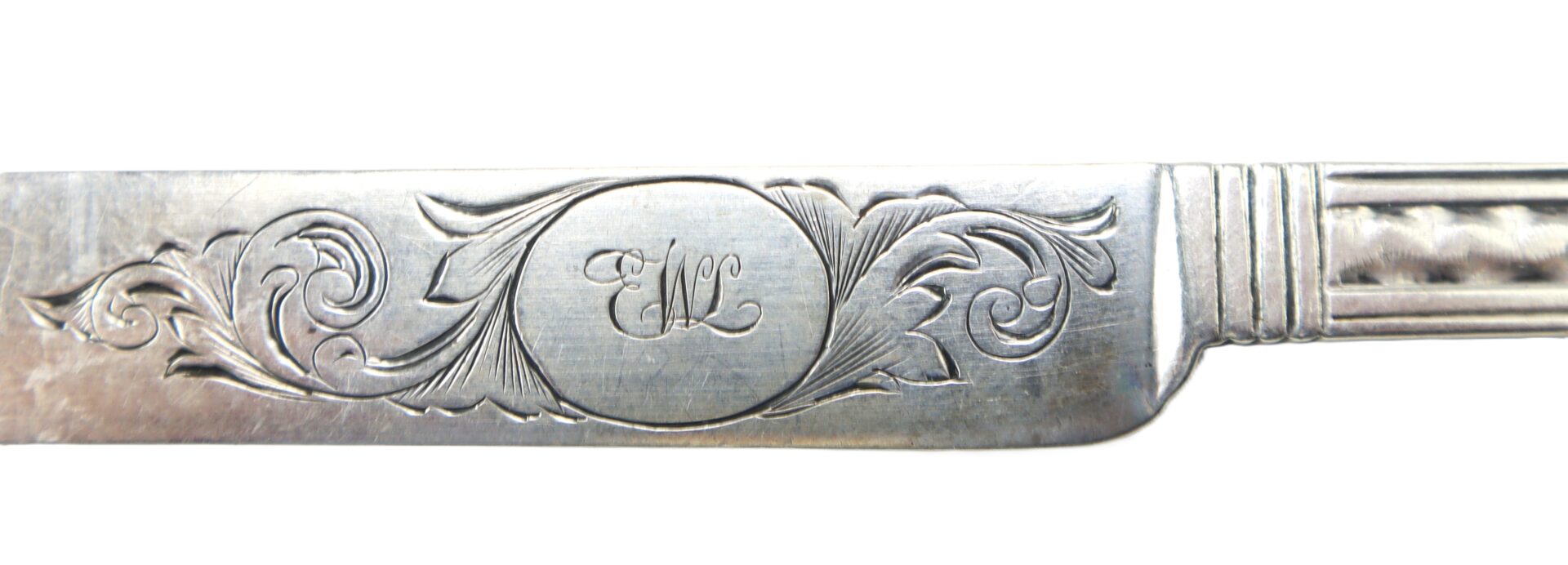 Marked “Kirk &Son, Baltimore” Monogrammed “EWL” Coin silver – weighs several ounces, coin silver is 90% pure silver. a beautiful example!