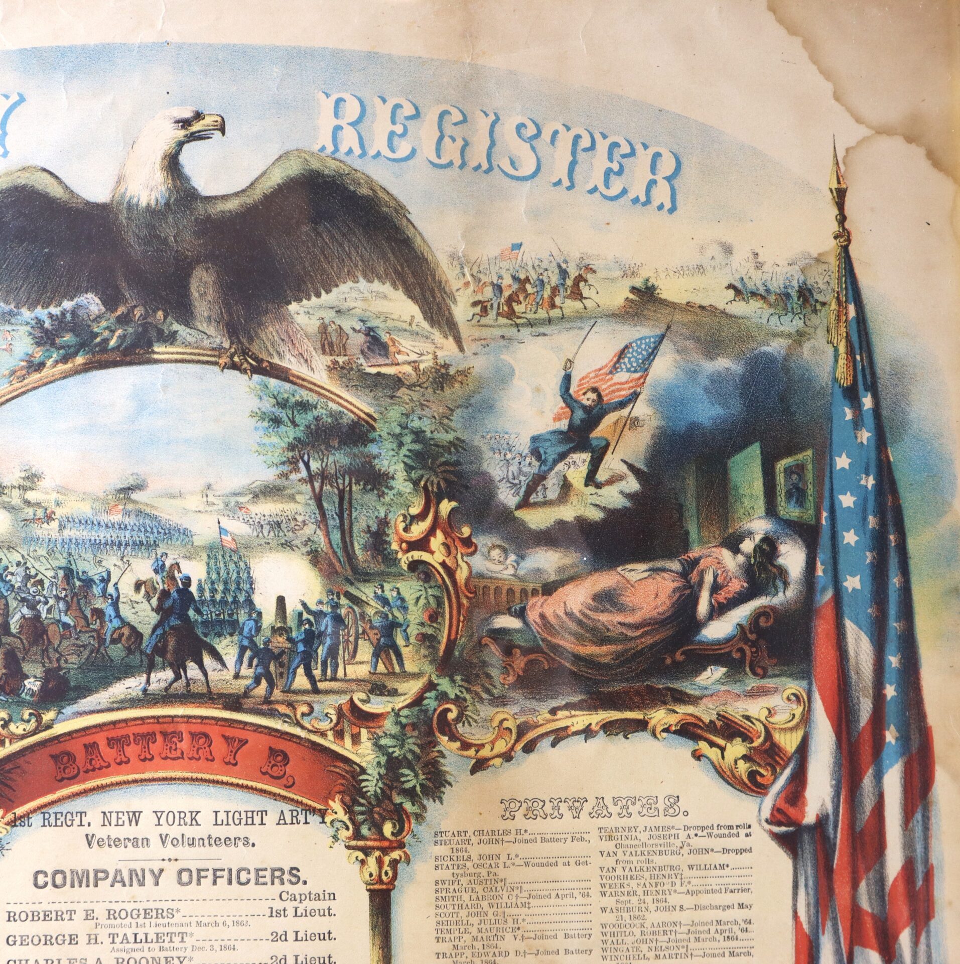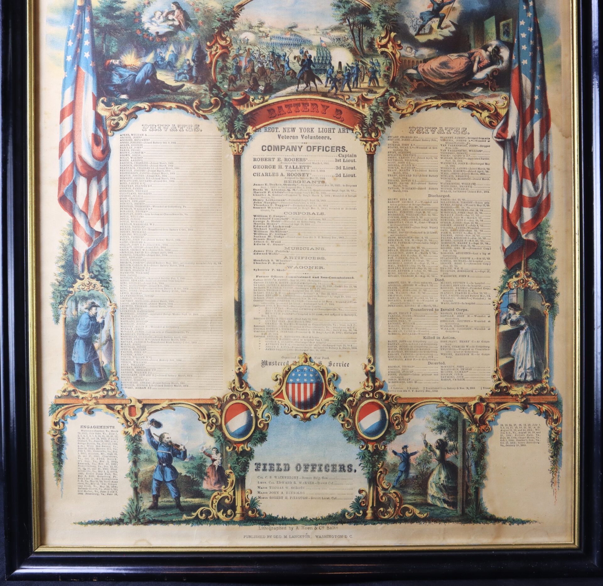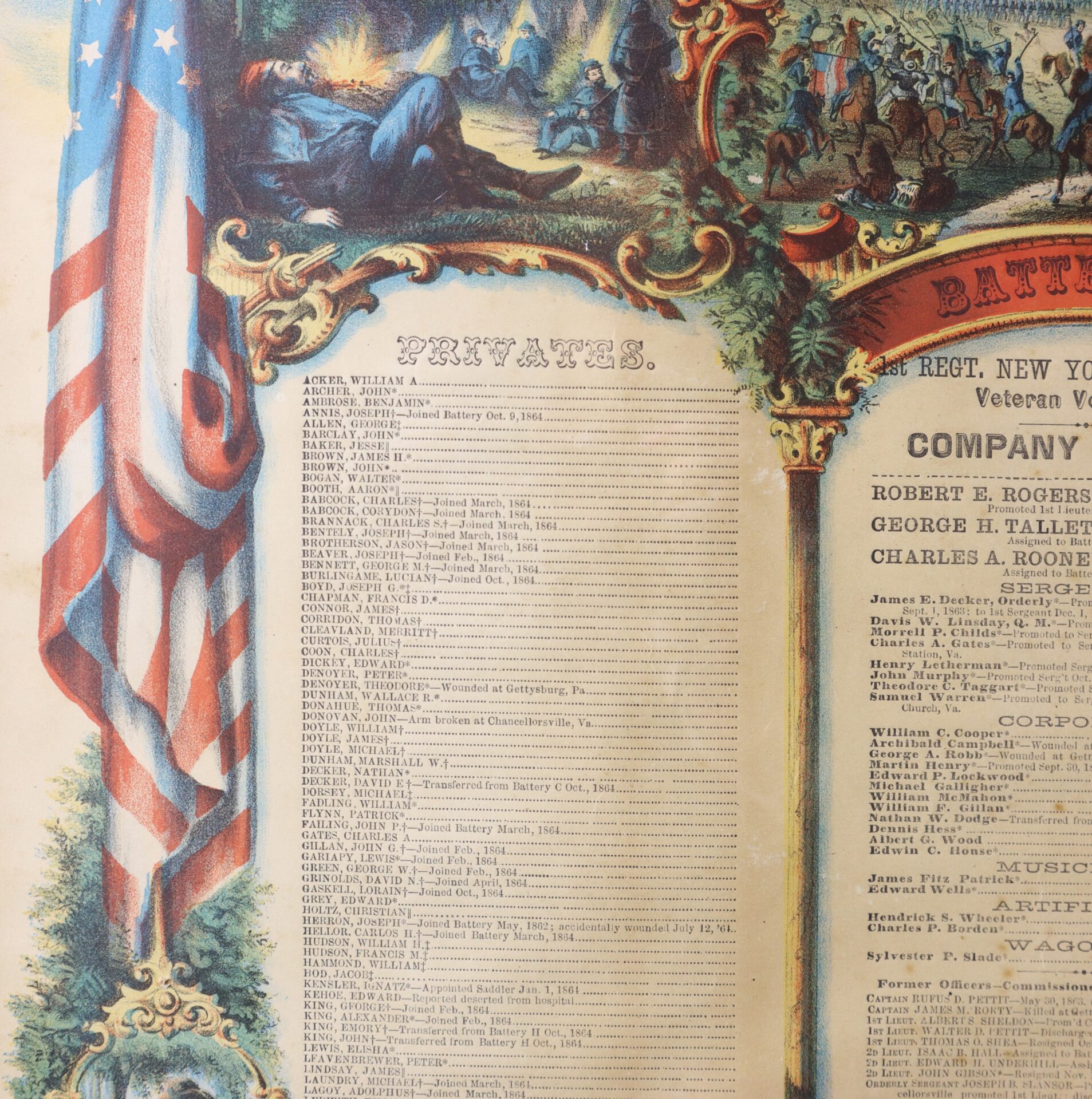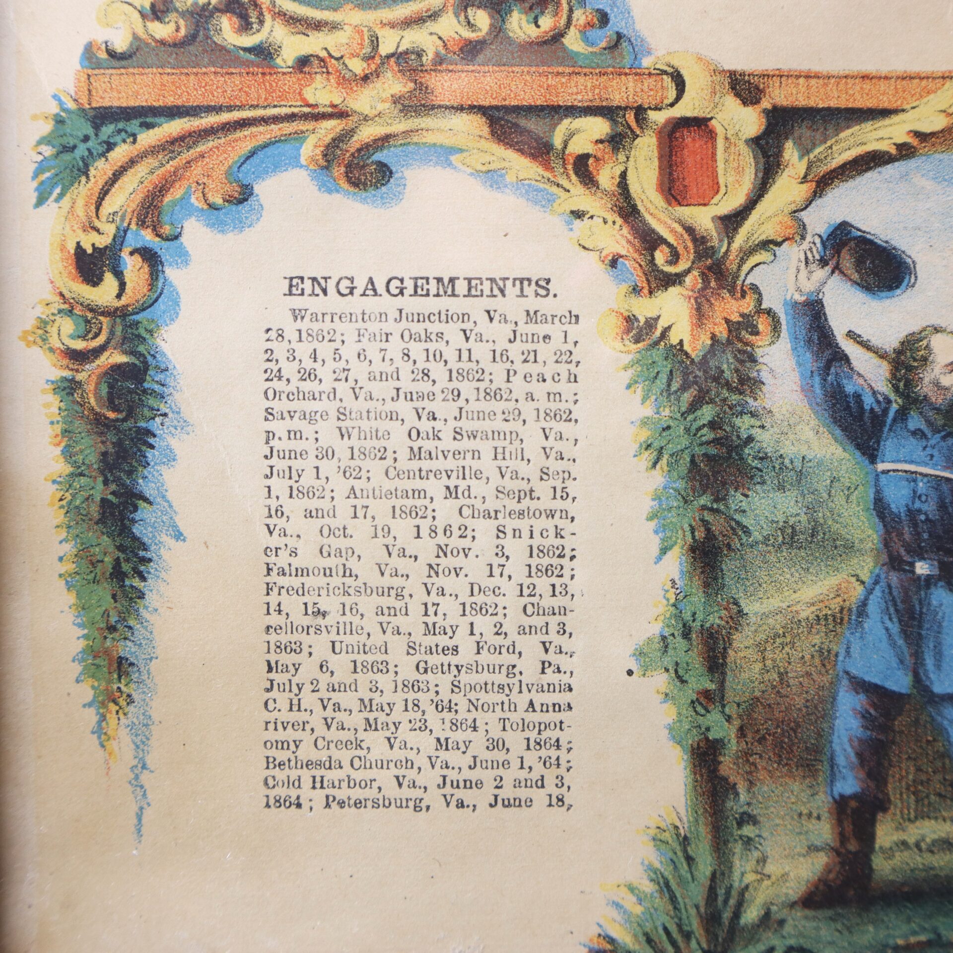 This memorial lithograph belonged to SGT James Decker who commanded a section of guns at Gettysburg.