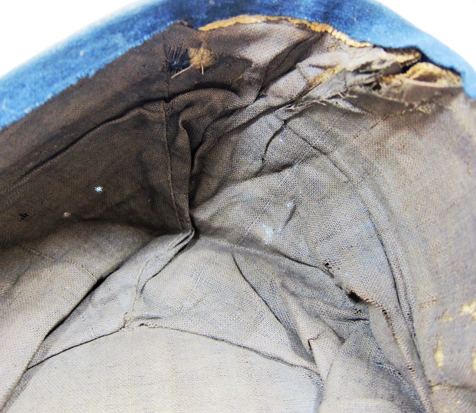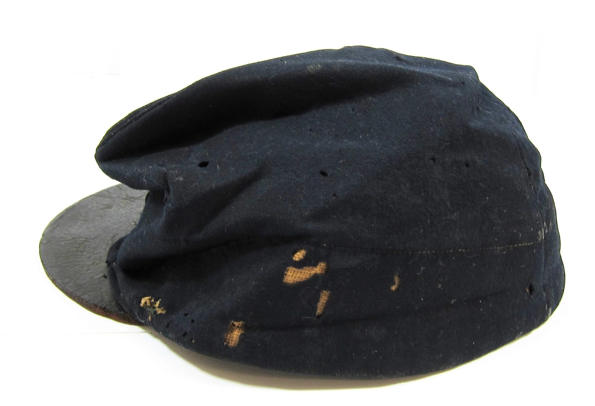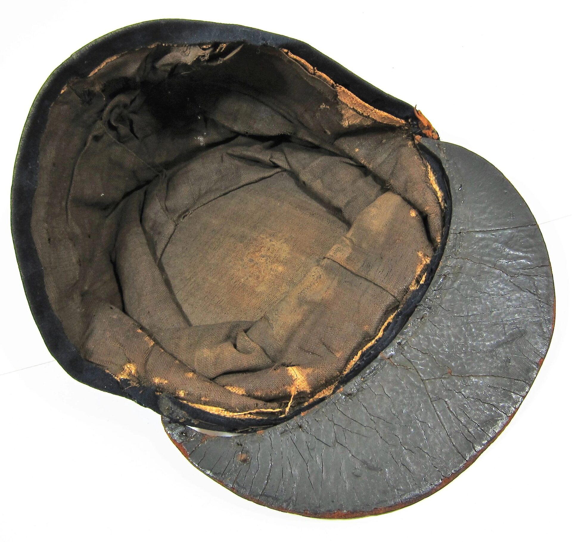 23rd New York Forage Cap – Inventory Number: UNI 010 – SOLD Union Forage Cap exhibiting original insignia for Co. K, 23rd Regiament. Nice honest forage cap exhibiting the original 5/8″ silvered false embroidered letter “K” and 3/8″ silvered embroidered number “23”. Wool body shows a small amount of moth holes. The visor is constructed of a thick unstitched leather for 2″ on one side. Interior is missing the sweatband, but a full blown polished cotton lining is intact. The cap surfaced in the Waverly New York Area, giving a likely association with the 23rd New York Volunteers who were recruited in that area. The regiment served for two years, seeing action and taking causalities at Second Bull Run, South Mountain, Antietam, and Fredericksburg. Accompanied by letter of provenance. Inventory Number: UNI 010 – SOLD