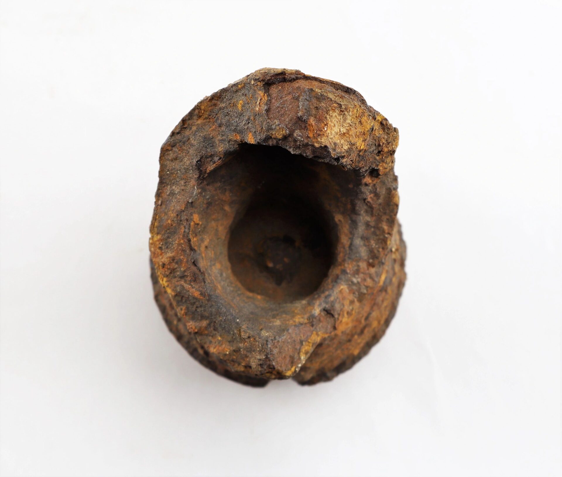 3.67″ Case-Shot Hotchkiss Artillery Shell – Inventory Number: ART 285 / Hold Scarce example purchased by our gallery directly from the detectorist who found it. It was recovered below lookout Mtn. in Tenn. River. Portion of the bolt with the base cup affixed. Inventory Number: ART 285 / Hold
