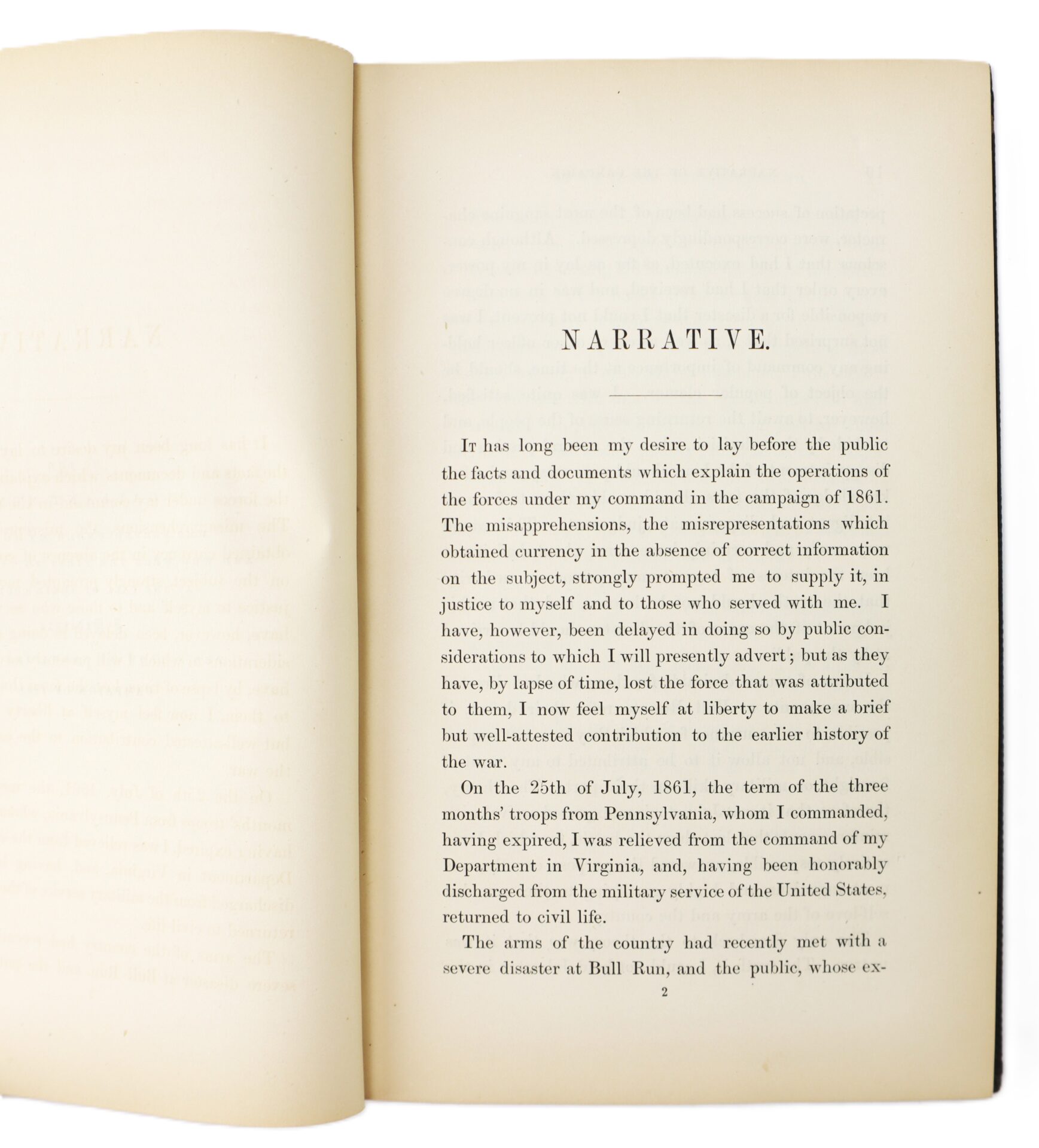 Such signed presentation copies are scarce and highly desirable, offering a direct personal connection to a senior Union general and one of the most debated figures of the early war.