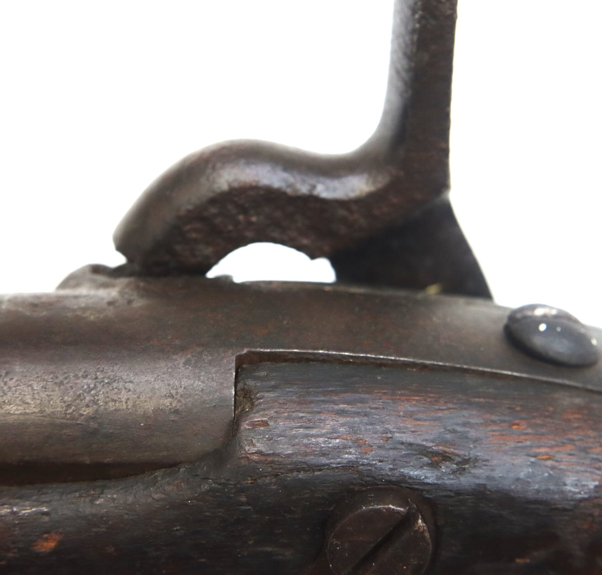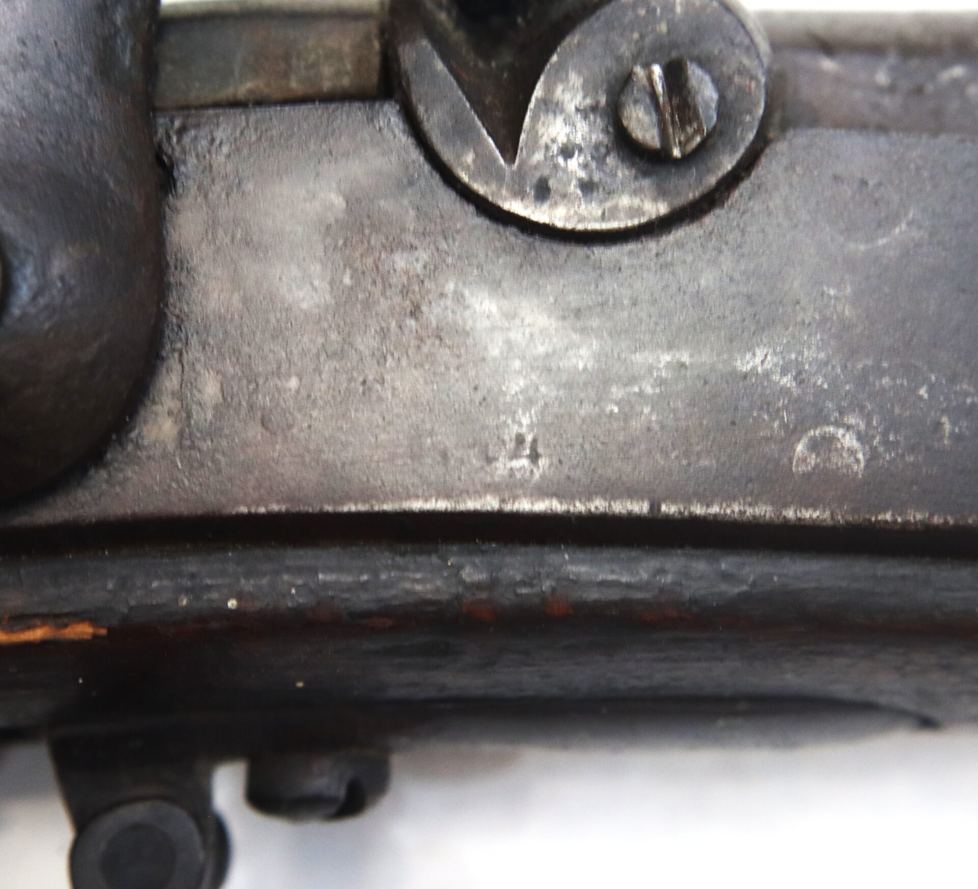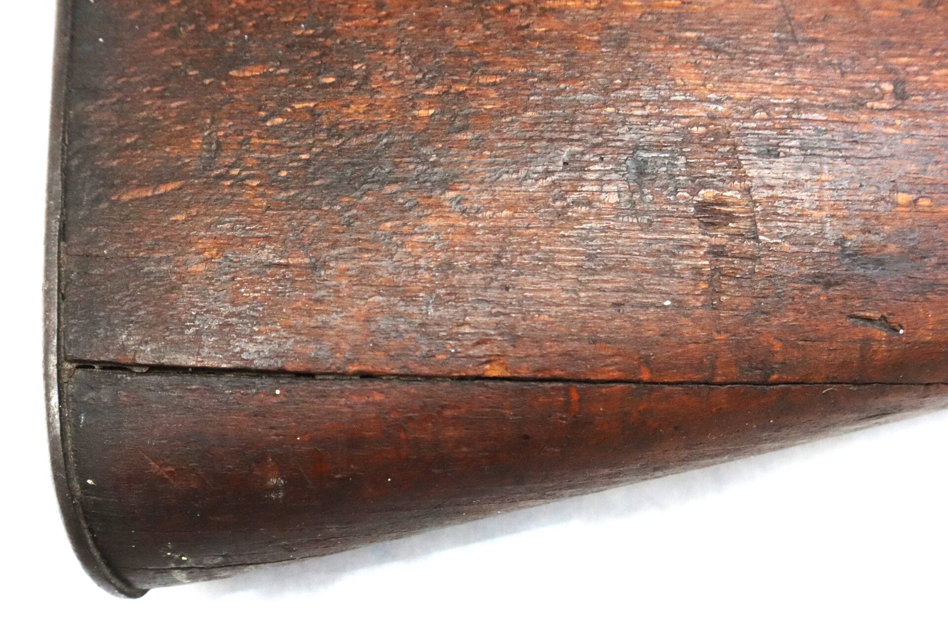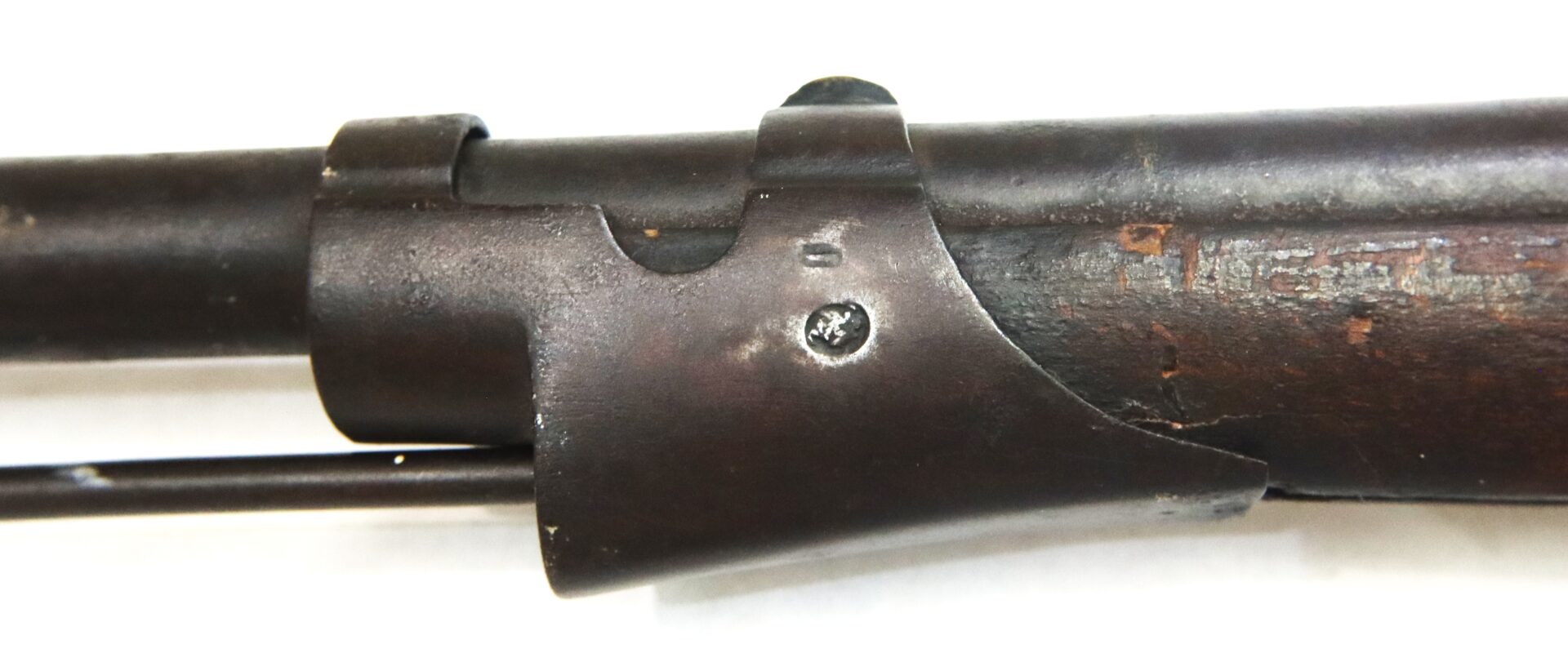This example is fitted with a Richmond‑style hook shaped hammer often encountered on Confederate altered arms. All steel components display a deep dark brown patina consistent with age and service. The left rear of the barrel bears three inspector stampings including “NM,” “19,” and an eagle device.