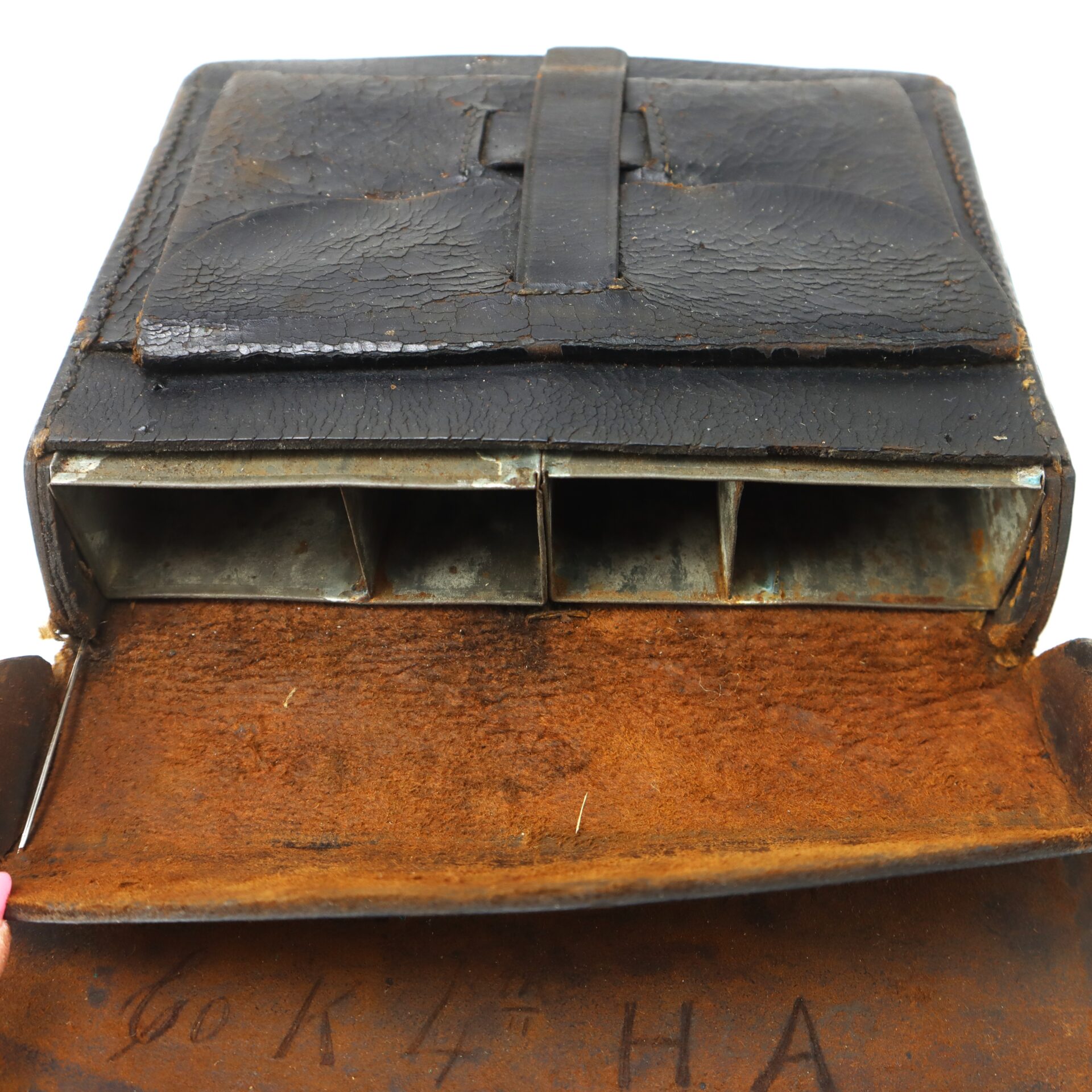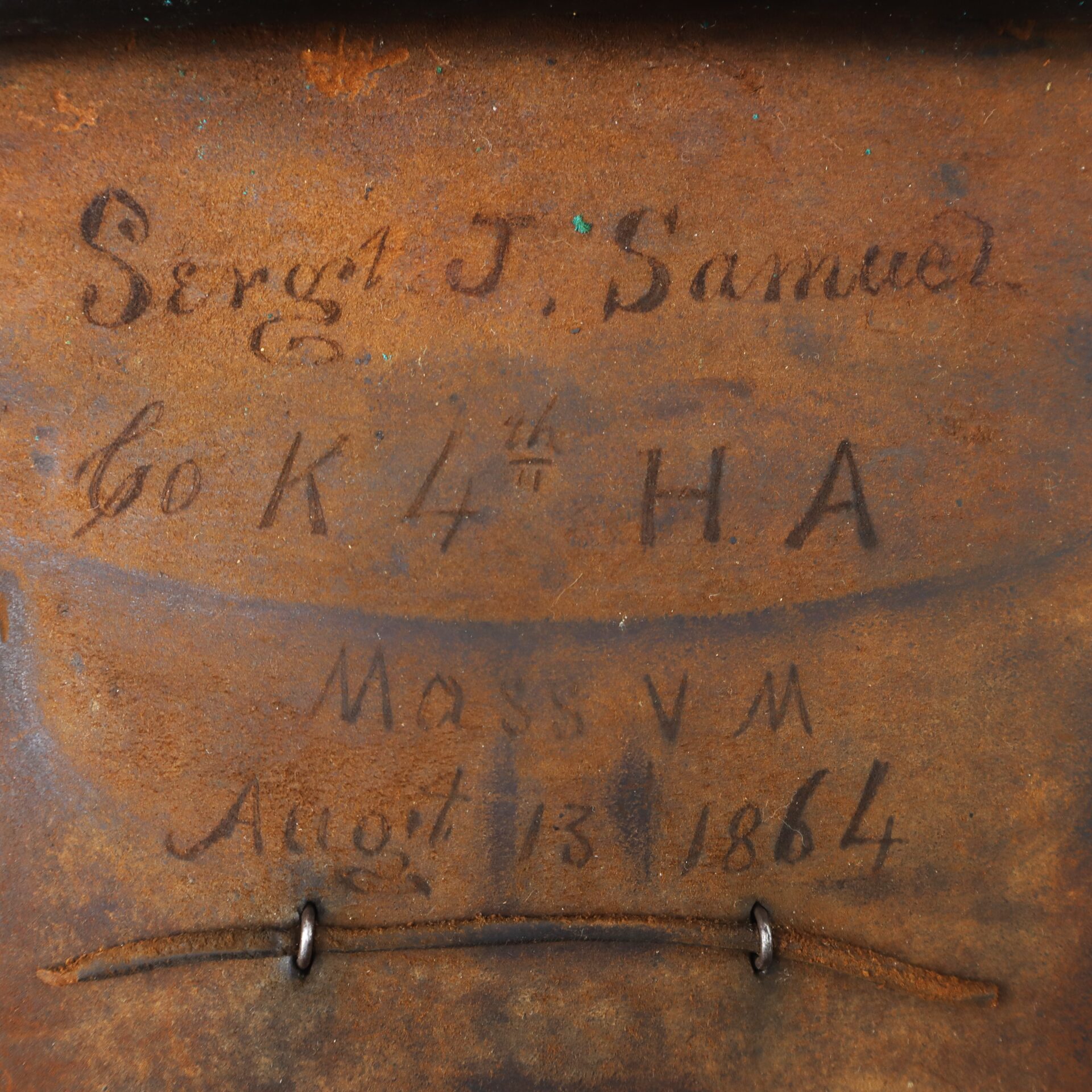 Interior flap bears an awesome period inscription identifying it to “Sergt. J. Samuel, Company K, 4th H.A. Mass. V.M. – August 13th, 1864”.