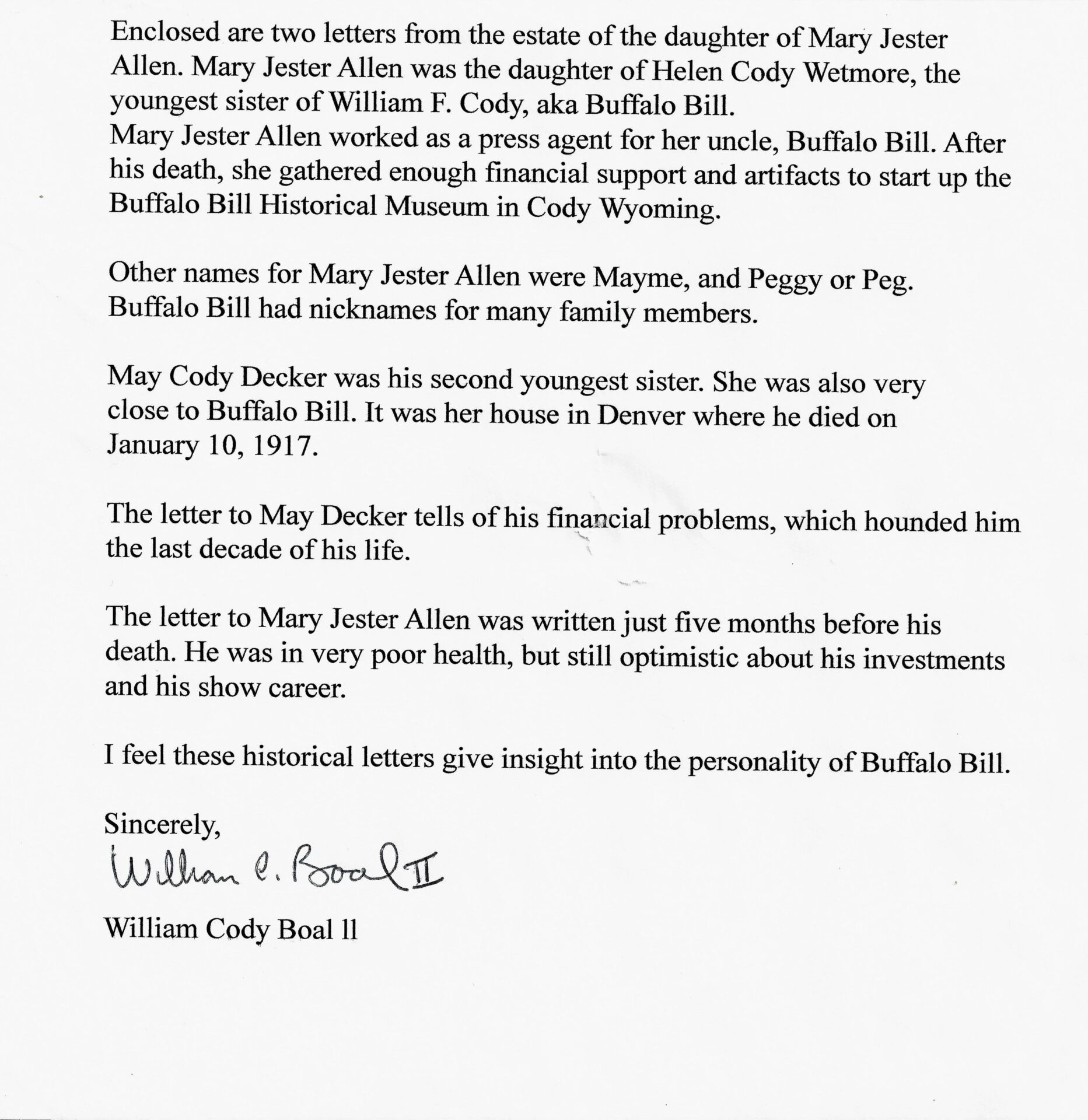Buffalo Bill Cody Letter / Sold