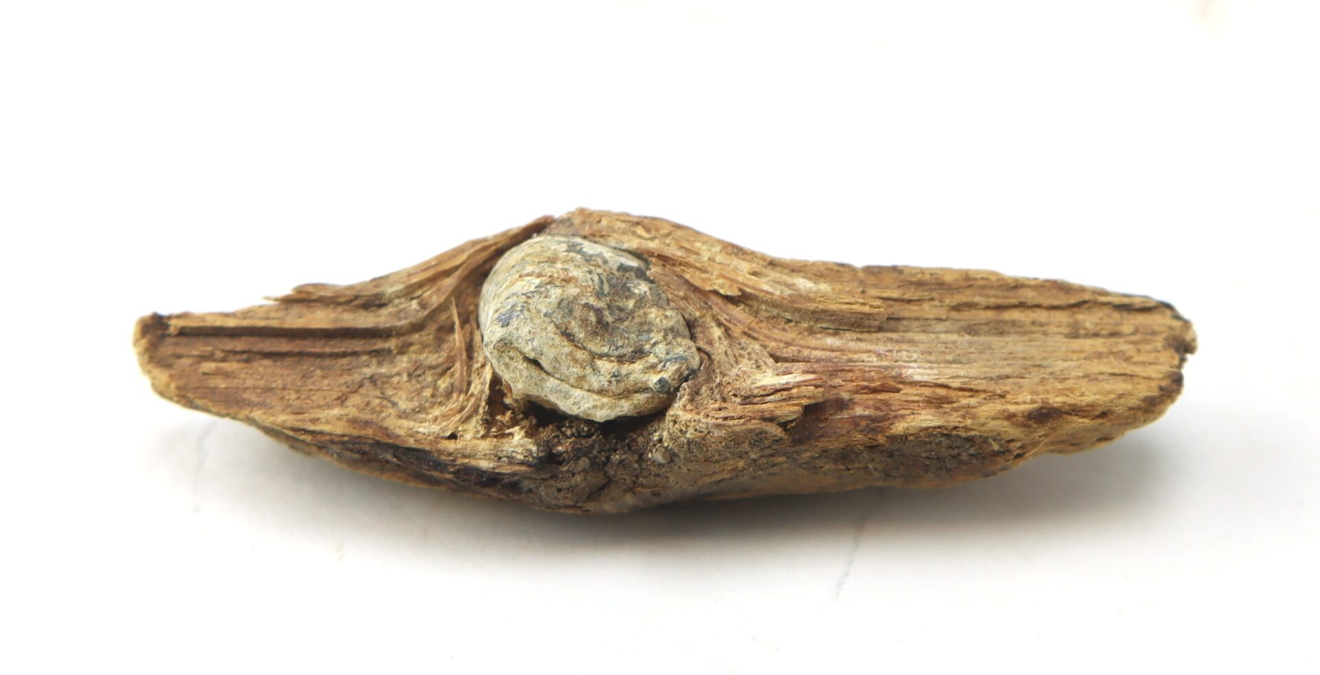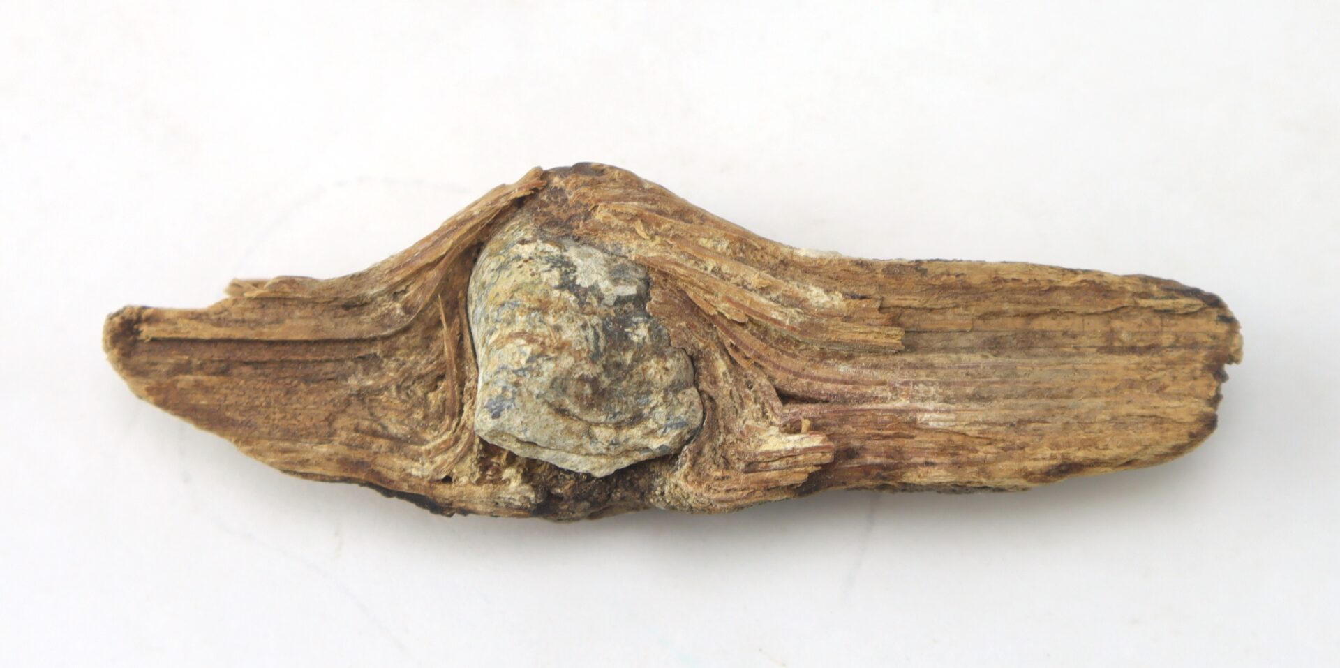 A fine old souvenir “bullet in wood” from the Battle of the Wilderness. The piece of wood, all that remains of a tree that once stood in the path of the two battling armies, is about 3 ½” long and 1.25” wide. A three-groove “Minie ball” is visible as is the path of the projectile through the wood. The wood remains very solid and has a dark patina. A very nice display piece