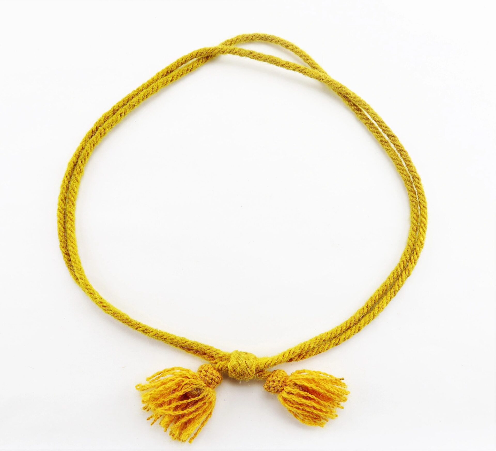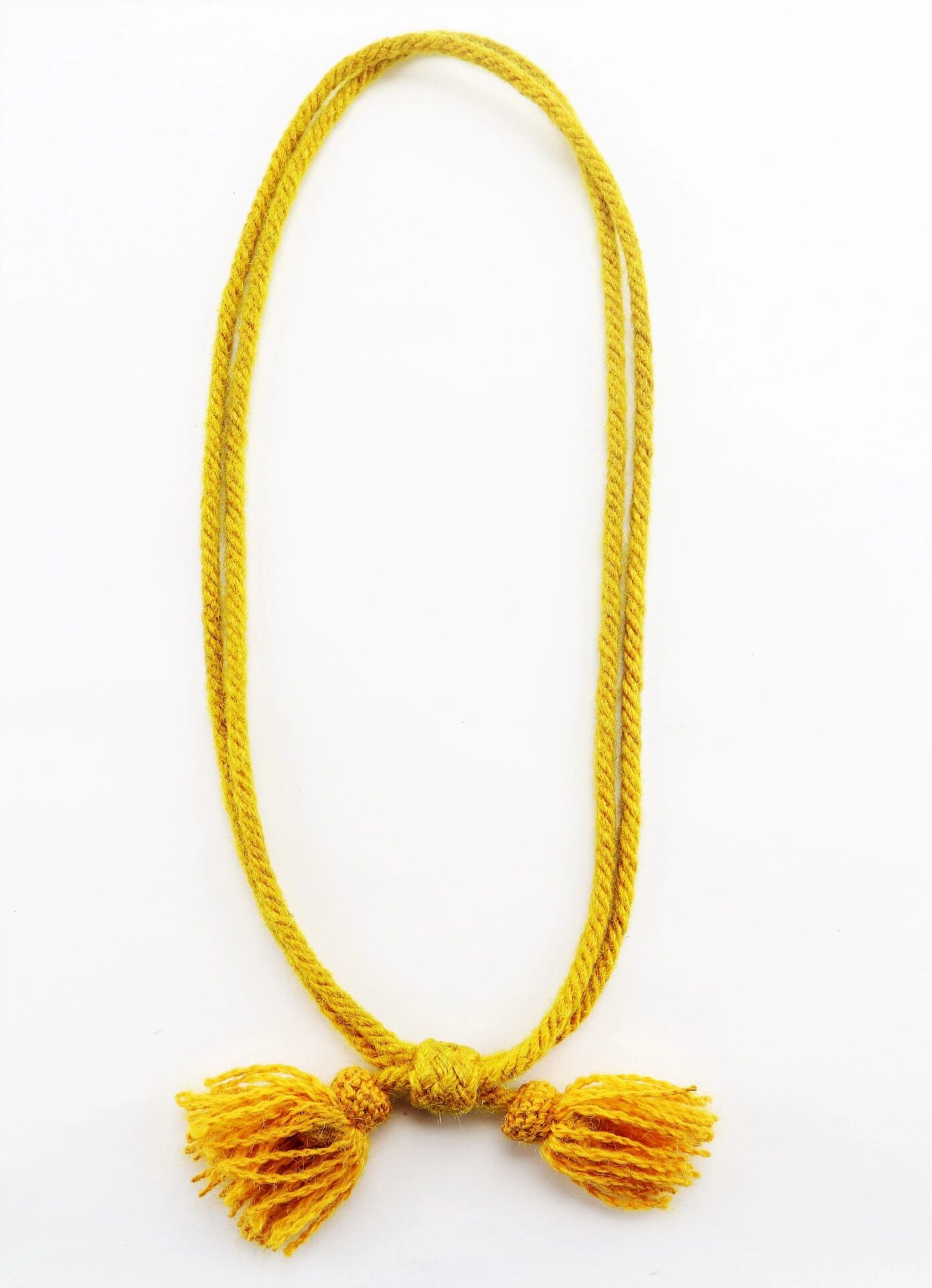 Cavalry Hat Cord – Inventory Number: UNI 079 / Sold This civil war wool hat cord was issued for use with the Hardee hat and grew popularity amongst soldiers that they often adorn any flat brimmed cap. “Legend has it” that the acorns at the end of the cords were designed to bounce off the brim of the hat to keep riders awake. This example has a bold yellow color and no distress. A nice example for any cavalry collection. Inventory Number: UNI 079 / Sold
