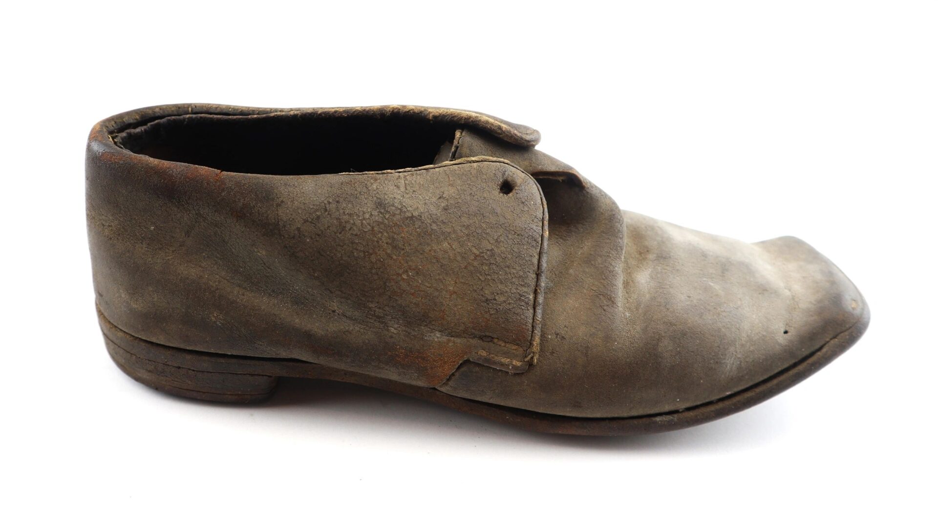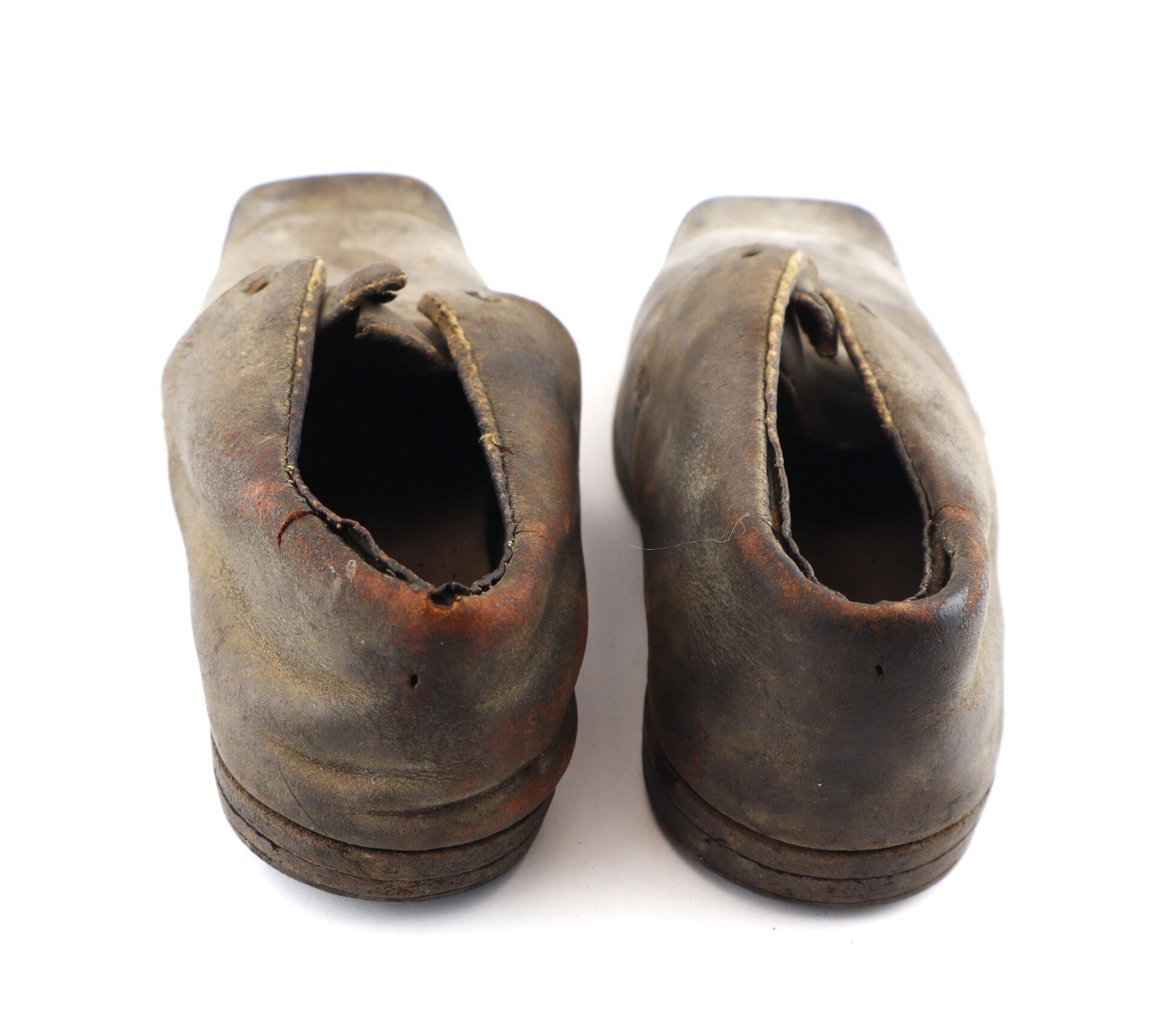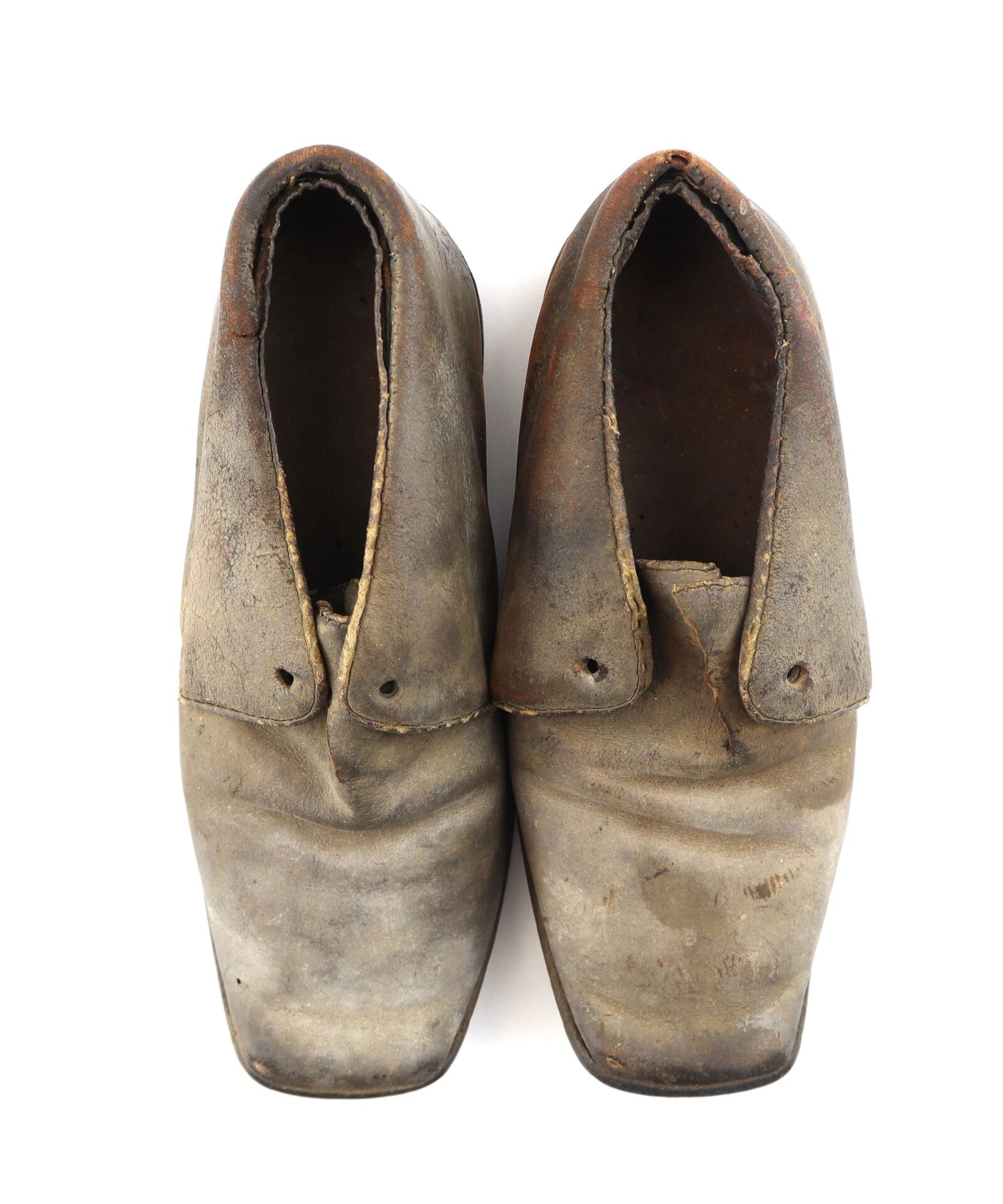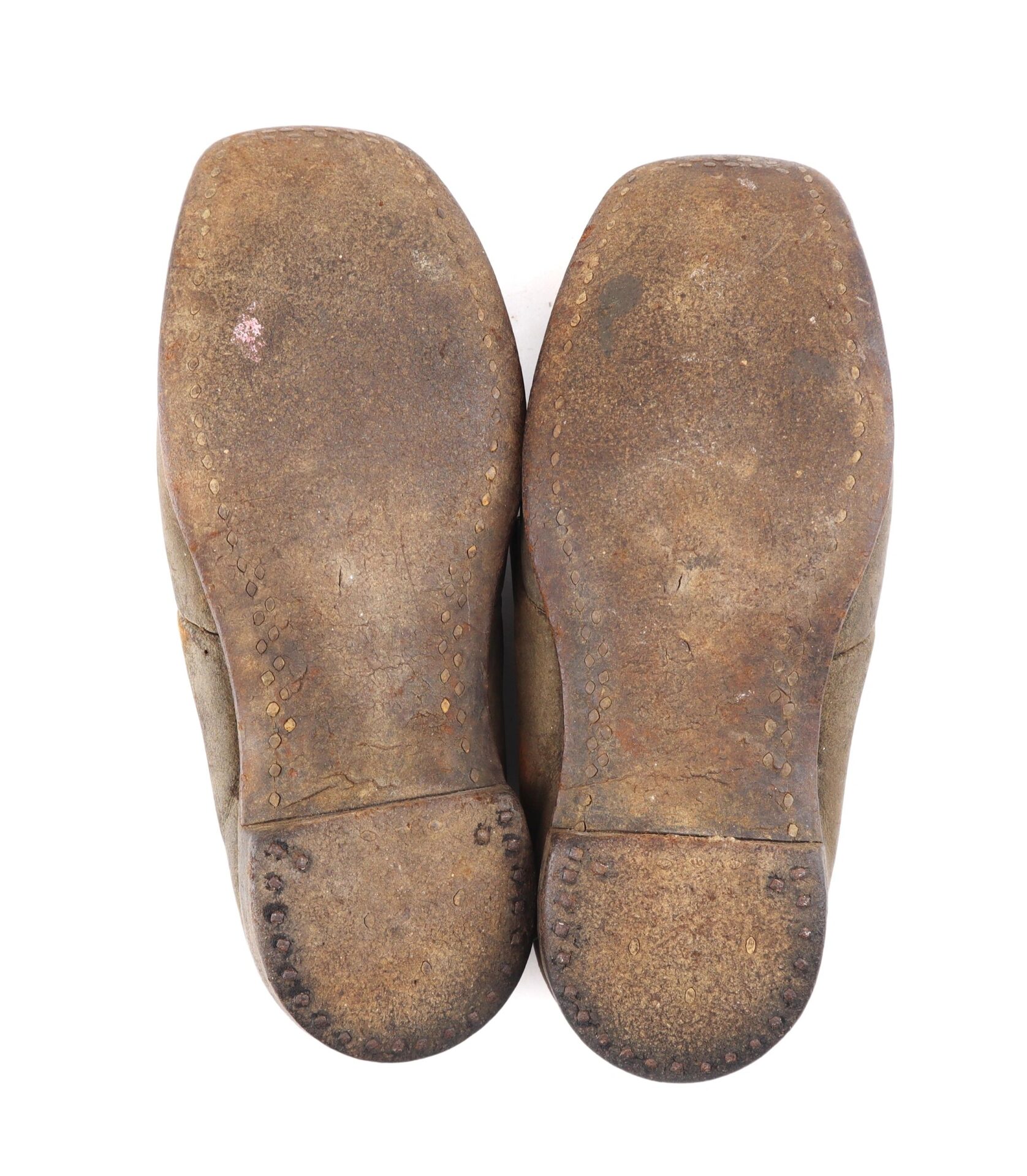 Civil War Era Boy’s Shoes – Inventory Number: UNI 111 / SOLD Scarce pair of Civil War period leather shoes for a young boy. Constructed just like a soldier’s brogan, the shoes have square toed pegged soles with nailed heels and a two-piece leather body. Each shoe measures 7” in length. A wonderful and scarce pair. *To purchase this item directly with a credit card, please click on this link. Inventory Number: UNI 111 / SOLD