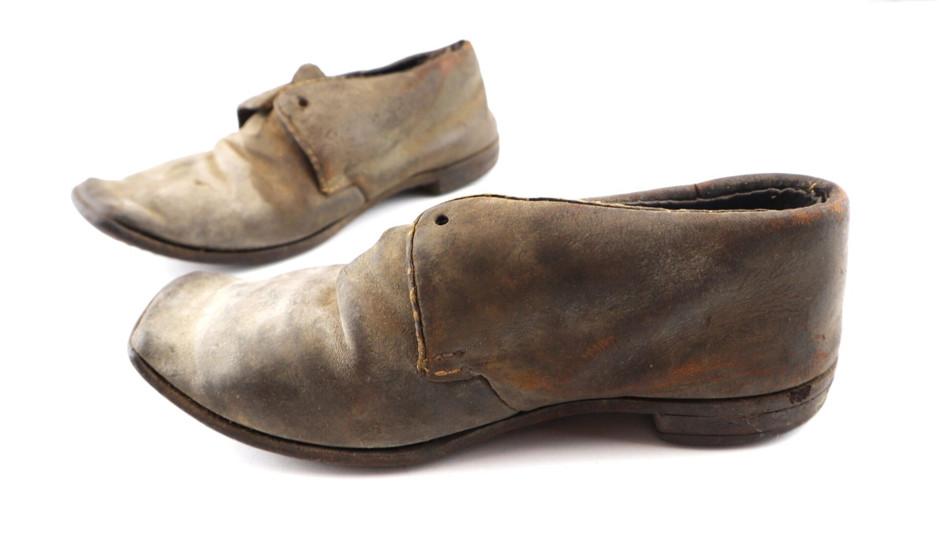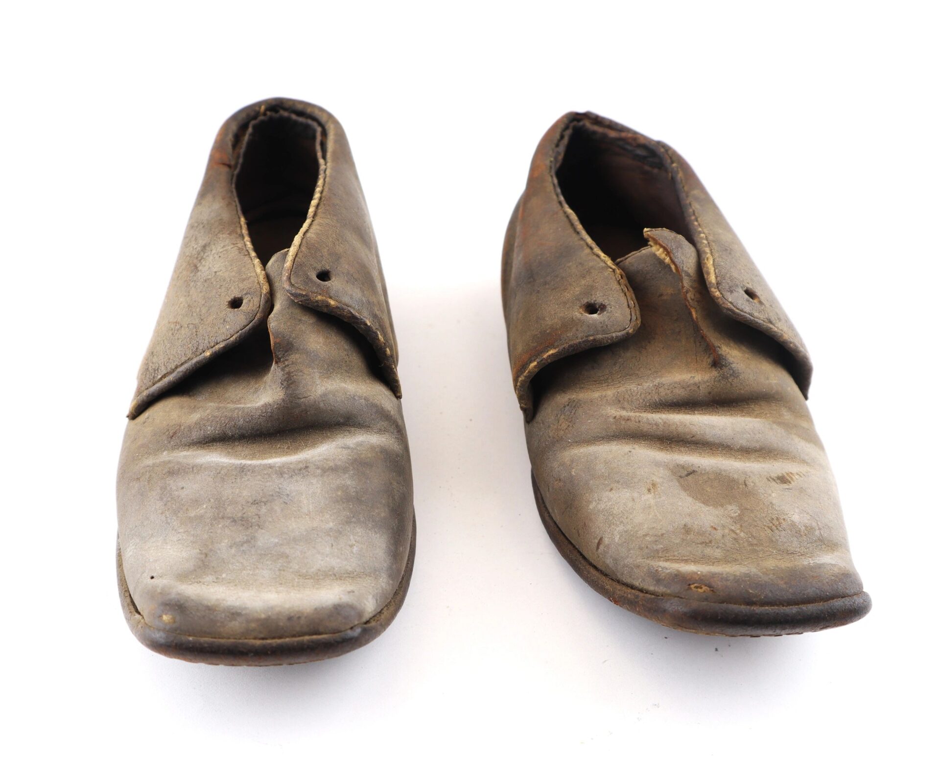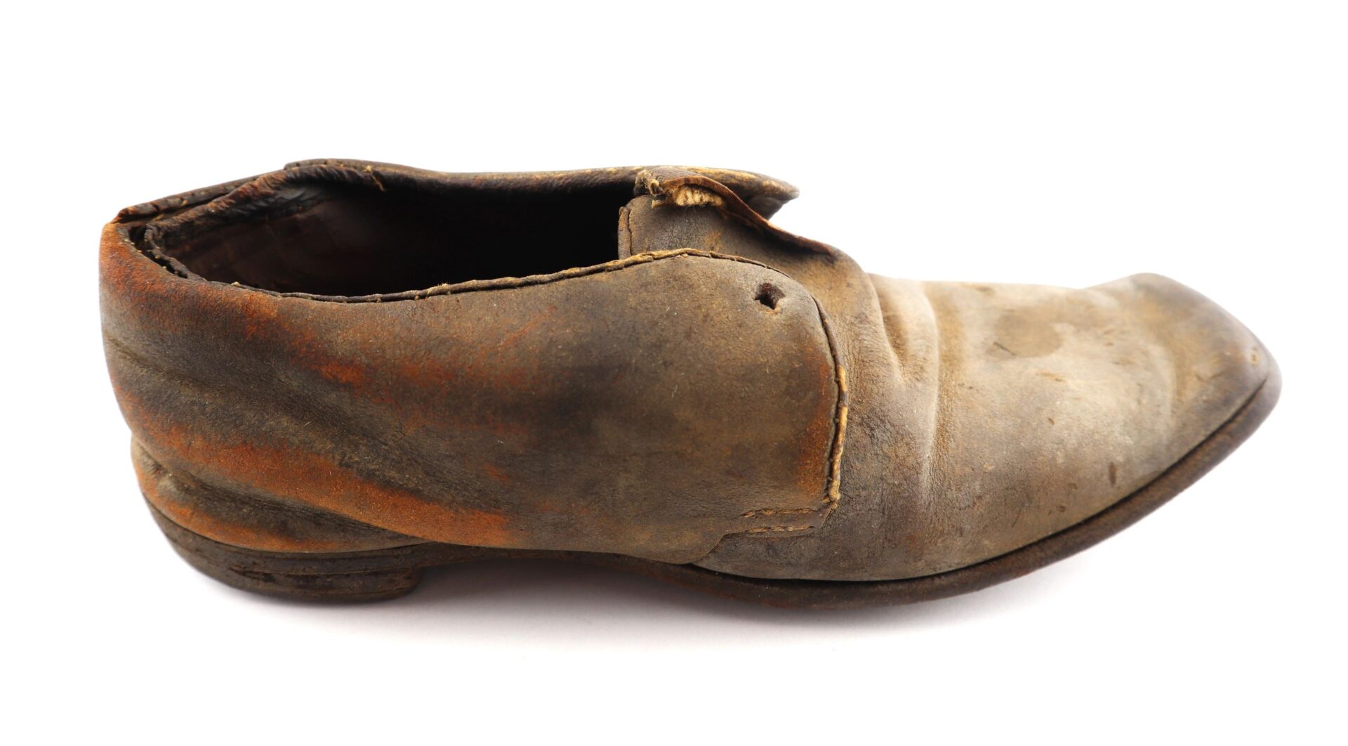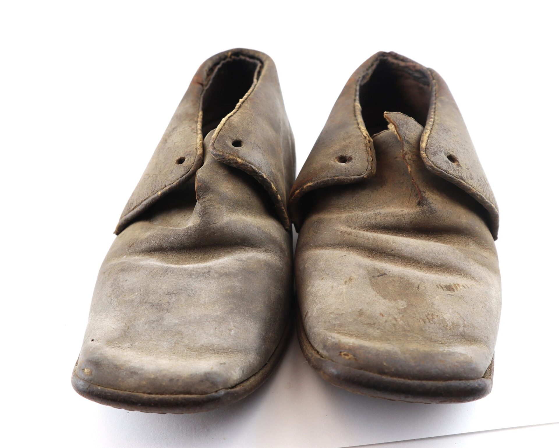 Civil War Era Boy’s Shoes – Inventory Number: UNI 111 / SOLD Scarce pair of Civil War period leather shoes for a young boy. Constructed just like a soldier’s brogan, the shoes have square toed pegged soles with nailed heels and a two-piece leather body. Each shoe measures 7” in length. A wonderful and scarce pair. *To purchase this item directly with a credit card, please click on this link. Inventory Number: UNI 111 / SOLD