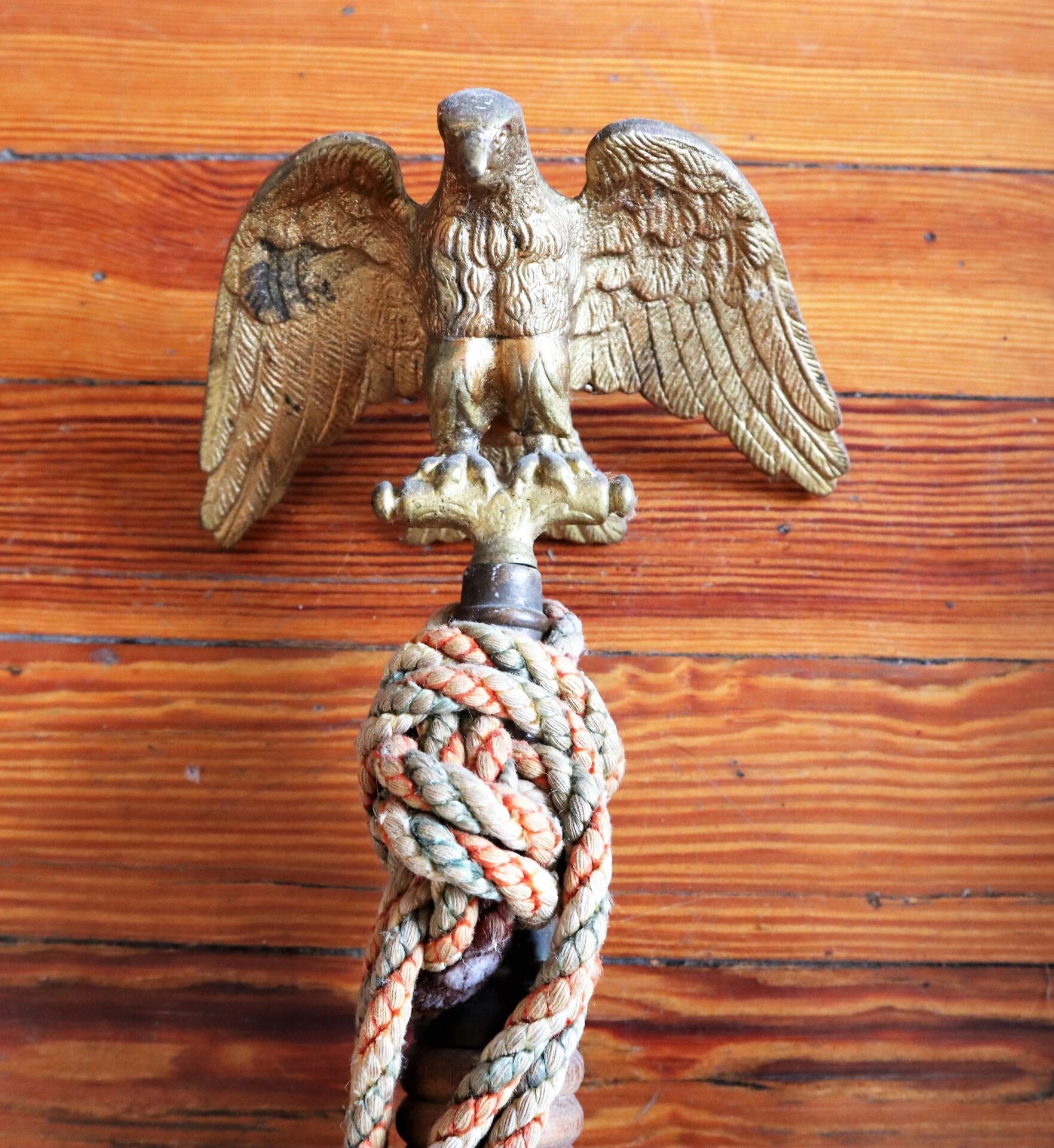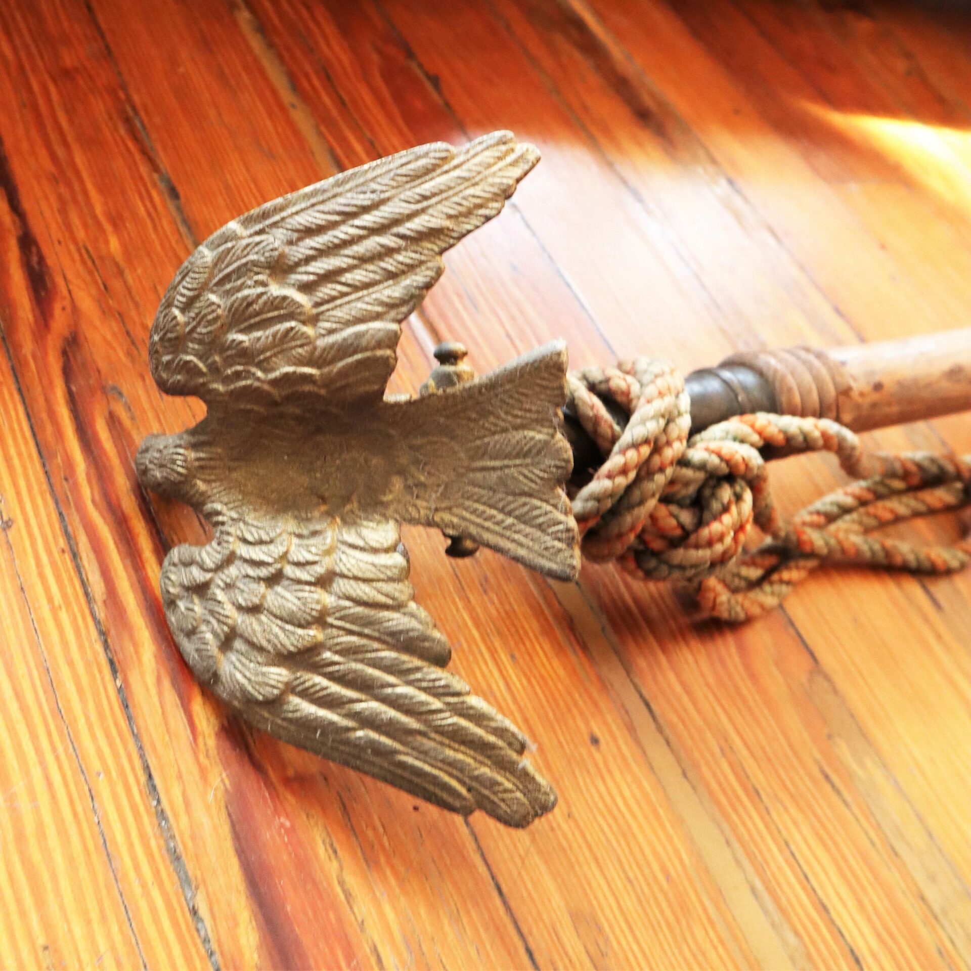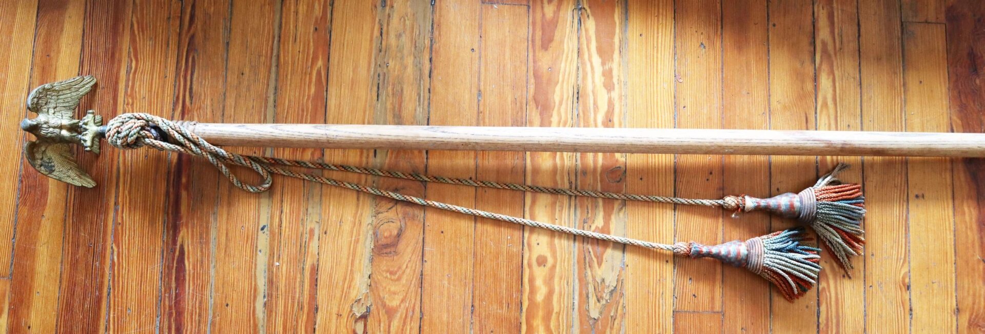 Civil War Flag Pole with Original Cord – Inventory Number: FLA 043 / SOLD Mounted with original Eagle device. *To purchase this item directly with a credit card, please click on this link. Inventory Number: FLA 043 / SOLD