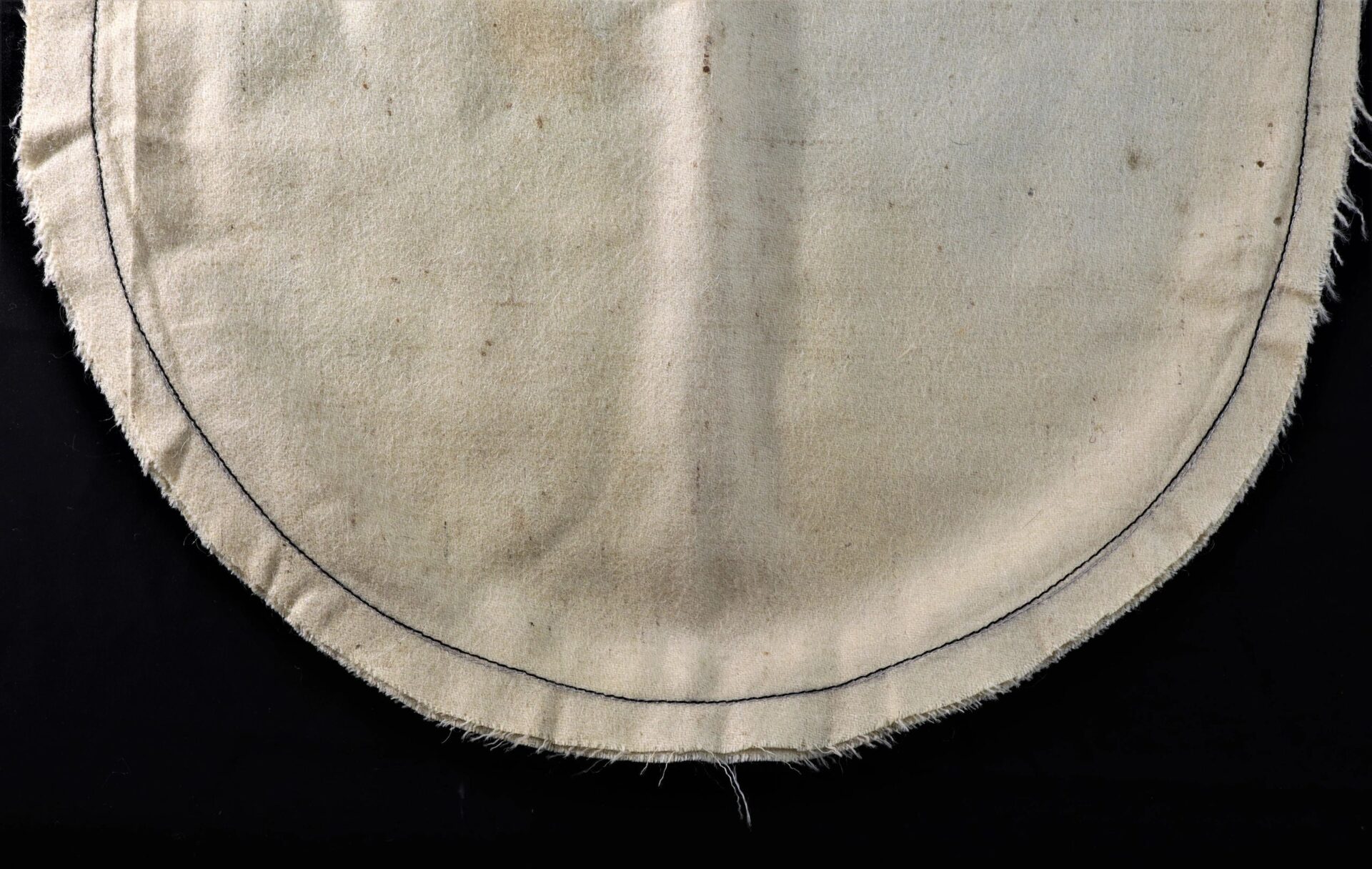 Civil War Heavy Artillery Powder Bag – Inventory Number: ART 209 Scarce Artillery Powder Bag, the gun powder would have been loaded into this light wool “U” shaped bag. It would be pierced prior to firing with a friction primer. This example is beige in color with light blue stitching. Very good condition overall. Fine example. Inventory Number: ART 209