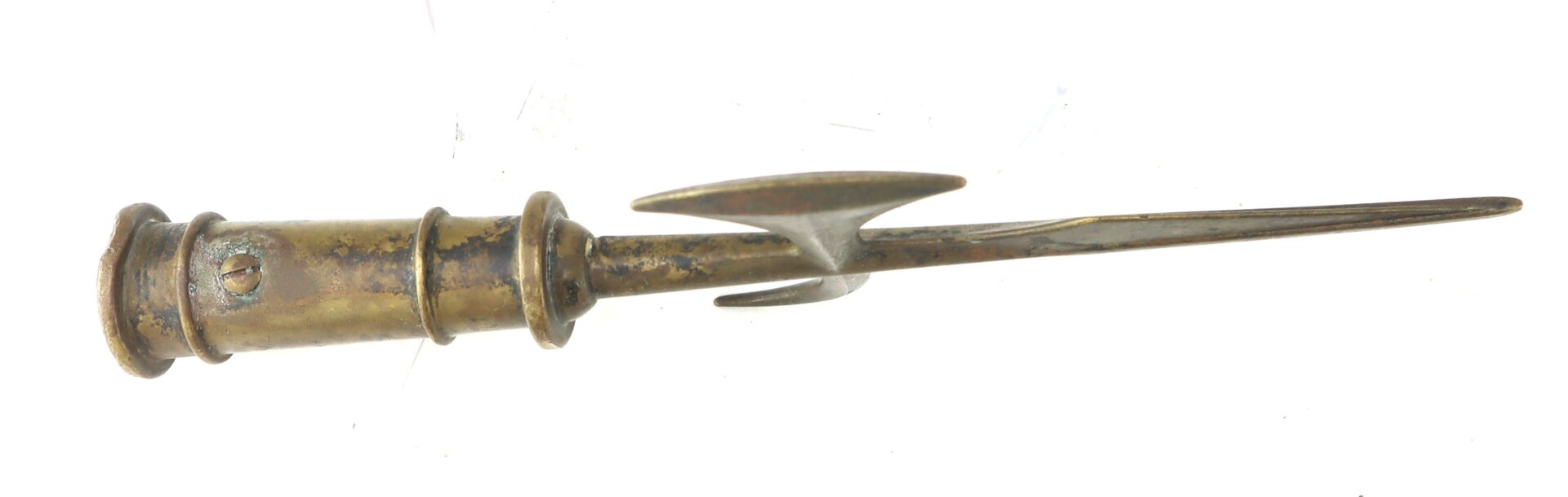 Civil War Infantry Flag Topper Spear and Crossed Arms Form with Staff Remnant / SOLD