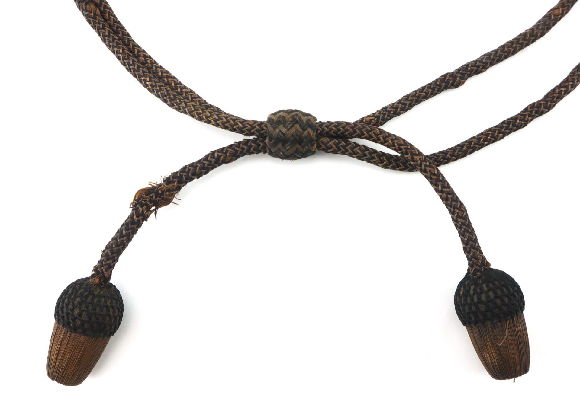 Civil War Officer’s Hat Cord – Inventory Number: UNI 159 / SOLD Officer’s hat cords from the Civil War period are made of silk & metallic gold thread and often exhibits netted acorn tassels.  This example shows character and field use as there is some fraying just where the cord would have rubbed the brim of the hat.     Inventory Number: UNI 159 / SOLD