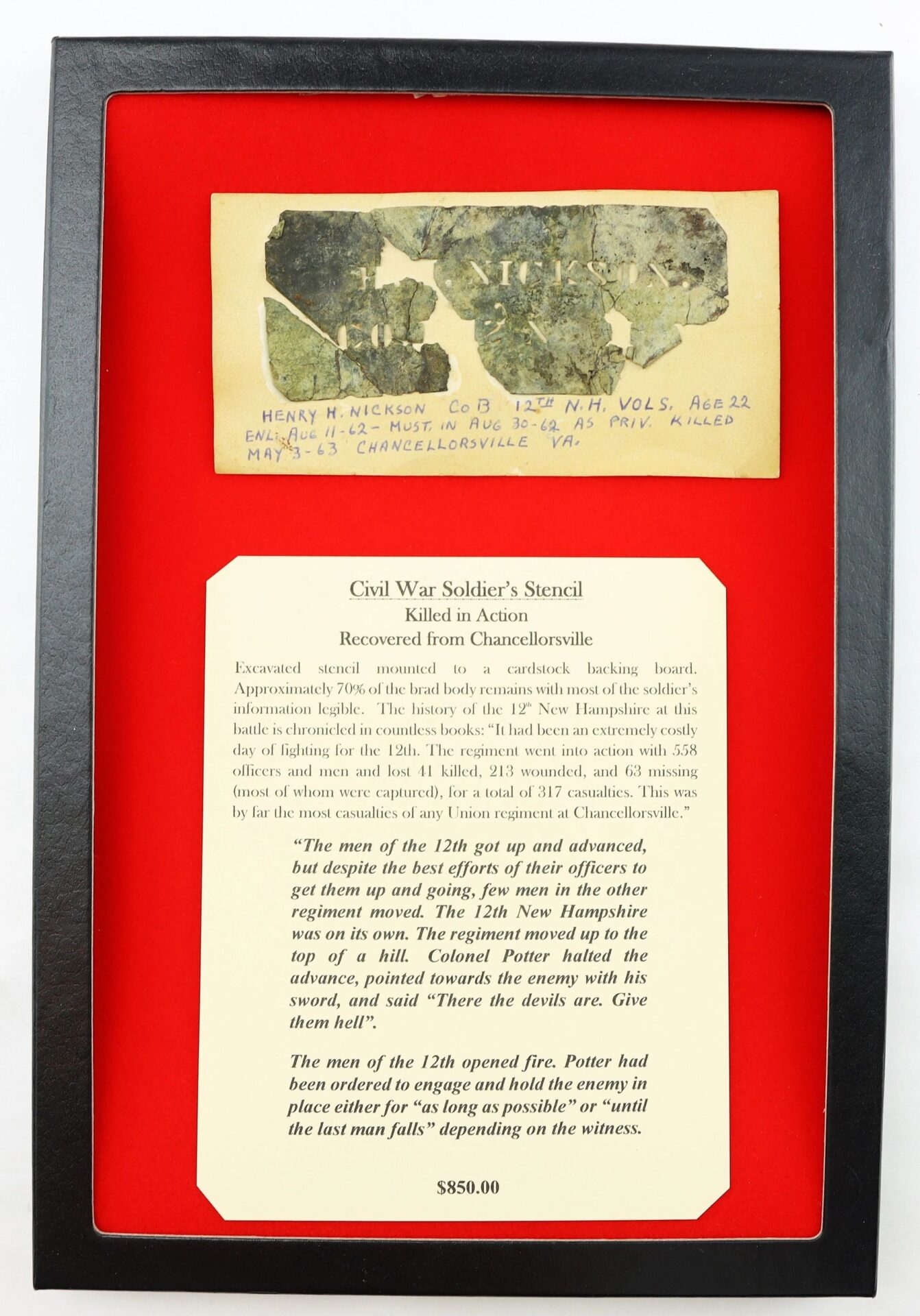 Civil War Soldier’s Stencil Killed in Action Recovered from Chancellorsville