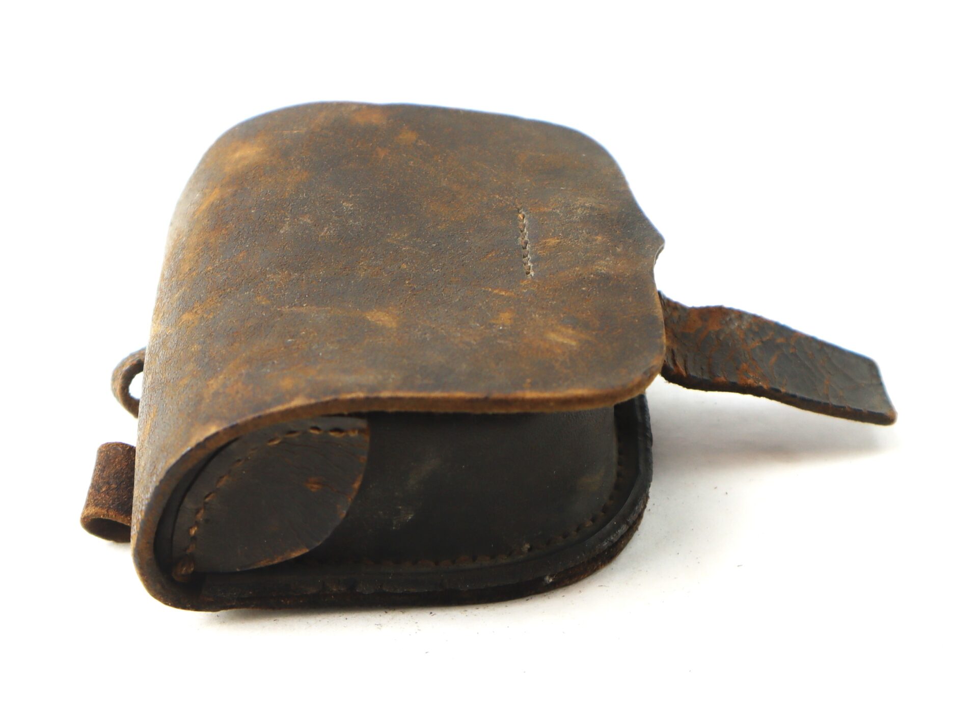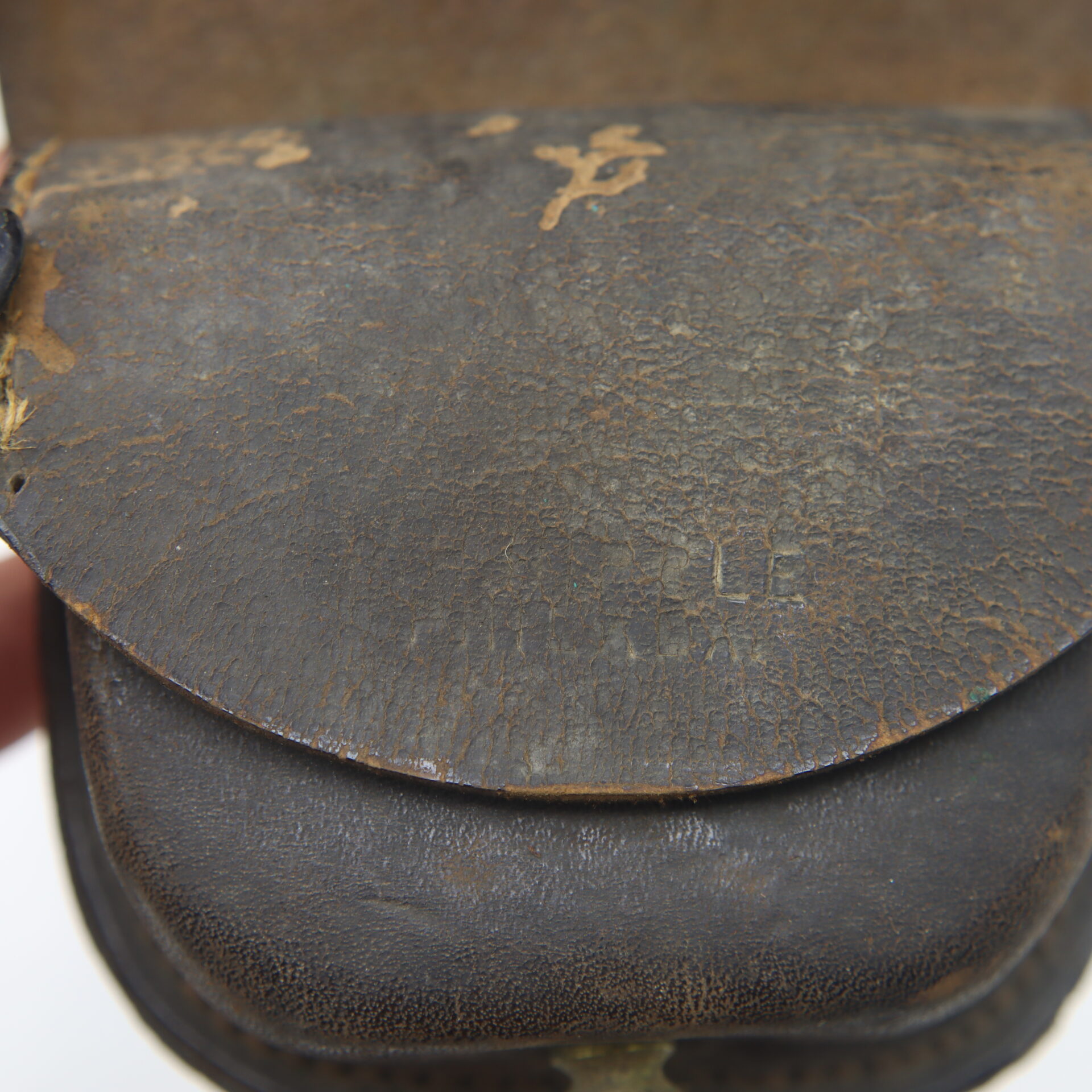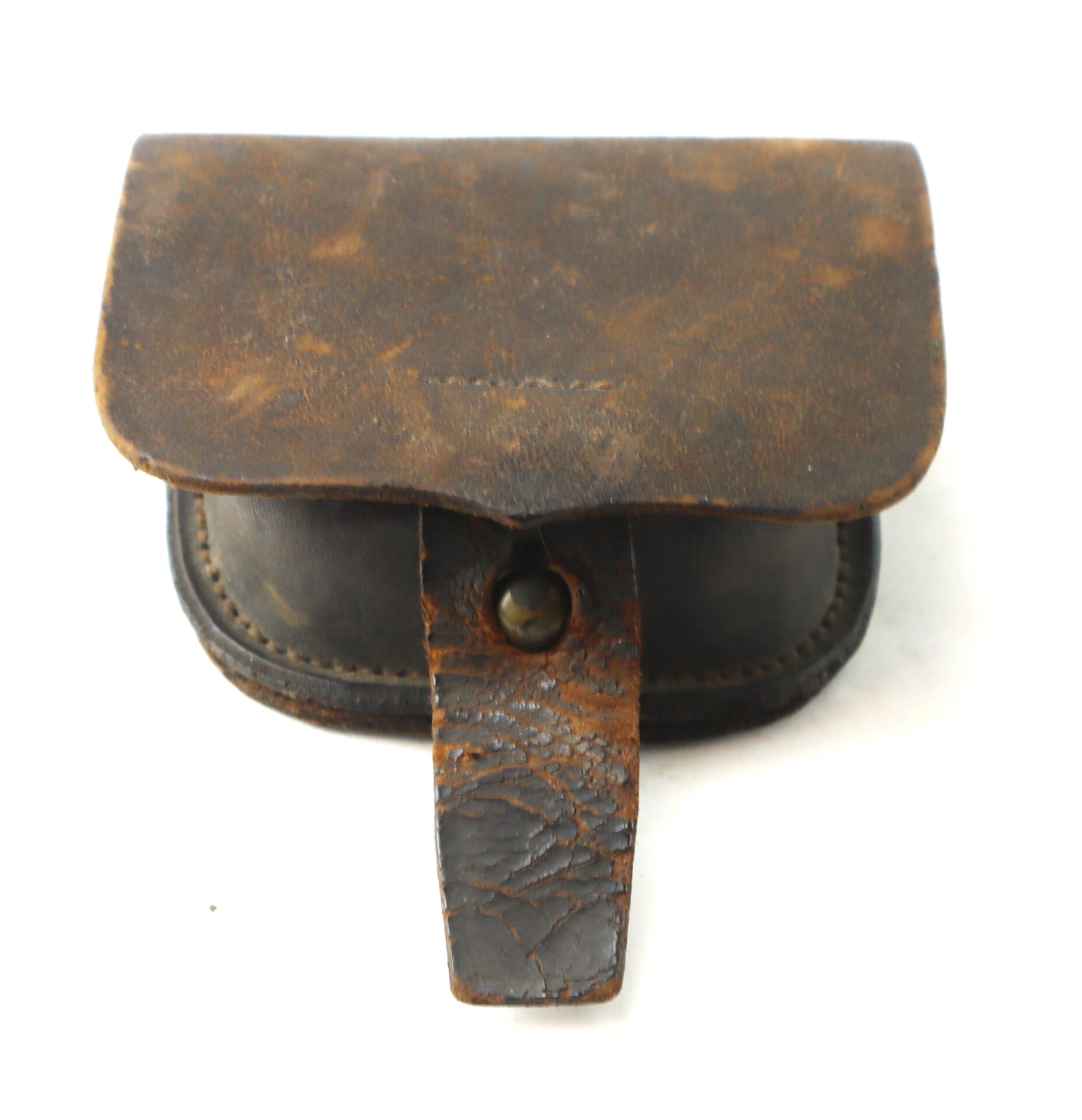 These cap boxes were standard issue for Union infantry and cavalry soldiers, designed to carry the percussion caps used to ignite black powder cartridges. The example retains strong form, supple leather, and untouched patina, offering an excellent representative piece of the everyday soldier’s equipment.