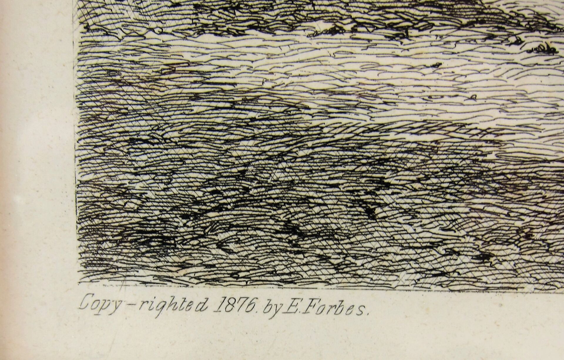 Edwin Forbes Engraving Plate No. 4, A Wagoner’s Shanty / The Deserted Pickett-Hut / Mud Huts – This unframed print measures 24″ x 20″ is titled “A Wagoner’s Shanty/The Deserted Picket-Hut/Mud Huts” and is Plate No. 4 out of 40. It is signed in the plate in the lower right corner, “E. Forbes.” In excellent condition this is an original engraving from his portfolio. Three scenes are depicted of Winter Camp. Edwin Forbes (1839-1895) was an American landscape painter and etcher, best known for his Life Studies of the Great Army. He was born in New York City to Joseph C. and Ann Forbes. At the age of eighteen he began his study of art and by the age of twenty became a pupil of Arthur F. Tait. His early work involved painting animals but he later expanded to genre scenes and landscapes. In 1861 he was hired as a staff artist for Frank Leslie’s Illustrated Newspaper where he covered the Army of the Potomac from 1862 to 1864. With his primary interest being that of recording the everyday activities of soldiers, Forbes would making quick sketches on the battlefield and later refine them with great detail. The sketches were sent back to New York where copper plate etchings were made from the detailed drawings. His drawings were published in Leslie’s newspaper and in 1876, Forbes made etchings of his own illustrations and published them in portfolio form on better quality paper as Life Studies of the Great Army: A Historical Art Work in Copper Plate Etching Containing Forty Plates. His work, considered to be the finest drawings of the Civil War, is now preserved in the War Office at Washington D.C. because of the historic significance and value. Less than 200 of these superb large size etchings were ever made. His Life Studies of the Great Army would go on to receive an award at the Centennial Exposition in Philadelphia. After his death the Library of Congress acquired Forbes originals through a gift of John Pierpont Morgan in 1919. They included about 300 drawings as well as forty-three etched plates and the original impressions used in Life Studies of the Great Army. Inventory Number: SCU 022 / SOLD