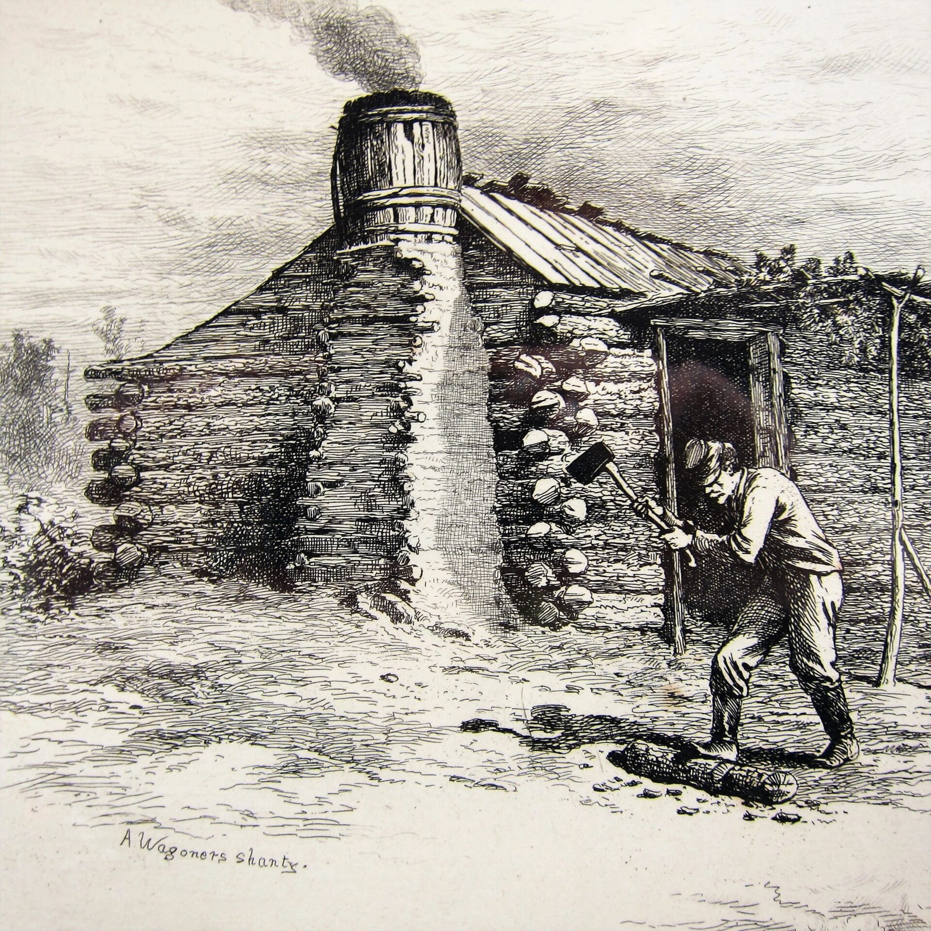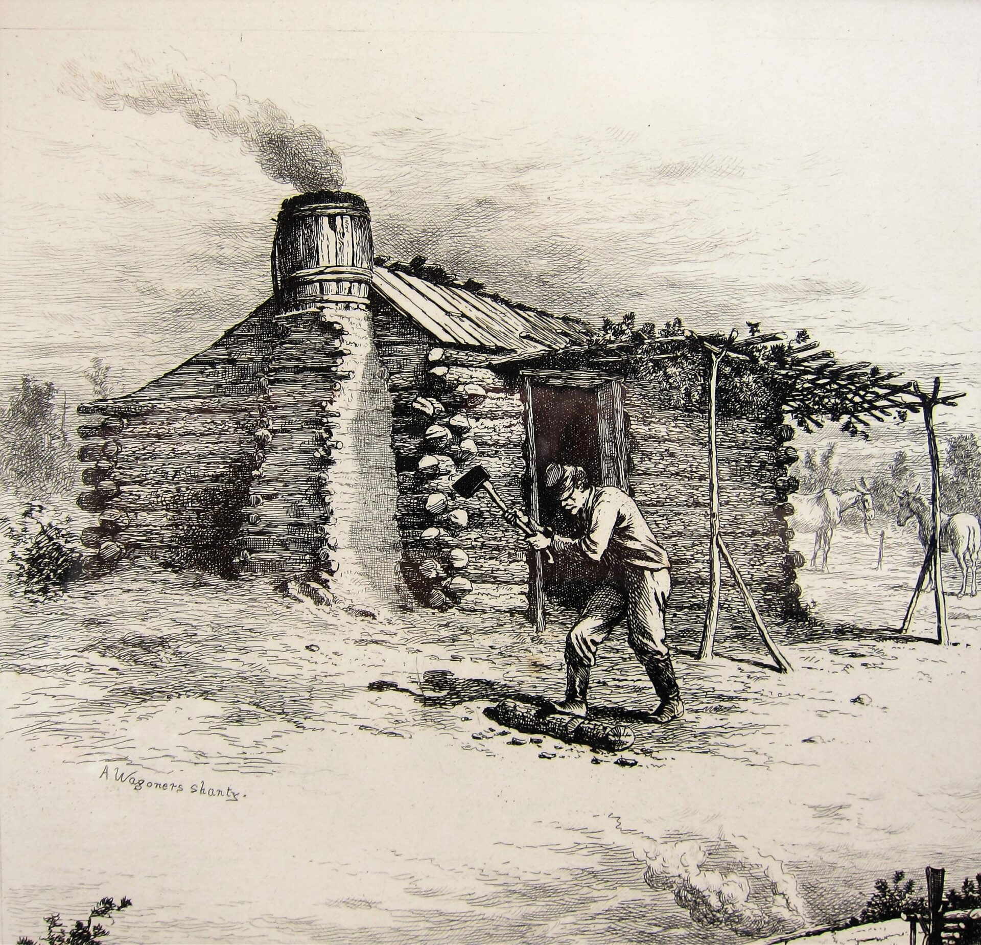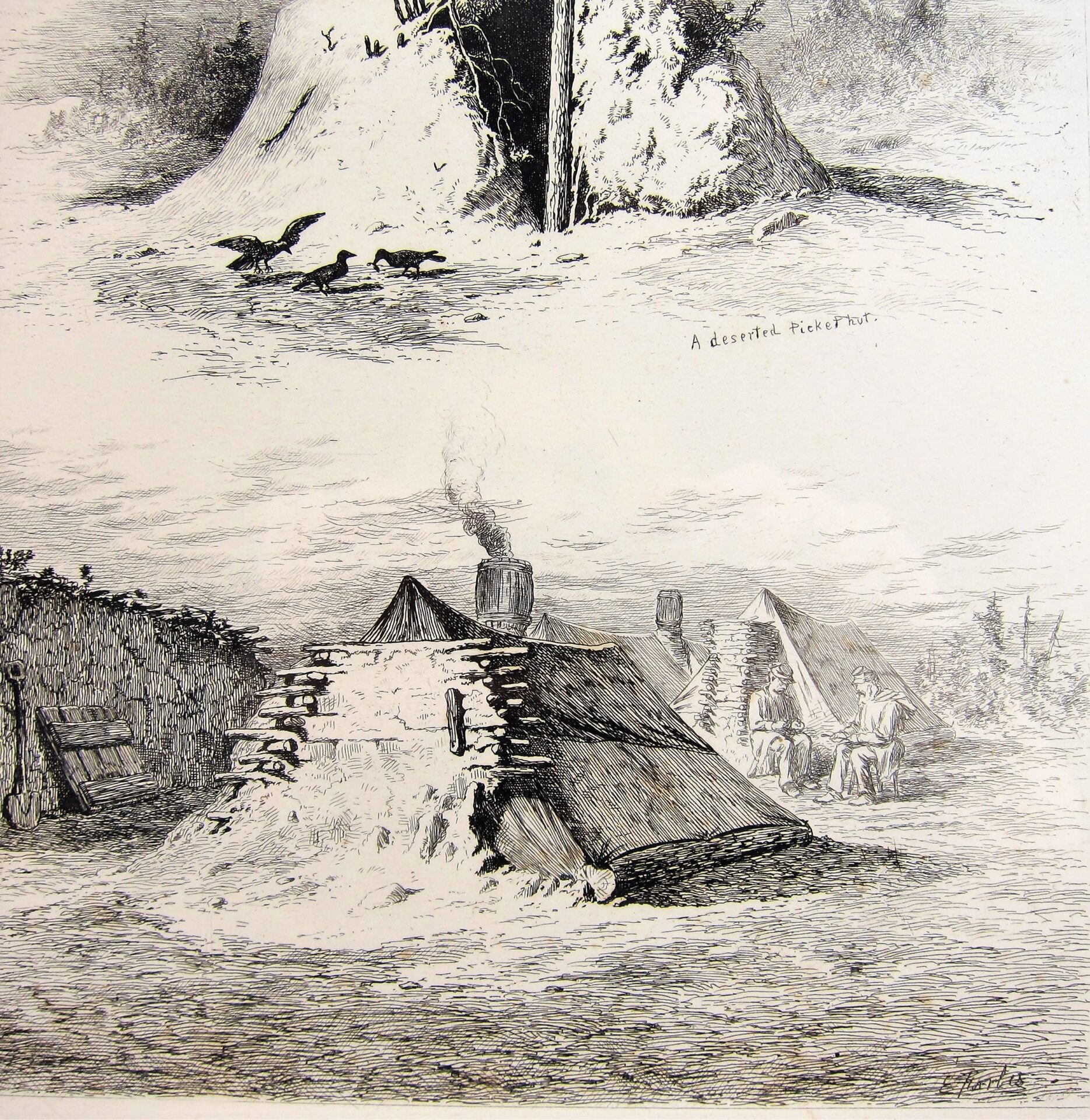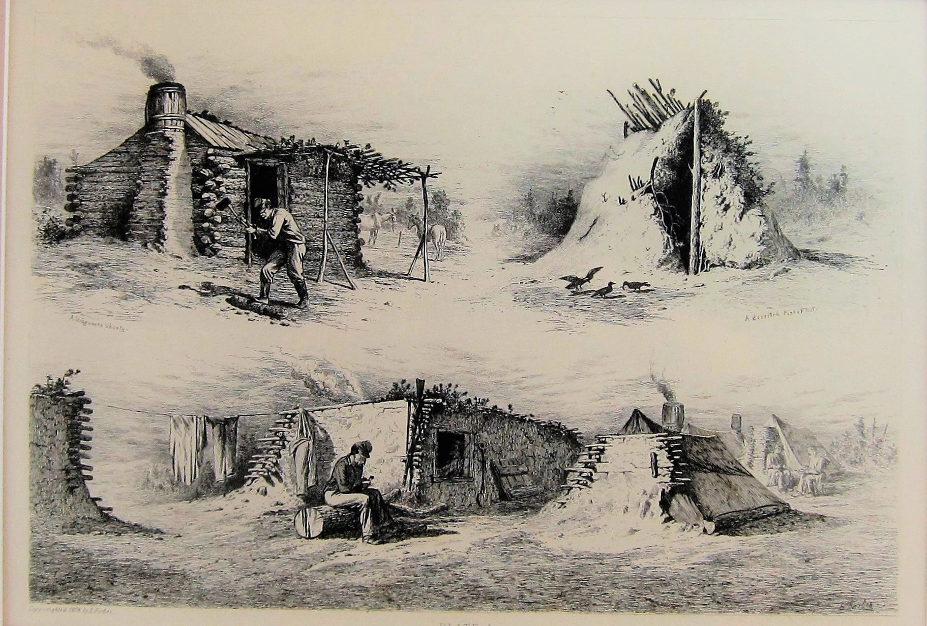 Edwin Forbes Engraving Plate No. 4, A Wagoner’s Shanty / The Deserted Pickett-Hut / Mud Huts / SOLD