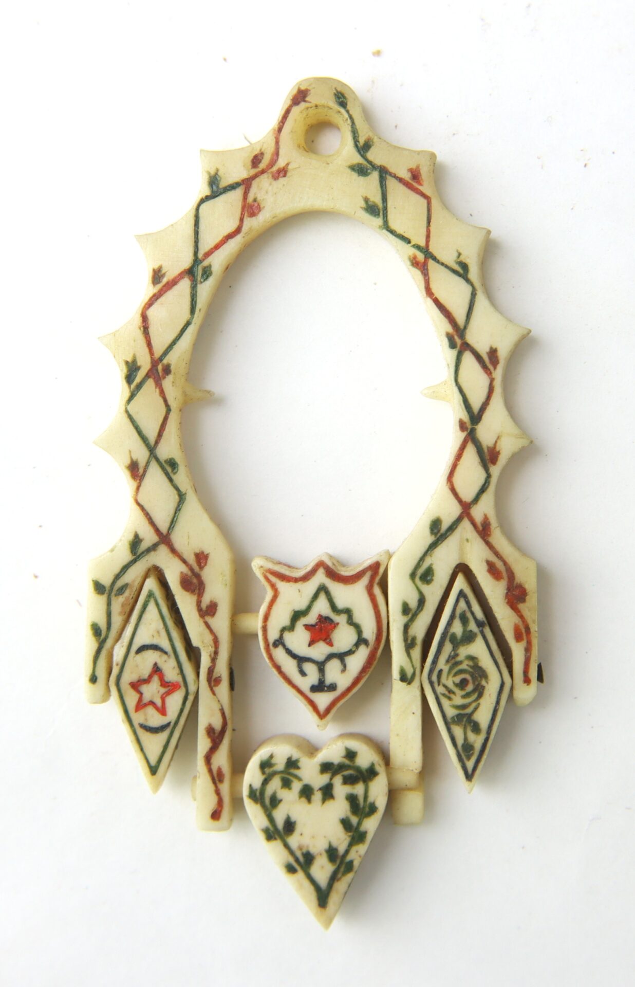 The inclusion of a small tintype portrait within an intricately carved frame reinforces the intimate, keepsake nature of the assemblage, pointing to its role as a deeply personal wartime memento. Such items were often produced in camp or hospital settings, where soldiers with time and skill created objects from available materials.
