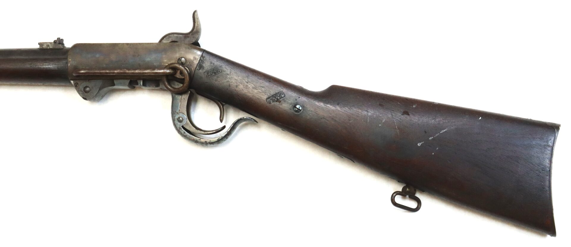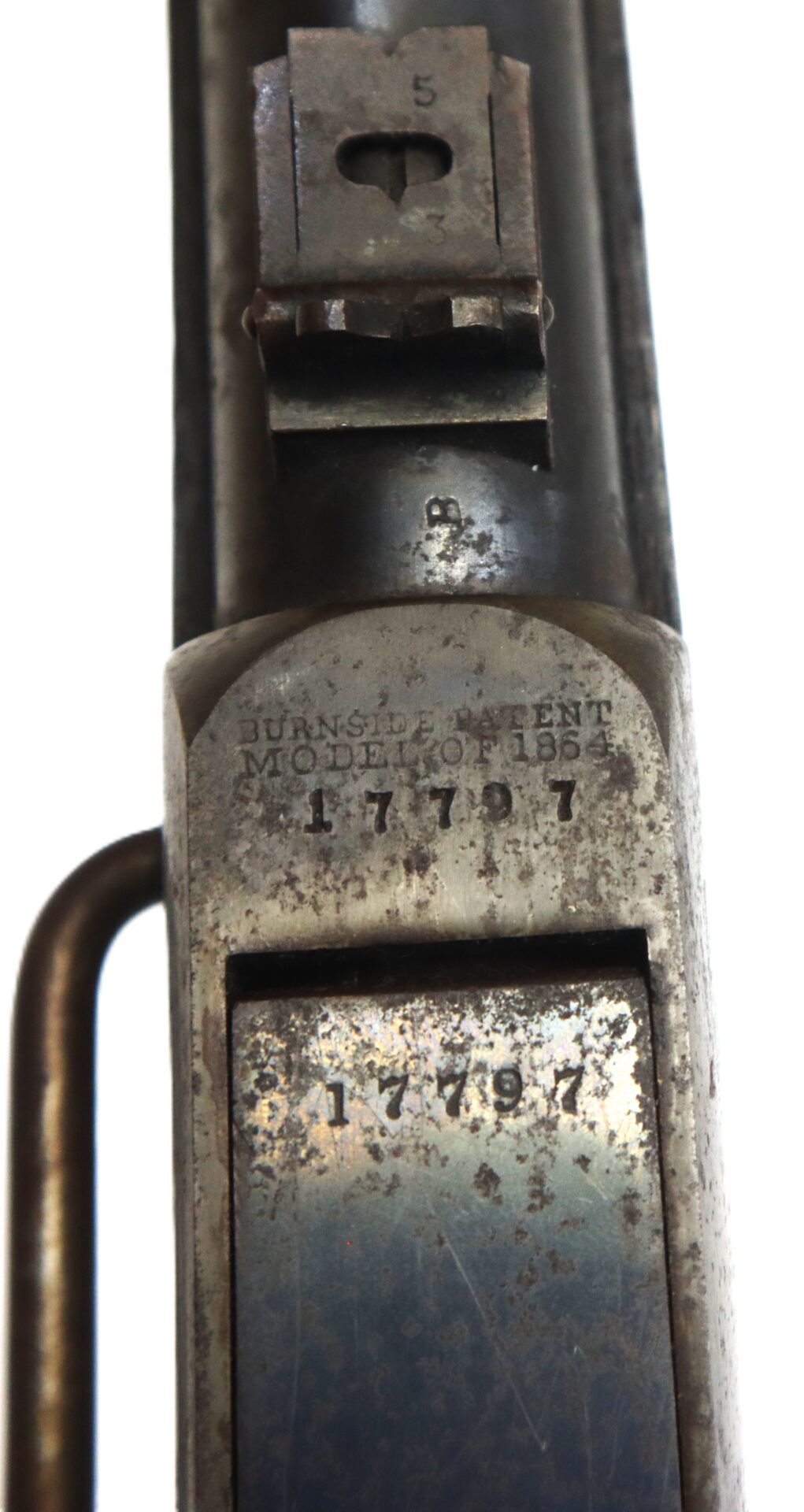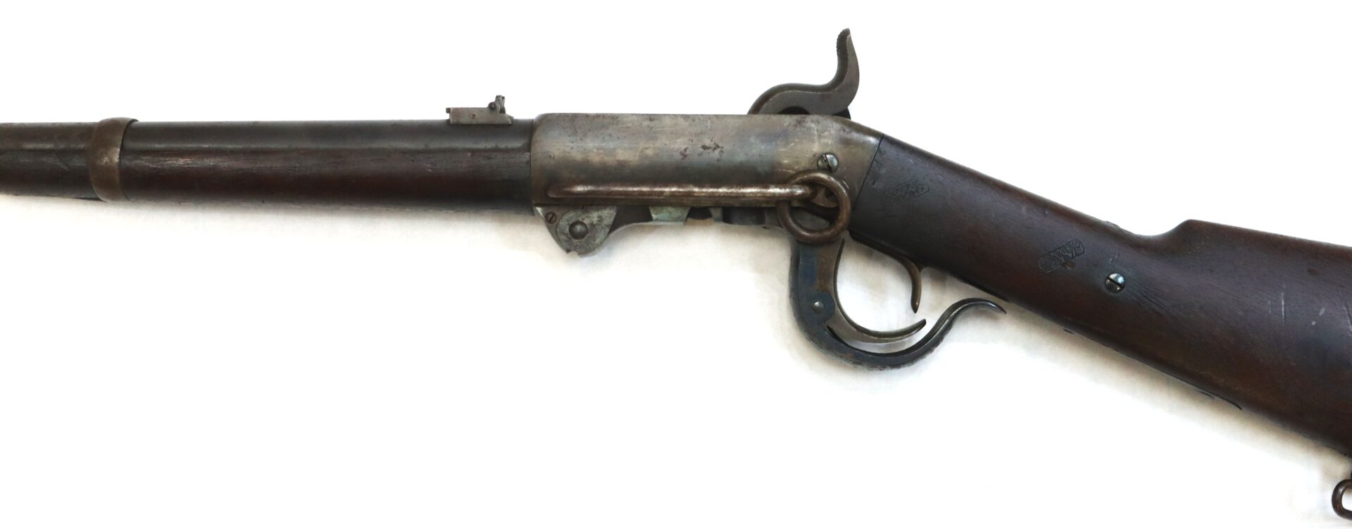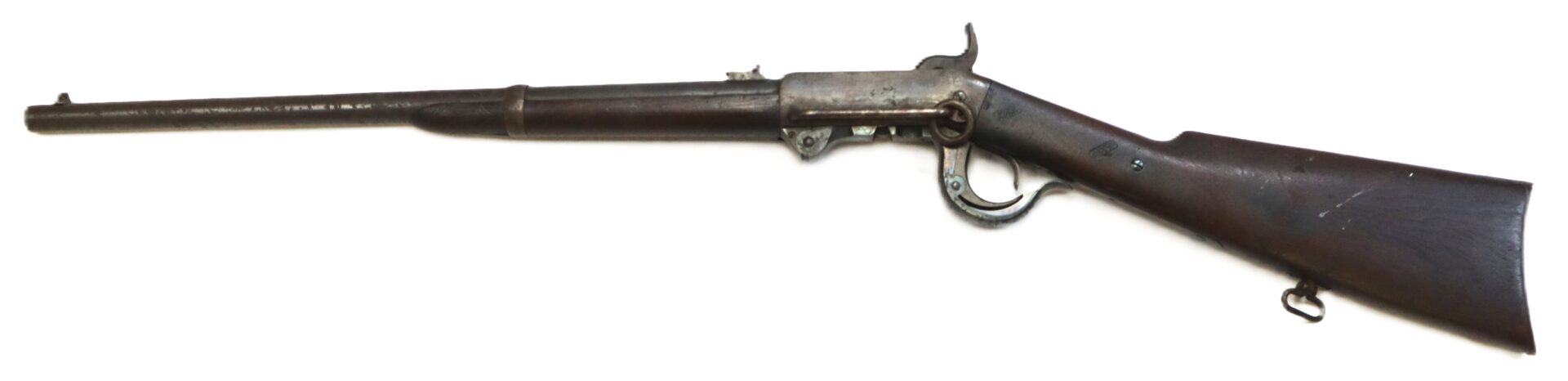 The Fifth Model Burnside was the most refined and widely issued variant, heavily used by Federal cavalry units from 1864 through the end of the war. Its distinctive tapered metallic cartridge and robust action made it one of the most recognizable carbines of the conflict.