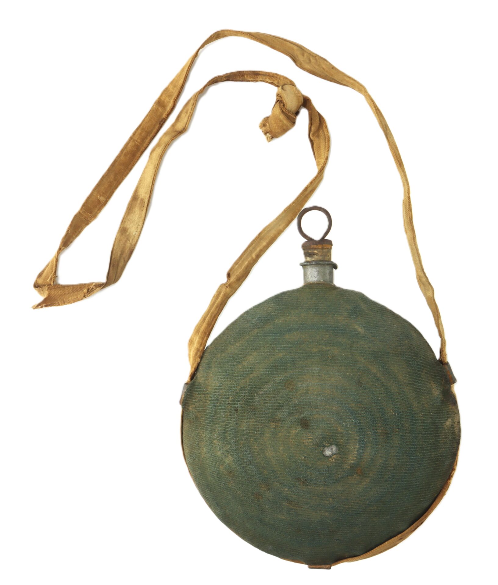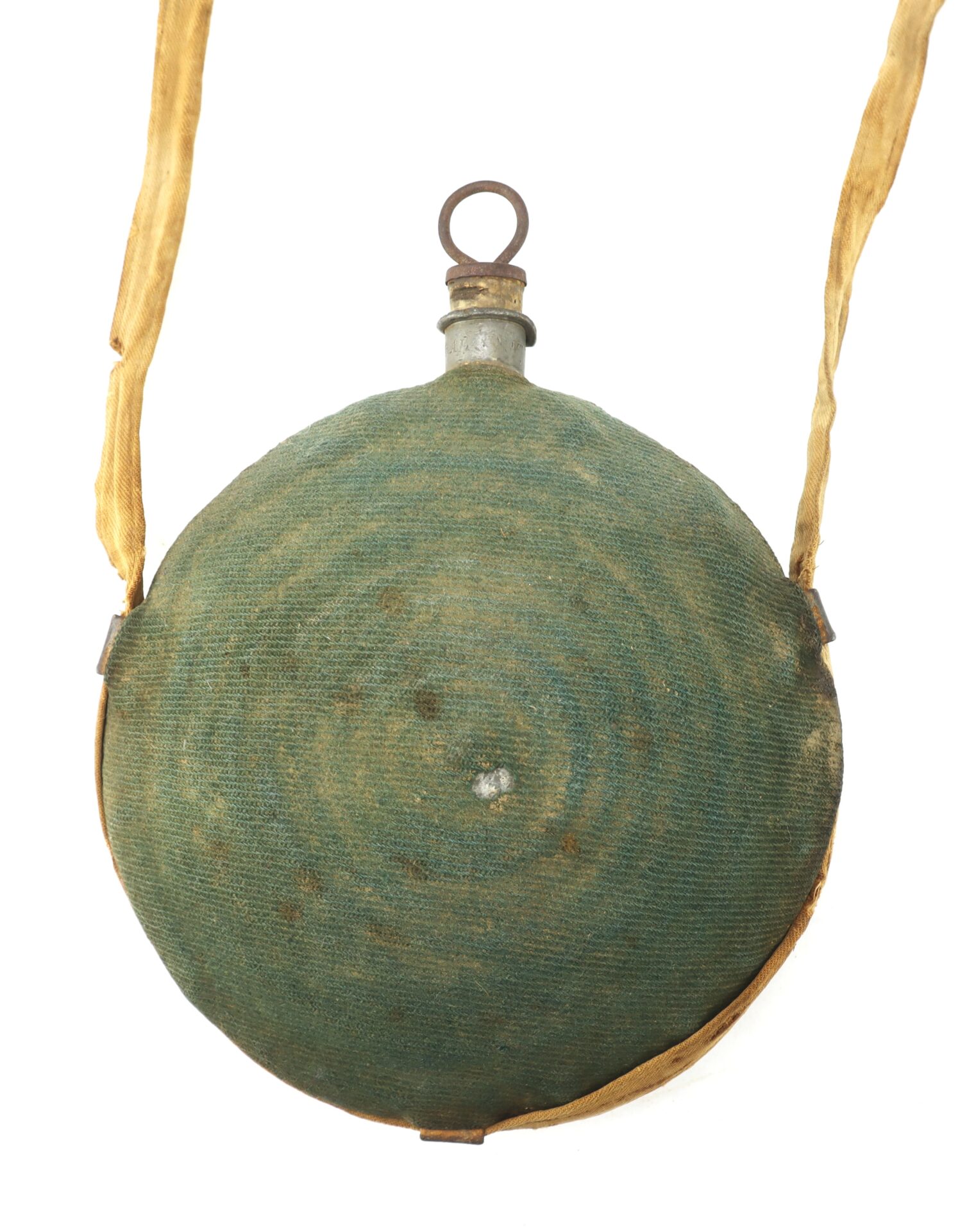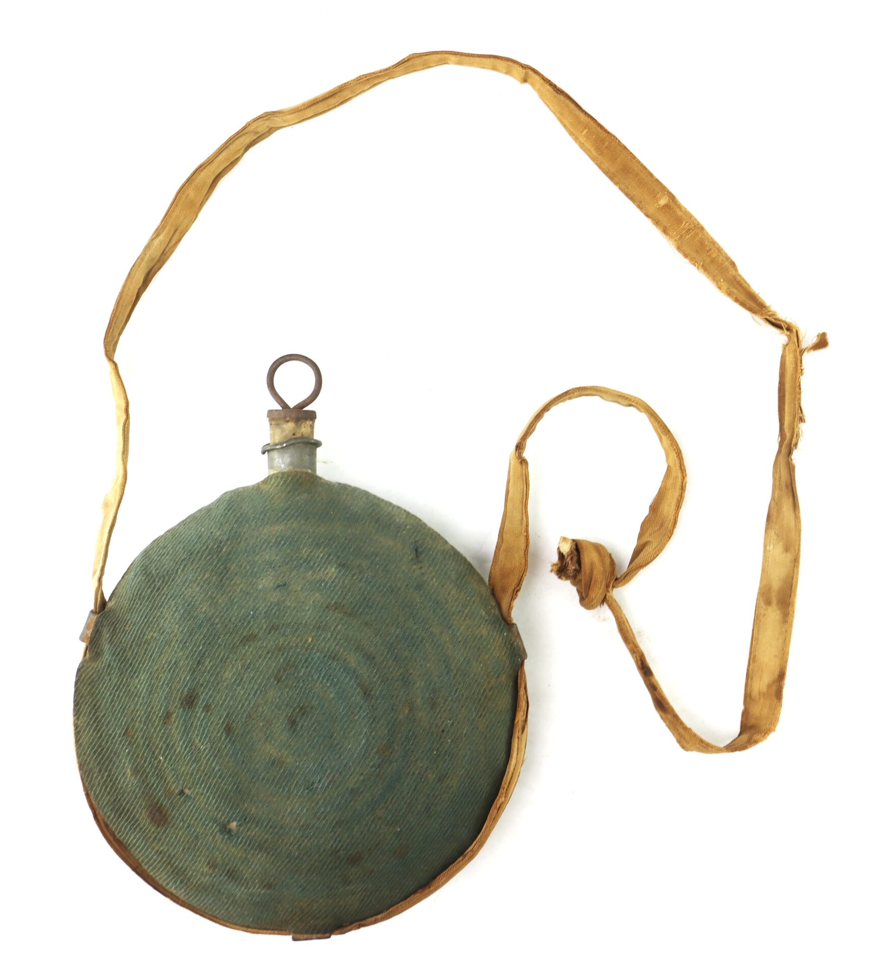 Original specimen of the Federal Model 1858 ‘Bullseye’ pattern tin canteen in very good condition. Issued to all Union troops in the field, the example comes complete with a desirable blue kersey wool covering, cork stopper, iron pull ring and cotton carry sling.