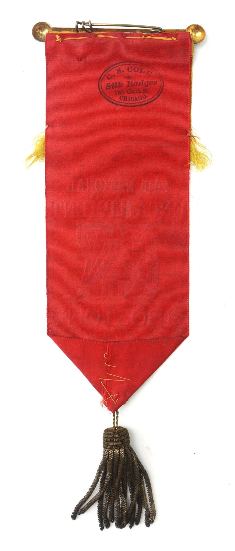 This vibrant commemorative ribbon was issued to delegates from Indiana attending the 24th National Encampment of the Grand Army of the Republic (GAR), held in Boston on August 12, 1890. Featuring bold red and gold silk with gilt lettering and a striking GAR emblem, the ribbon proudly displays “INDIANA” above “24th National Encampment,” with “Boston, August 12, 1890” below. Finished with a decorative gold fringe and a black silk tassel, it remains a stunning artifact of post-Civil War veteran reunions. A beautiful and patriotic piece of GAR memorabilia reflecting the enduring legacy of Union veterans.