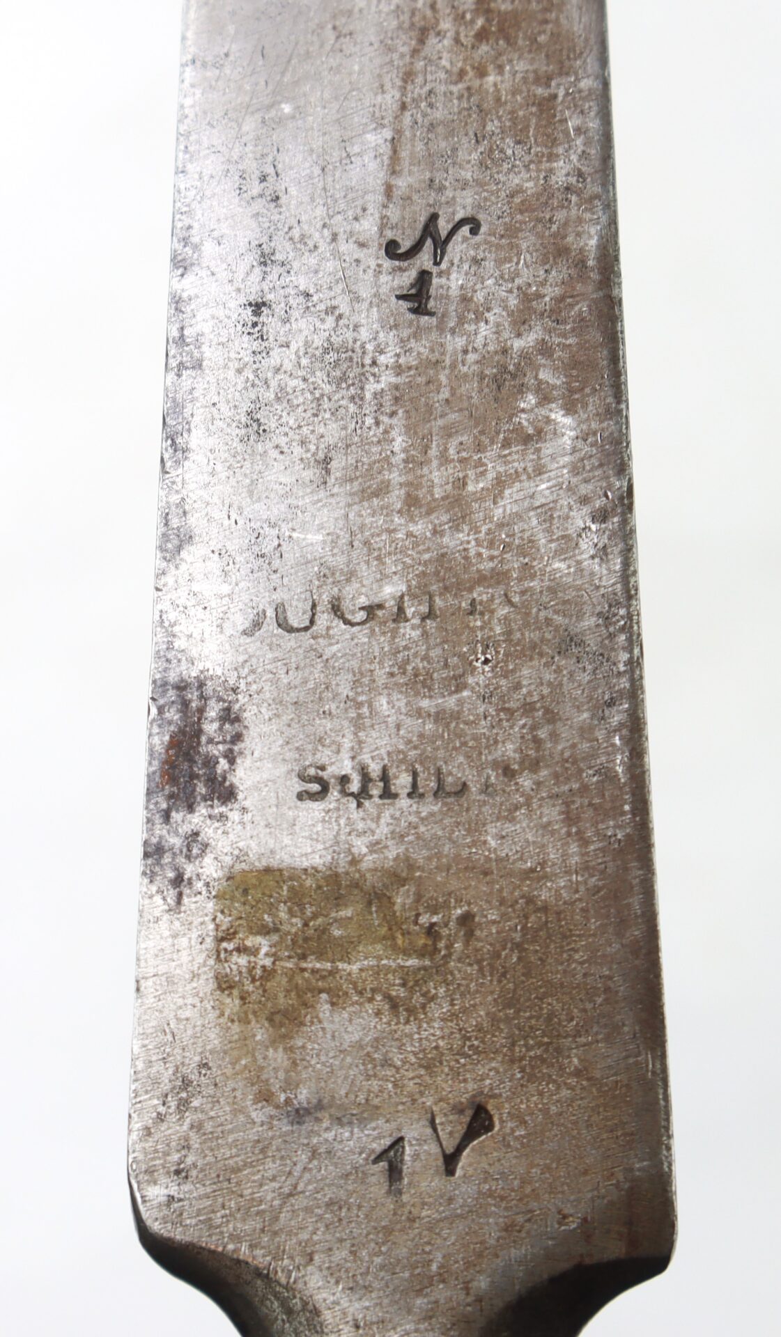 The ricasso is clearly stamped “PUGH” and “S HILL”, identifying both a contracted maker and a retailer , typical of late-Georgian Ordnance-pattern production between 1795 and 1815. These markings are commonly associated with Birmingham makers supplying both the Board of Ordnance and the East India Company.