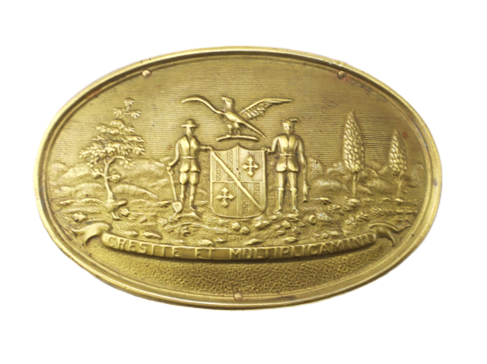MARYLAND OVAL STATE SEAL “PUPPY-PAW” BELT PLATE Manufactured by E. Gaylord, Chicopee, Massachusetts c. 1861 / SOLD