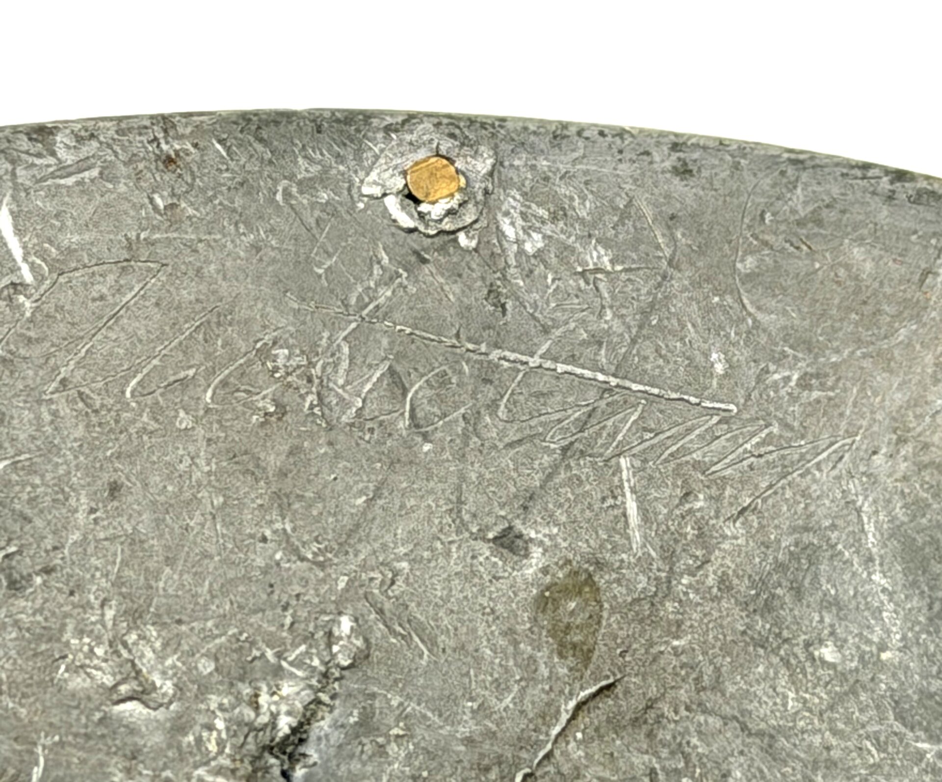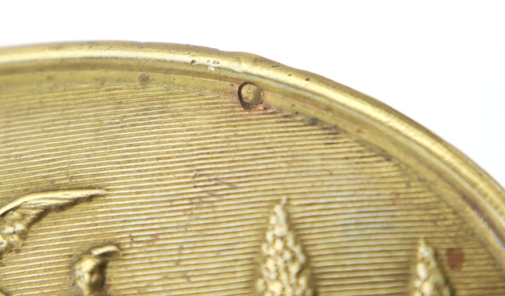 The plate survives in excellent condition, retaining a strong face with attractive patina. Three small brass tacks remain on the front where the plate was affixed to an early veterans’ museum or G.A.R. relic board. Such mounting was common in the late 19th and early 20th centuries as battlefield items were curated for public displays and memorial halls. The tack points are small and do not detract; instead, they reinforce the piece’s long-documented exhibit history.