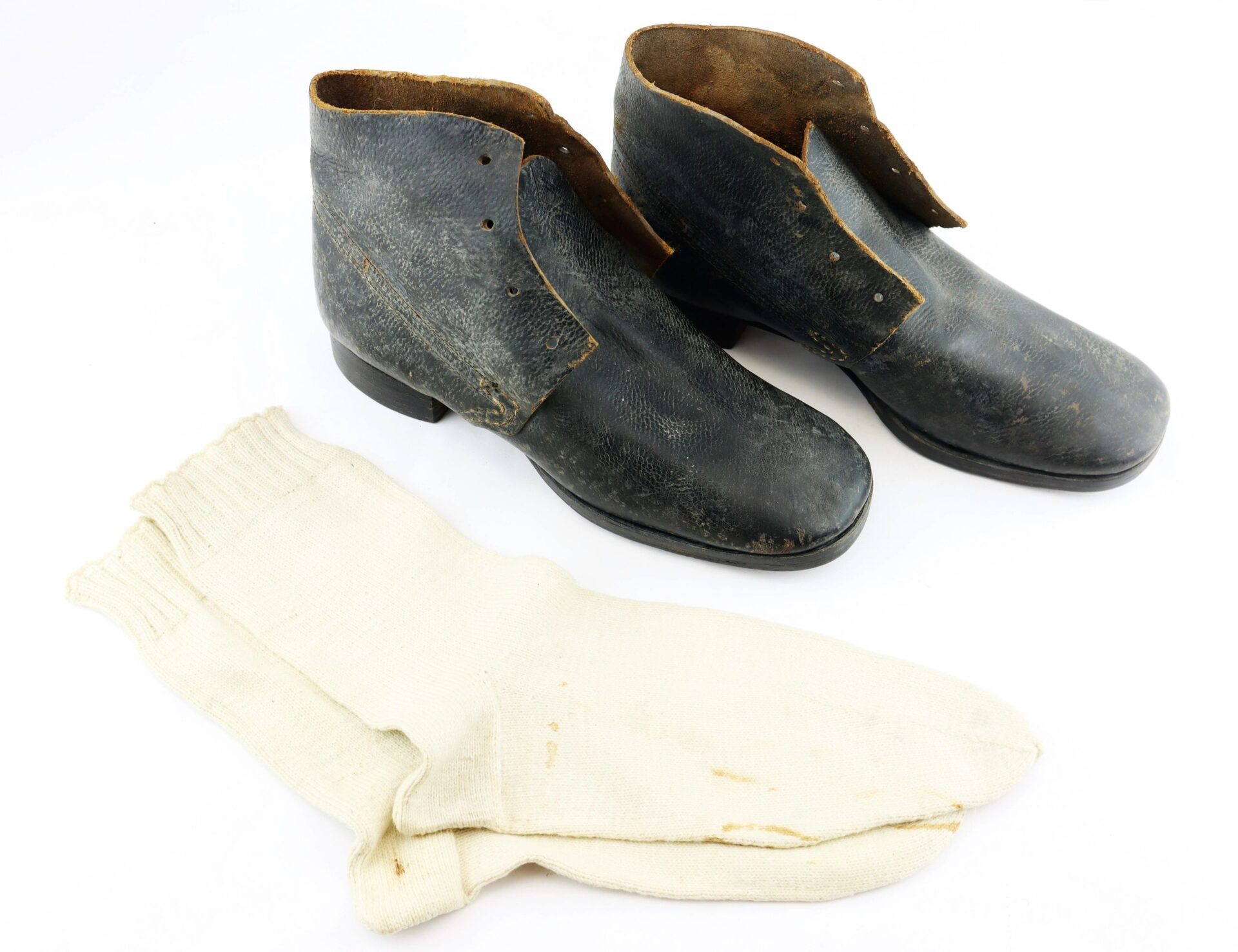 Military-Issue Brogans with a Pair of Civil War-Period Socks / SOLD