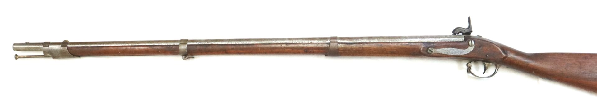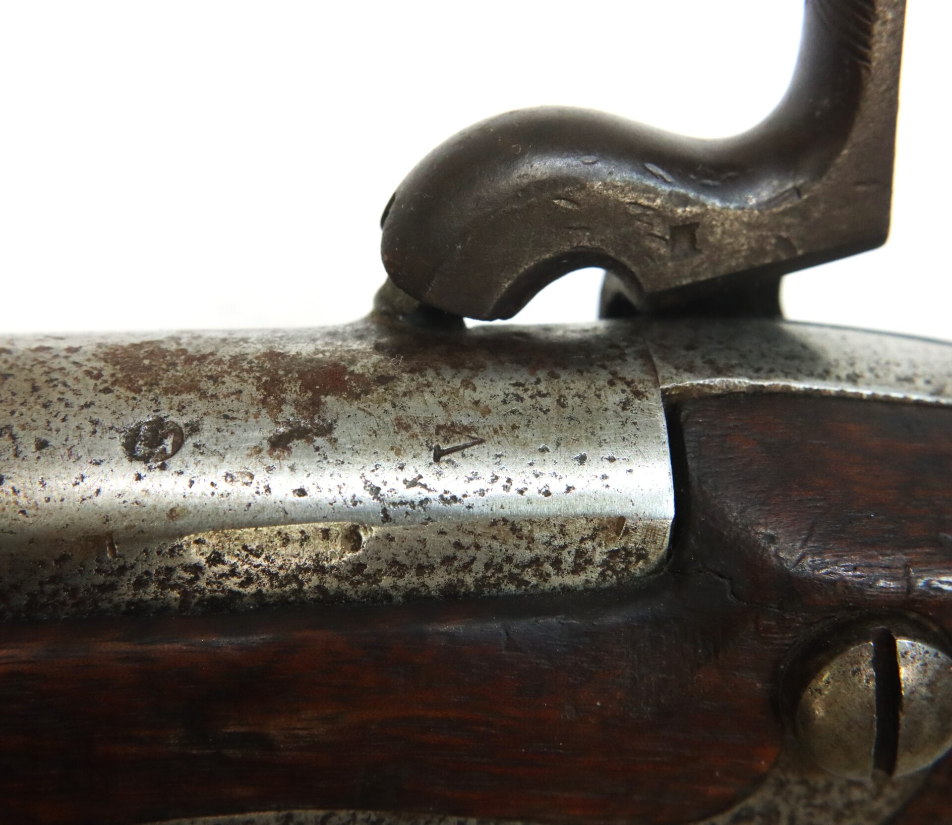 Converted Model 1816 muskets were among the most common stop-gap arms of the 1840s through early Civil War period. Originally produced as flintlocks, they were modernized through cone-in-barrel, side-bolster, or braised-bolster systems in order to extend their useful life after percussion ignition superseded the flint mechanism. These conversions are historically significant because they document the long service life of early U.S. military arms and the enormous demand for shoulder weapons in both state and national service.