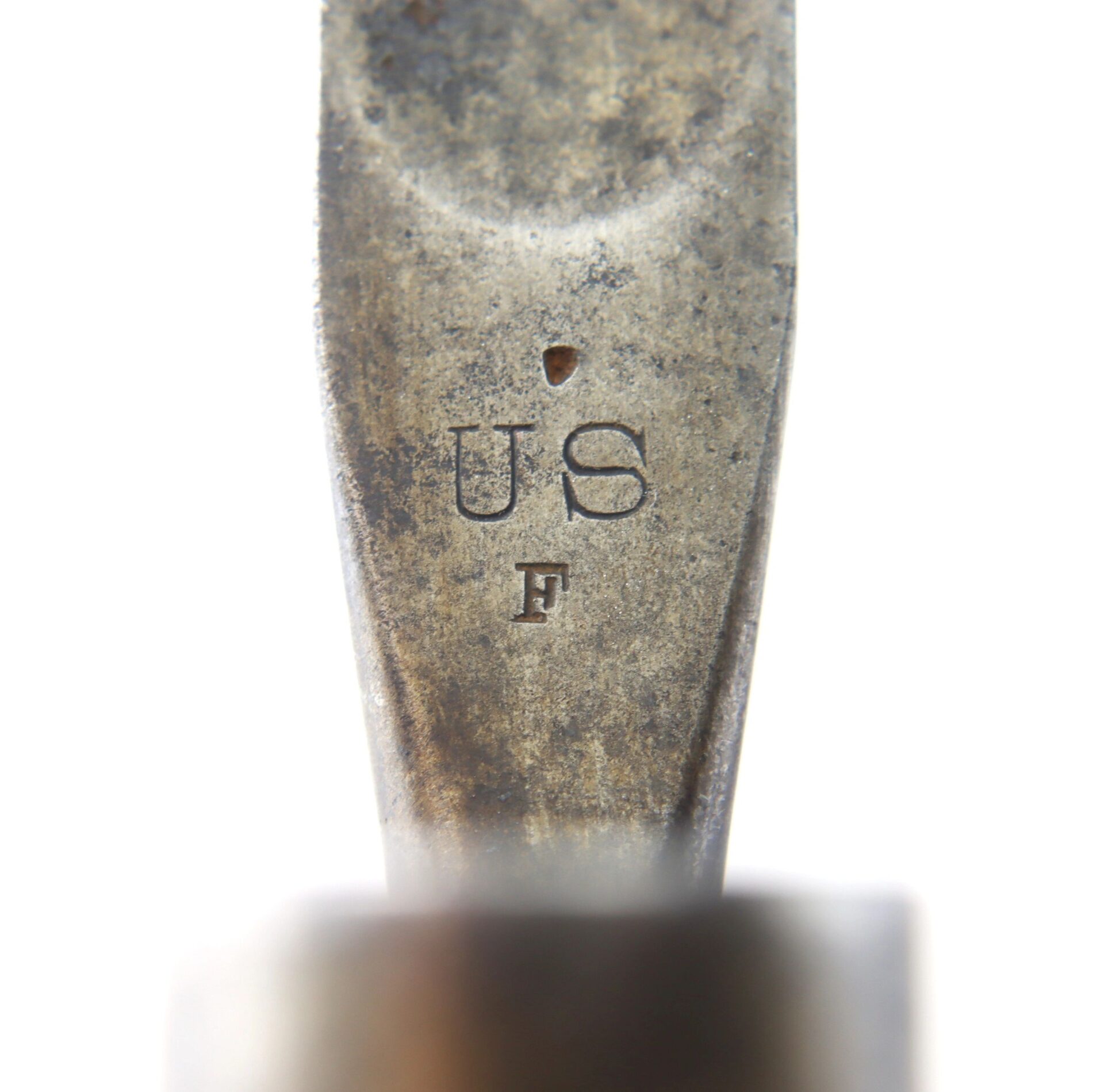 Model 1855 Triangular Socket Bayonet – Inventory Number: BAY 282 / SOLD Classic example of the .58 caliber triangular bayonet for the 1855/1861/1863 models. The socket bears a deep US proof mark as well as a circular punch mark and initial F. A superb example with nice plum brown patina and freely moving locking ring. Just a nice classic example.   Inventory Number: BAY 282 / SOLD