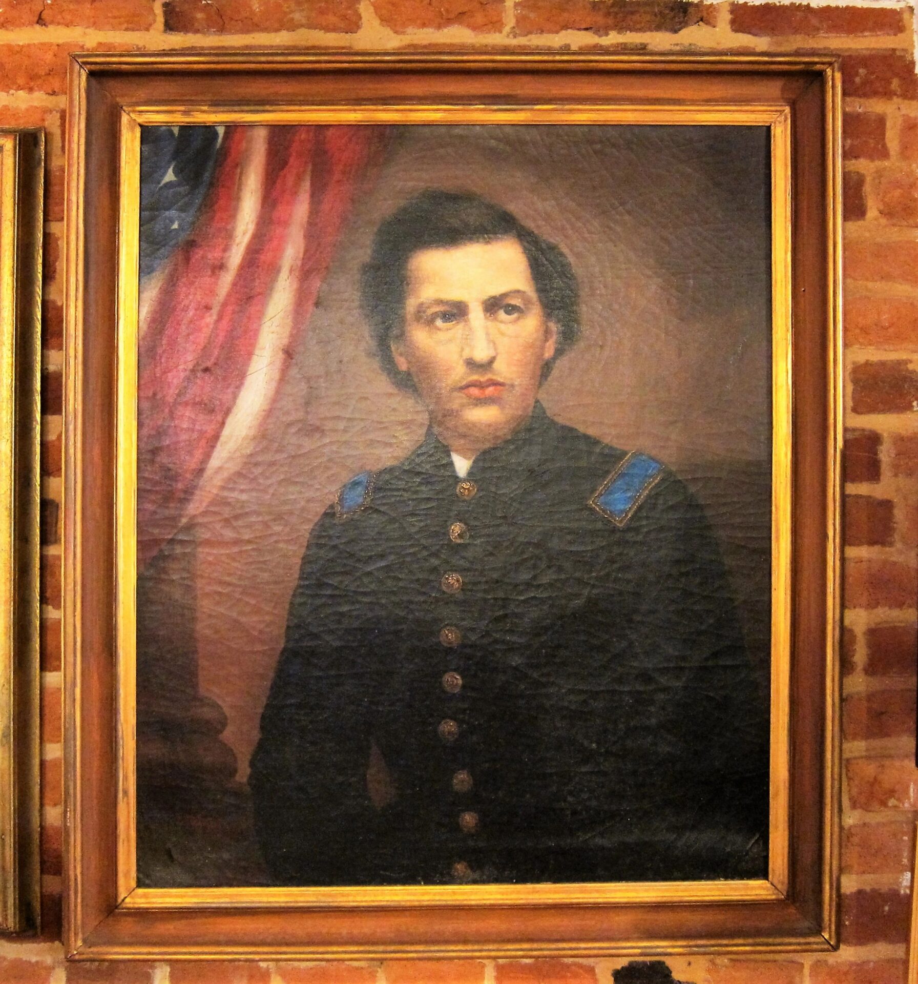 Oil Painting And Escutcheon On Canvas Of Colonel Austin W. Hogle of the 76th Illinois Volunteer Infantry