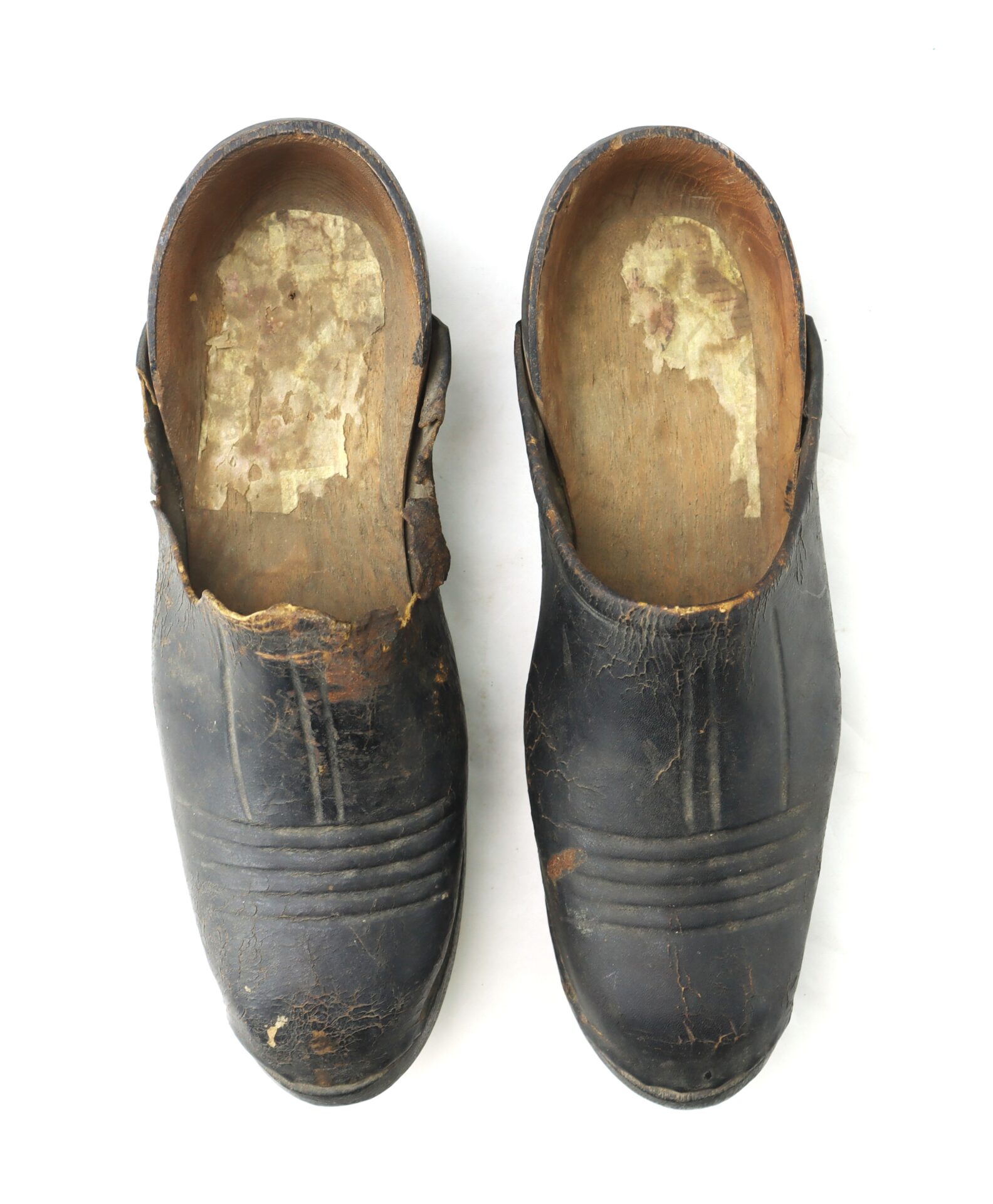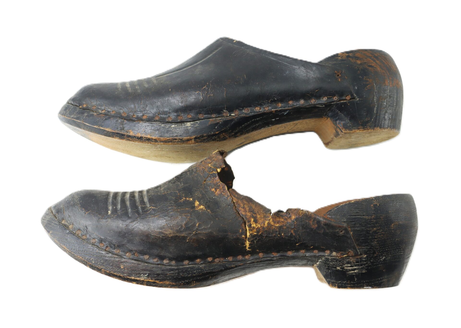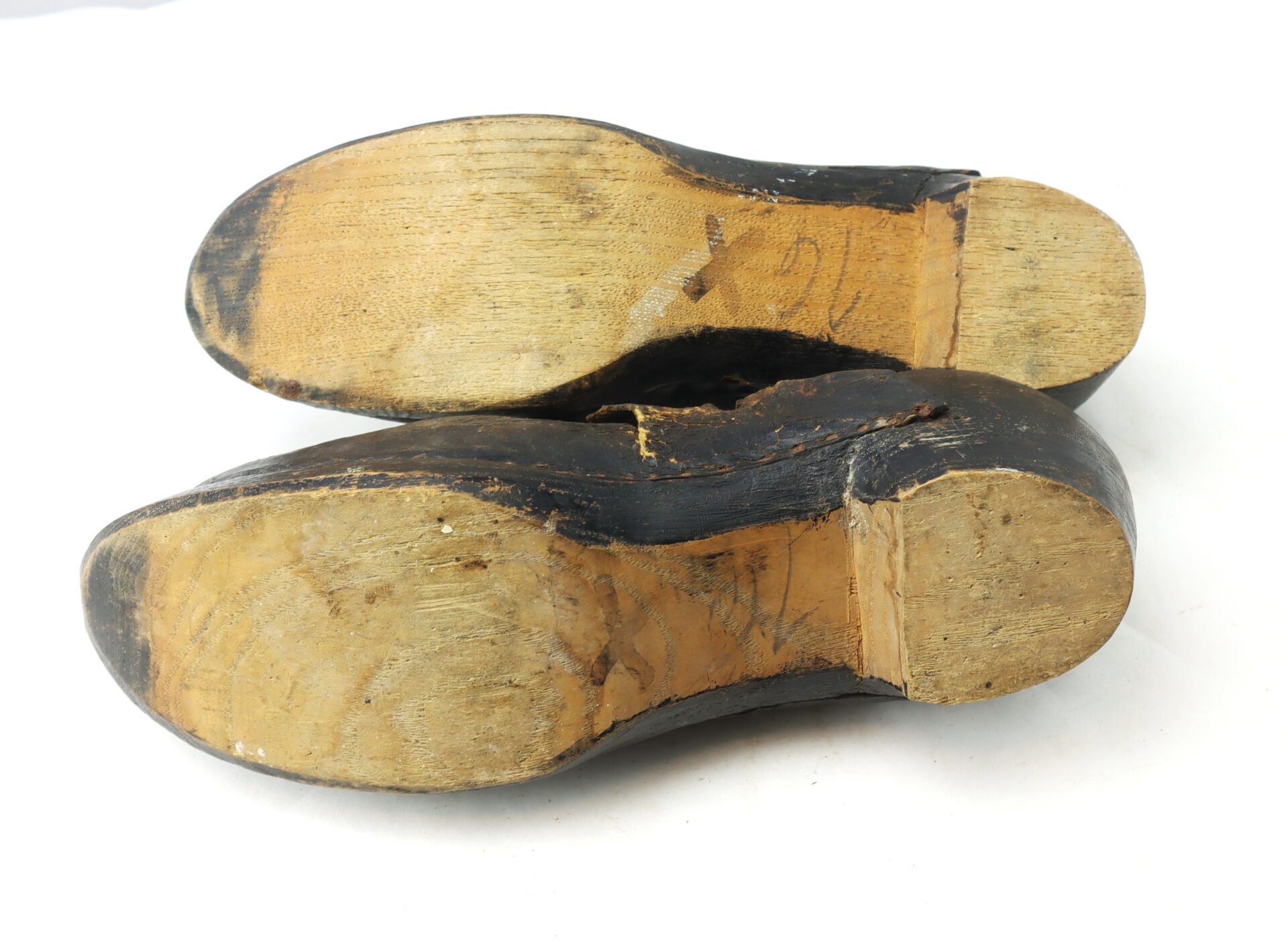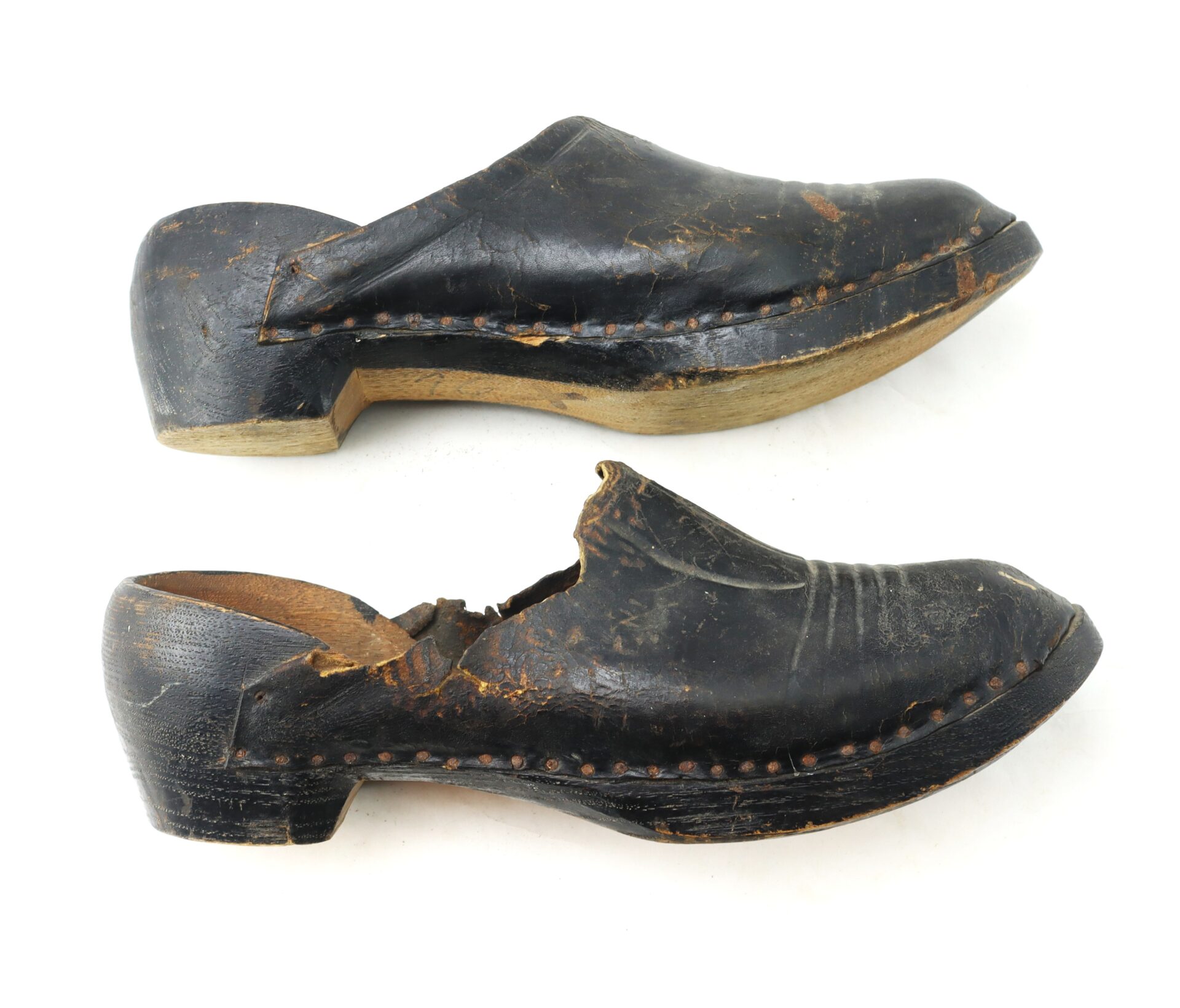 Pair of 18th Century Leather Shoes with Wooden Soles / SOLD