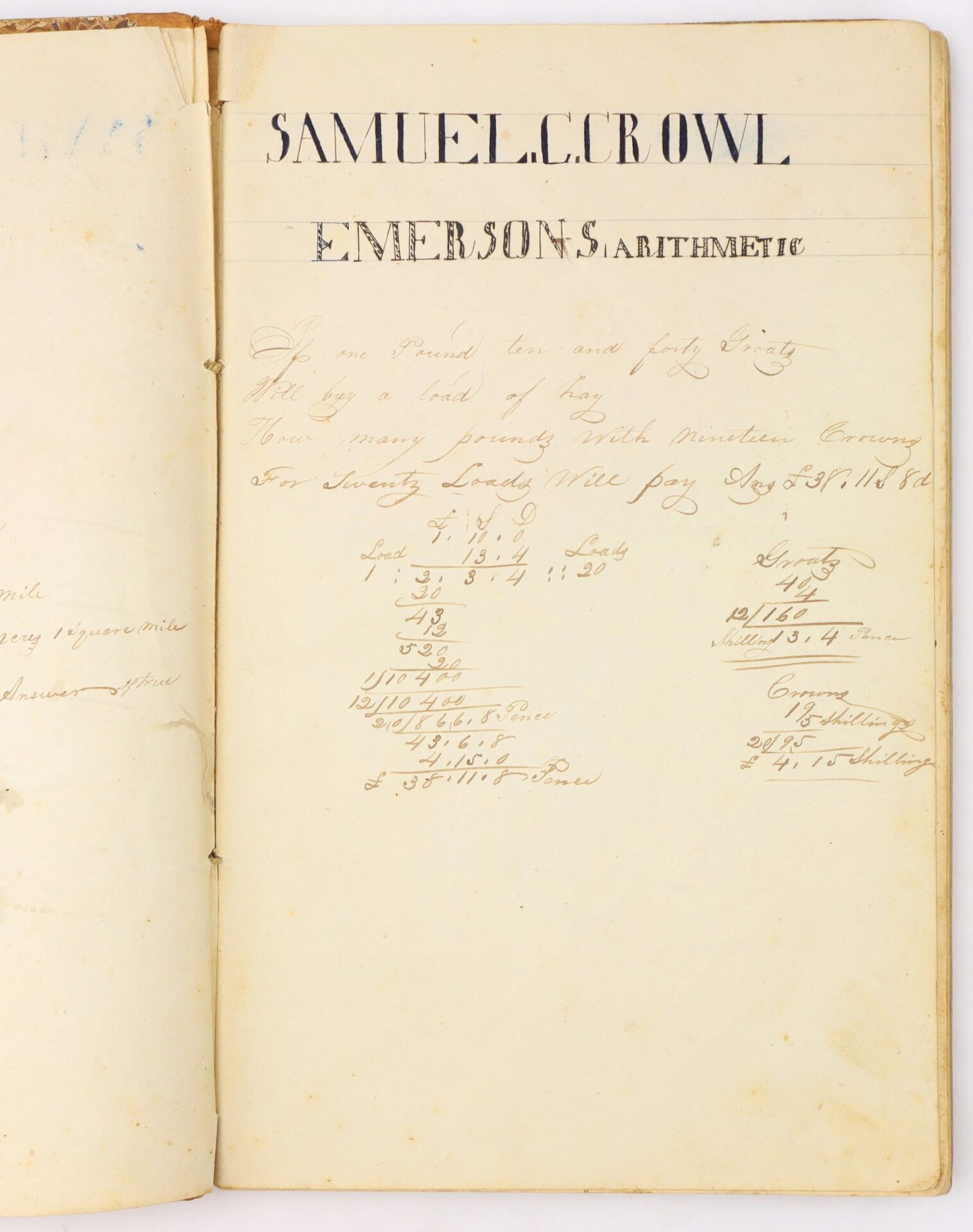 Numbered Hand-Written Pages and a Table of Contents Samuel C. Crowl (1833-1854) Signed and Dated. From Arendtsville, PA – Franklin Township – Adams County PA. This book was “Bought” by Reverend Daniel Eyster (1802-1861) Eyster was an Instructor at the: Gettysburg Academy Gettysburg Female Seminary (Owned by Eyster) Pennsylvania College Died of chronic Diarrhea.
