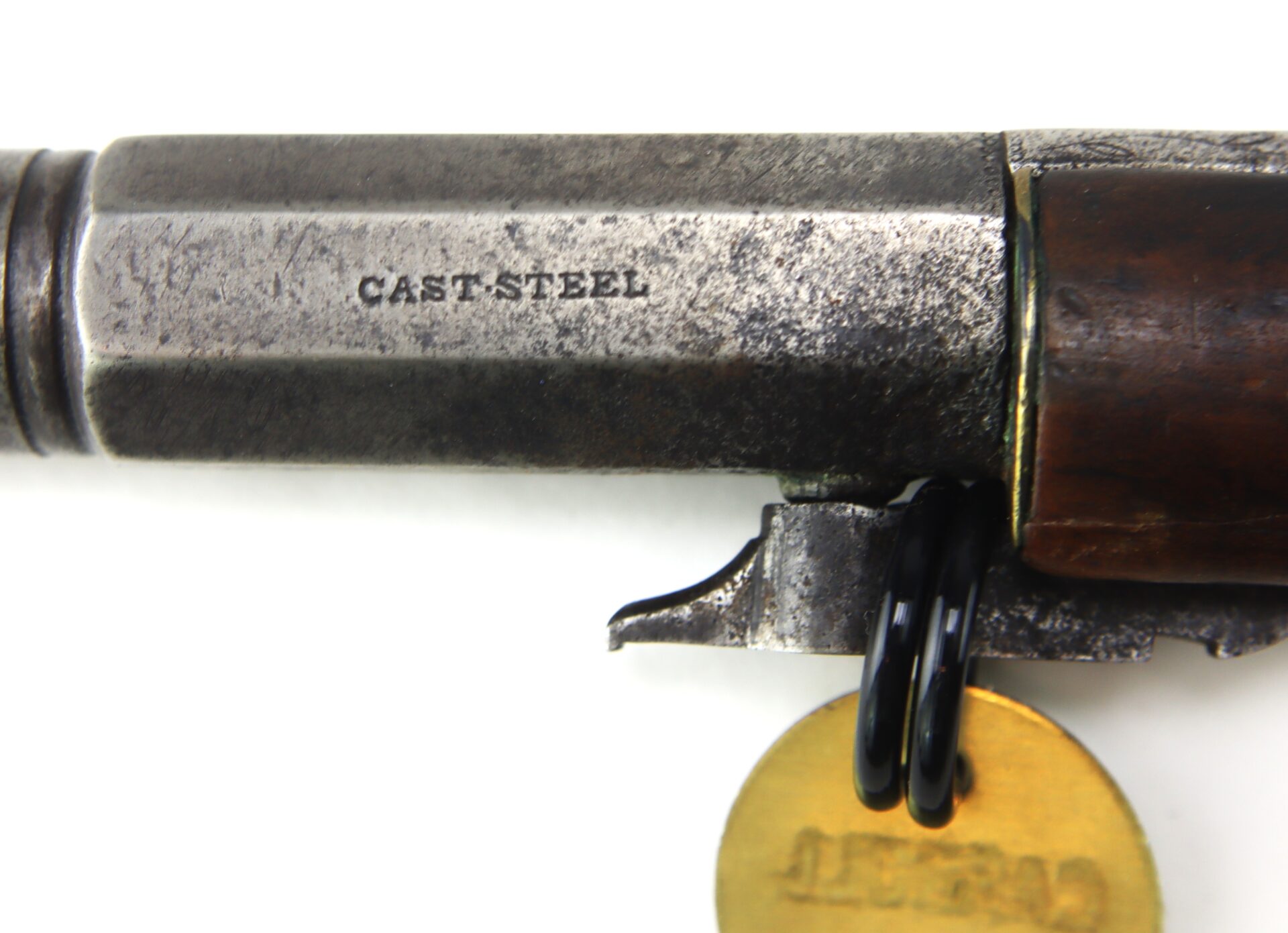 Underhammer pistols saw widespread civilian use in the antebellum period and remained popular through the Civil War era, particularly in urban centers such as Baltimore. Examples bearing clear maker markings are increasingly difficult to obtain, especially in such solid, untouched condition.