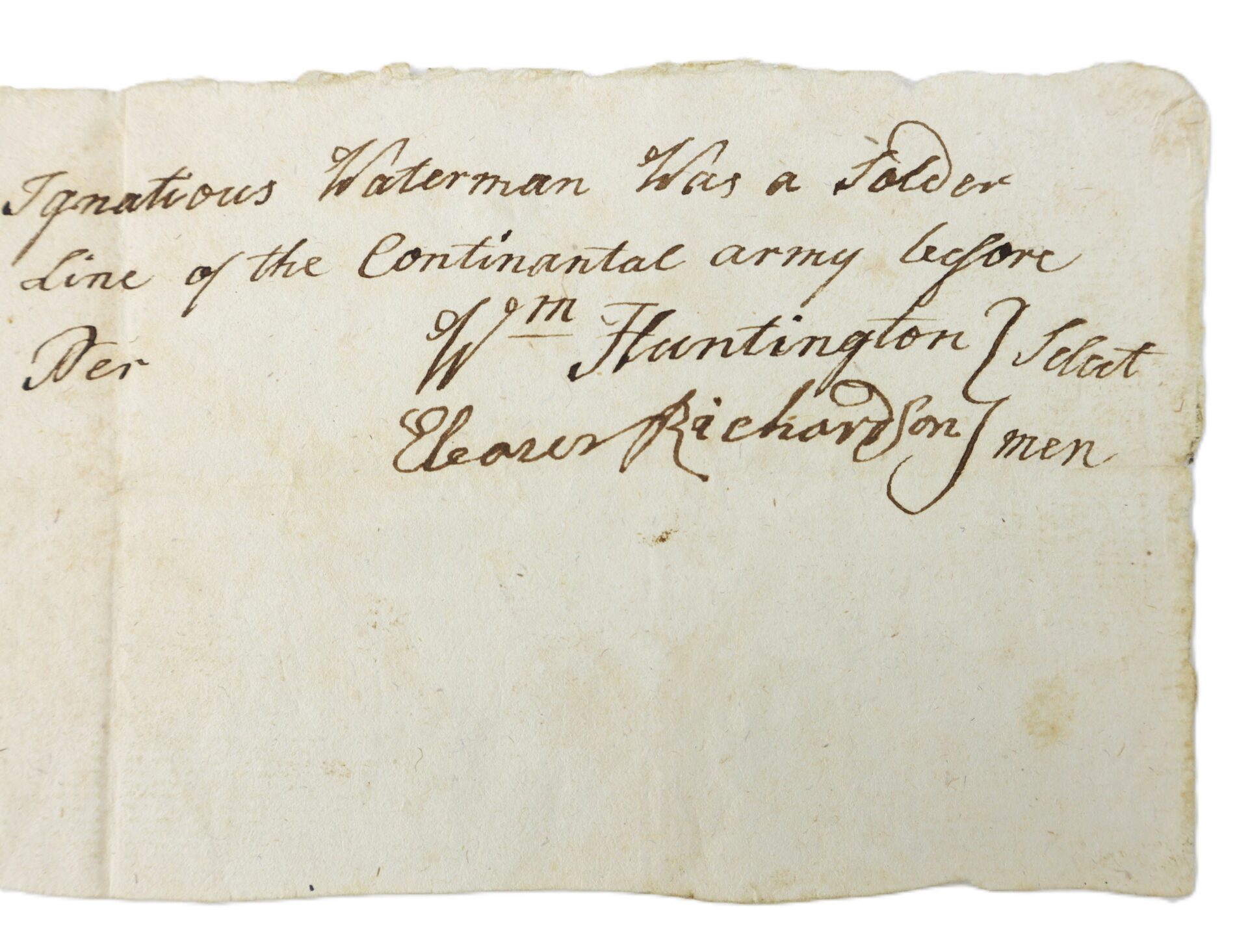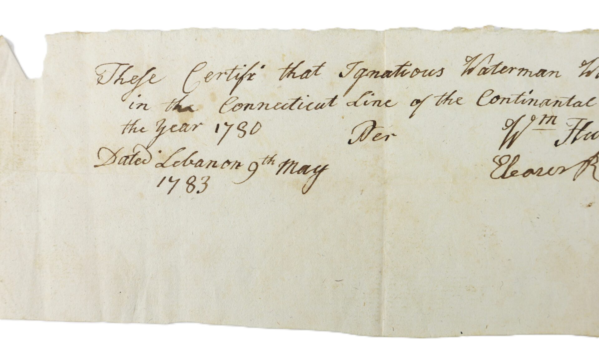 “These Certify that Ignatious Waterman was a Soldier in the Connecticut Line of the Continental Army before the year 1780.”