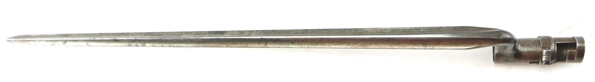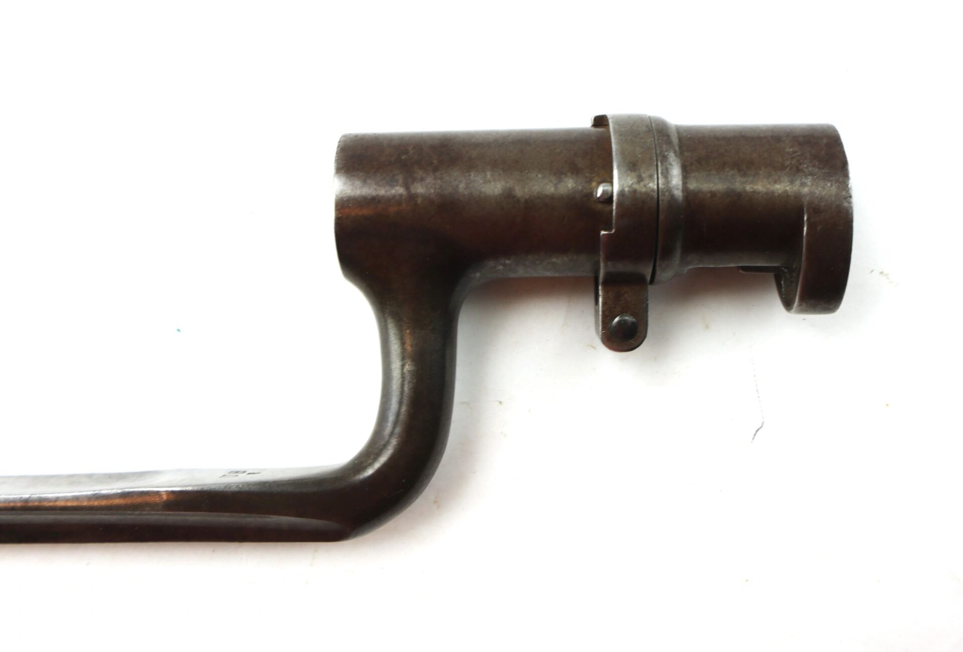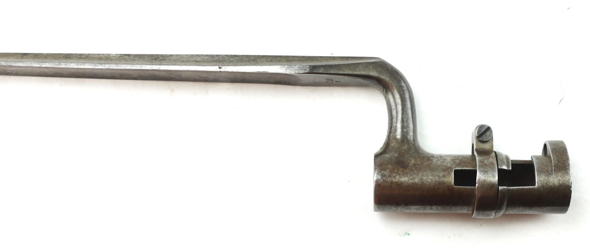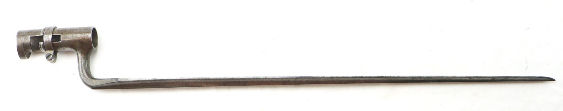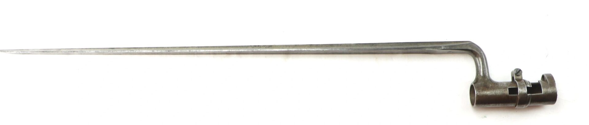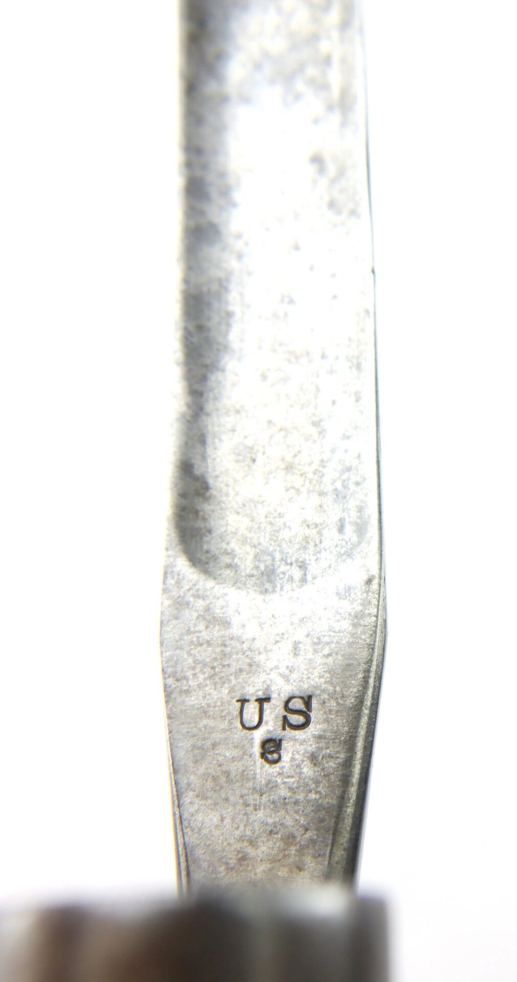 Springfield Bayonet – Inventory Number: BAY 264 .58 caliber Springfield triangular socket bayonet. This Model 1855 socket bayonet is for Springfield rifle muskets. Measures approximately 21” overall. This specimen is clean and mostly bright overall. Complete with locking ring and screw. Large “U.S” and “S” clearly stamped on blade flat. A very nice Civil War bayonet. * To purchase this item directly by credit card, please click this link. Inventory Number: BAY 264