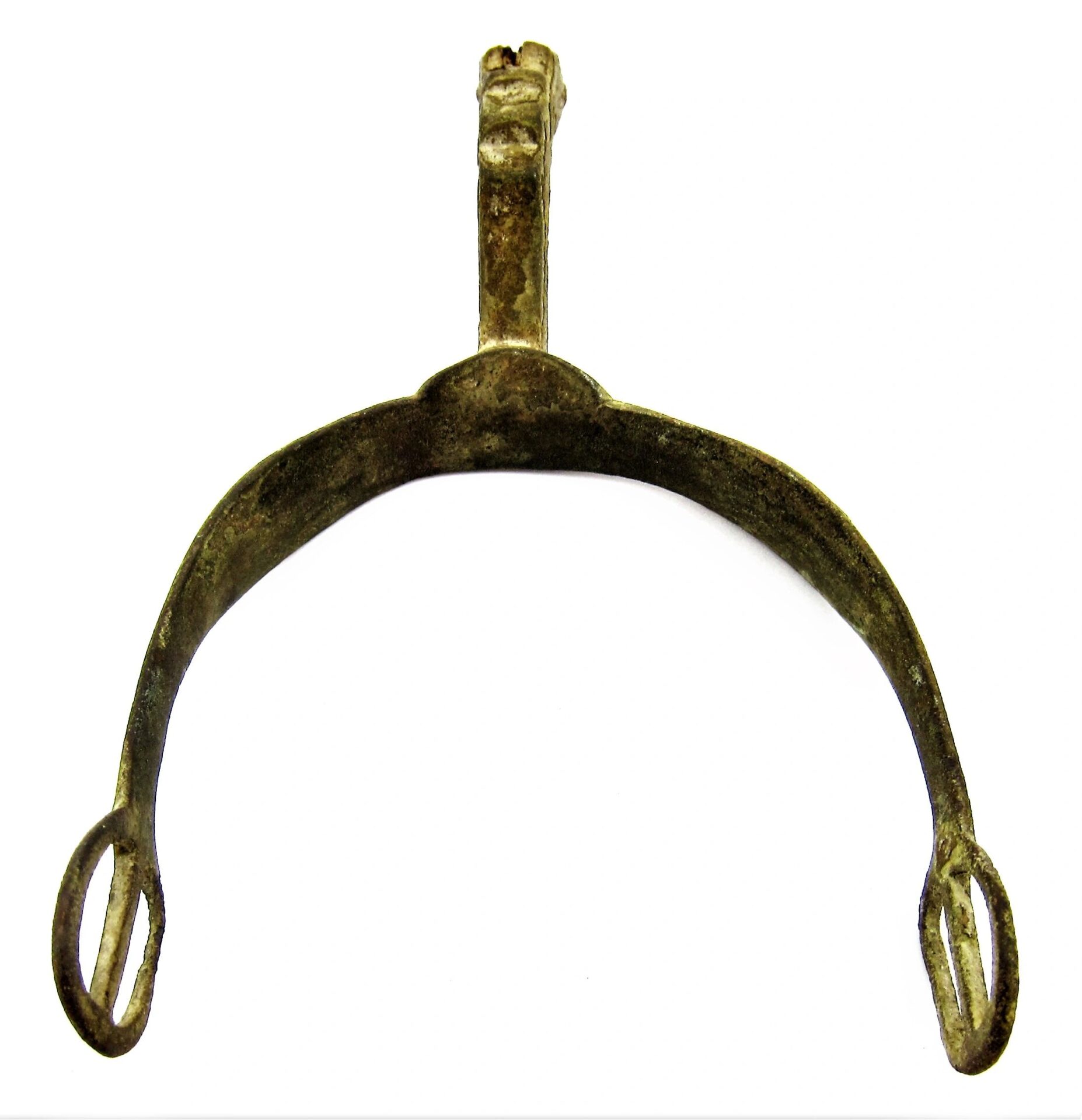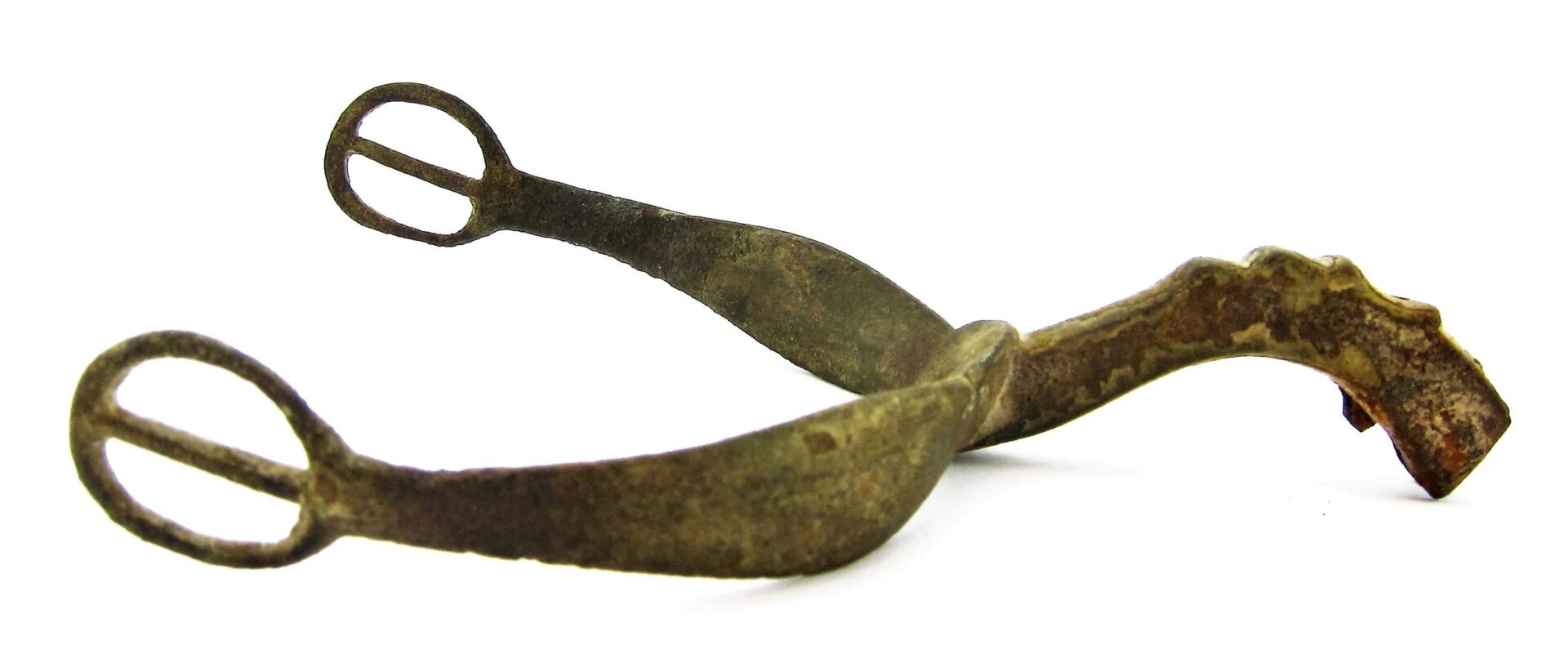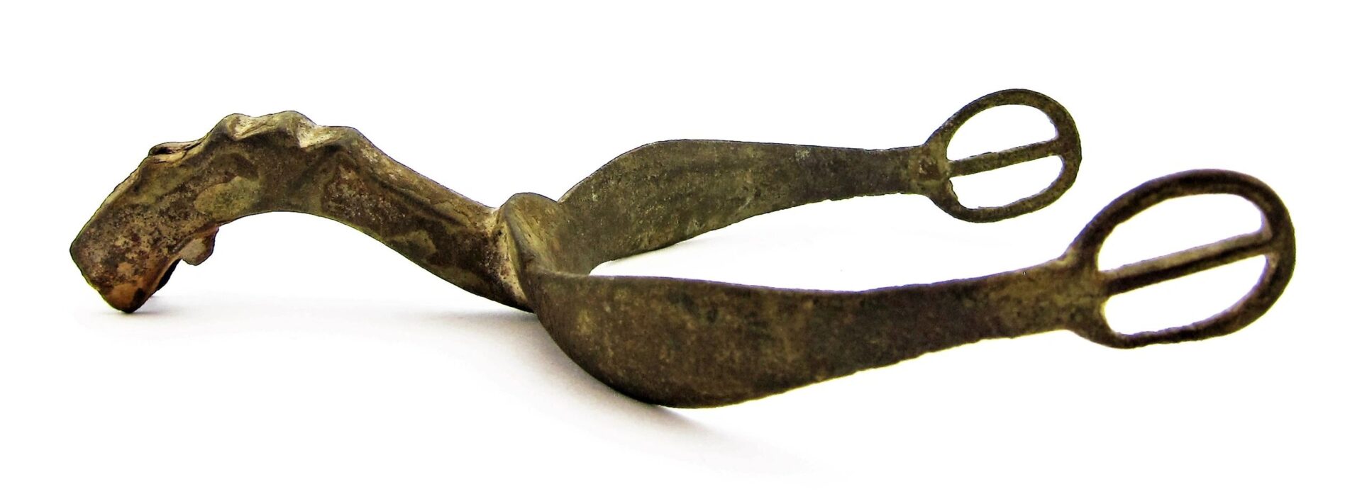 Spur from the Gettysburg Campaign – SOLD Mock Eagle Head Pattern Spur with portion of its original rowel intact, nice curved body with contoured neck mimicking the Eagle Head Spur. Recovered from Fairfield, PA.  Found in 1988 by Relic Hunter Ed Miller. The Battle of Fairfield was a cavalry engagement during the Gettysburg Campaign of the American Civil War. It was fought July 3, 1863, near Fairfield, Pennsylvania, concurrently with the Battle of Gettysburg, although it was not a formal part of that battle. While a minor fight by the small number of troops deployed, strategically, the Confederate victory secured the important Hagerstown Road, which Robert E. Lee’s Army of Northern Virginia would use on July 5 to return to Maryland and then on to safety in Virginia. Fairfield had been the site of combat on June 21, when the 14th Virginia Cavalry of Brig. Gen. Albert Jenkins’s mounted infantry brigade had used Monterey Pass to conduct a raid near Fairfield with the First Troop, Philadelphia City Cavalry that resulted in the Confederates withdrawing into the Cumberland Valley.  Much of the cavalry of the Army of Northern Virginia had accompanied Maj. Gen. J.E.B. Stuart on his ride around the Union Army of the Potomac through Maryland and south-central Pennsylvania. Lee had retained several brigades to guard the mountain passes as he advanced through the Shenandoah and Cumberland Valleys and to scout Federal positions. Among the latter brigades was that of Brig. Gen. William E. “Grumble” Jones—the celebrated “Laurel Brigade” that had once been commanded by Turner Ashby. Jones had detached one of his best commands, the 35th Battalion, Virginia Cavalry, to accompany the infantry of Jubal Early, but retained the bulk of his command. Jones’s Brigade had been raiding the Baltimore & Ohio Railroad in West Virginia and Maryland before being recalled by Lee. They hastened to Pennsylvania, crossing the Potomac River on July 1 (where Jones detached the 12th Virginia Cavalry to guard the ford) and camping at Chambersburg the following night. Jones’s force had been reduced to the 6th, 7th, and 11th Virginia Cavalry and Preston Chew’s Battery of horse artillery. Jones reached Fairfield on July 3 in response to Lee’s orders to secure the vital Hagerstown Road. Reports of a slow moving Confederate wagon train in the vicinity had attracted the attention of newly commissioned Union Brig. Gen. Wesley Merritt, who ordered the 6th U.S. Cavalry under Maj. Samuel H. Starr to scout Fairfield and locate the wagons. Once in Fairfield, Major Starr learned that a wagon train had just rolled out of town and was heading to Cashtown. He divided his 400 men into three detachments and began to search for the wagons. Battle One party soon encountered the pickets of Jones’s 7th Virginia Cavalry and withdrew when additional Confederates rode up. Informed of the presence of the enemy, Starr rode to a small ridge and dismounted his men in fields and an orchard on both sides of the road. He threw back a mounted charge of the 7th Virginia, just as Chew’s Battery unlimbered and opened fire on the Federal cavalrymen. Supported by the 6th Virginia, the 7th Virginia charged again, clearing Starr’s force off the ridge and inflicting heavy losses. Jones pursued the retreating Federals for three miles to the Fairfield Gap, but was unable to catch his quarry Aftermath Federal losses were 6 killed, 28 wounded, and 208 unaccounted for—primarily prisoners. The losses for the Confederates were 8 killed, 21 wounded, and 5 missing. Jones camped near Fairfield and kept the road open for Lee’s retreat, then guarded the rear as the Army of Northern Virginia slogged through the Fairfield Gap in a driving rainstorm on July 5. Pvt. George C. Platt, an Irish immigrant serving in Troop H of the 6th U.S. Cavalry, was awarded the Medal of Honor on July 12, 1895, for his actions at Fairfield. His citation reads, “Seized the regimental flag upon the death of the standard bearer in a hand-to-hand fight and prevented it from falling into the hands of the enemy.” After the fighting had ended, many wounded soldiers were cared for in the town of Fairfield. Major Samuel H. Starr was taken to the widow Sarah Amanda Blythe’s house, which is likely where his arm was amputated. Other accounts mention that the Rufus C. Swope House (across from the Fairfield Inn), and St. John’s Lutheran Church were used as hospitals. It is probable that other buildings in the town were used for this purpose as well. Inventory Number: GET 205 / SOLD
