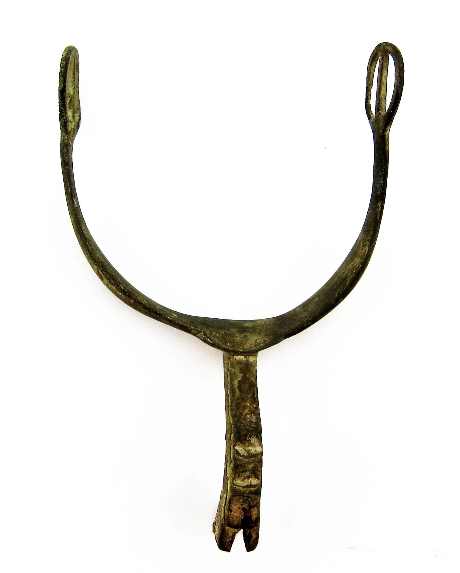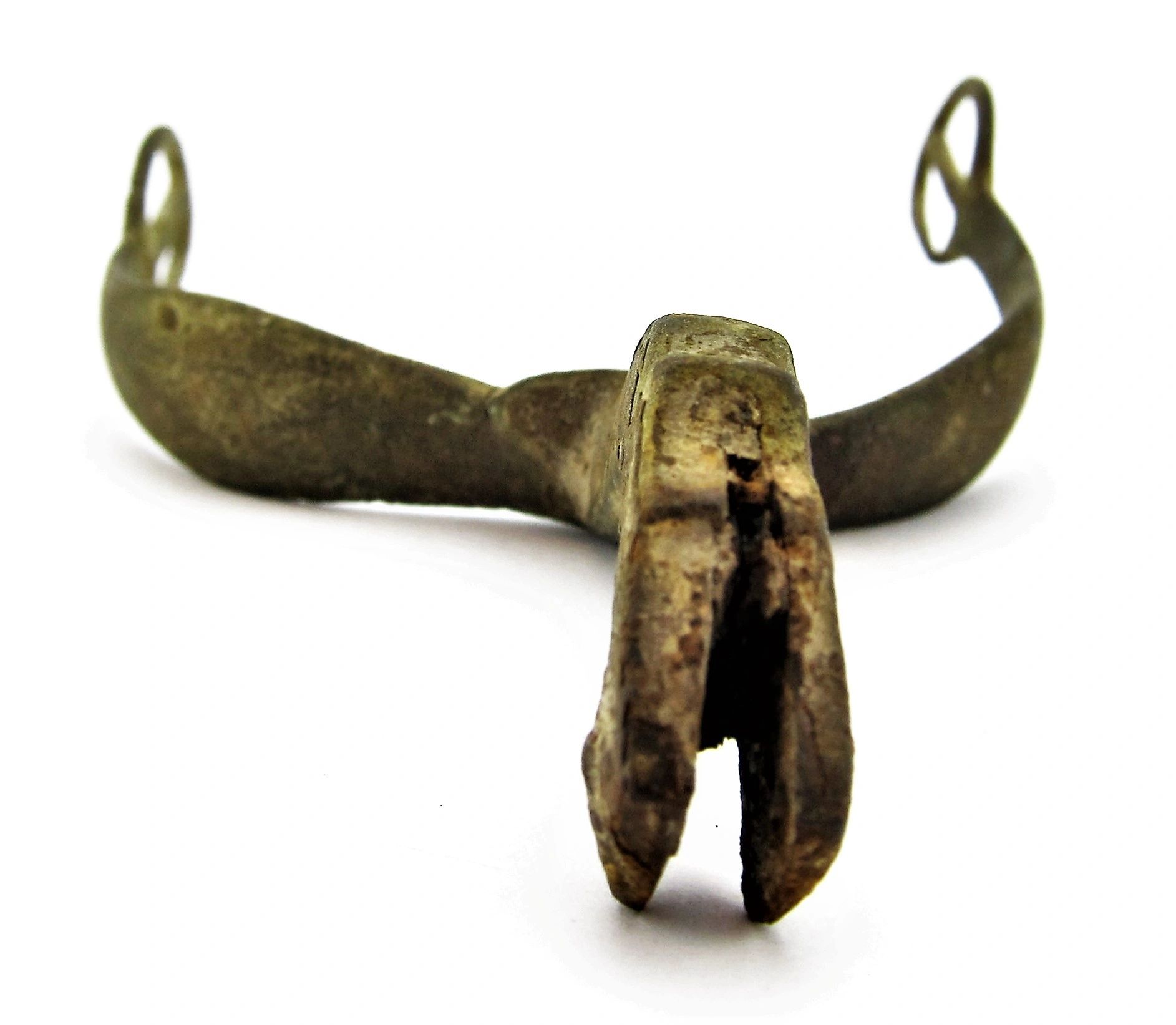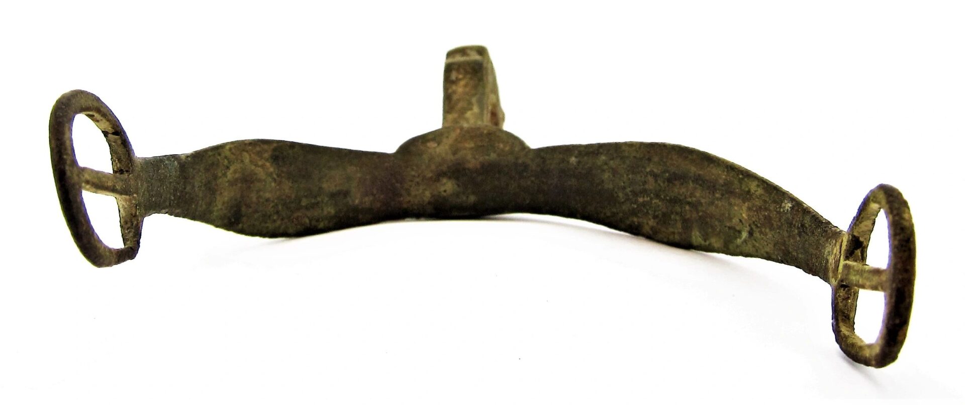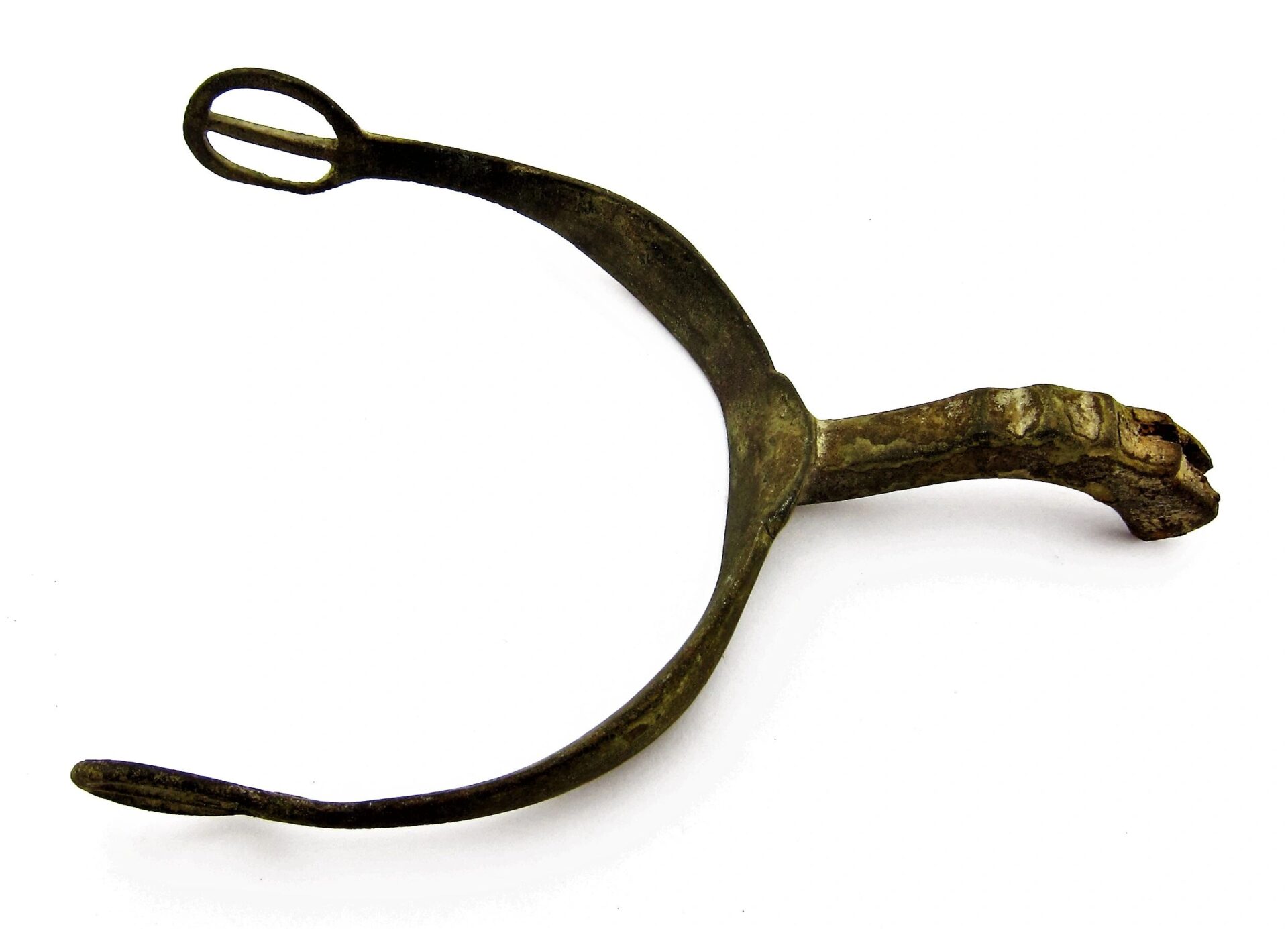 Spur from the Gettysburg Campaign – SOLD Mock Eagle Head Pattern Spur with portion of its original rowel intact, nice curved body with contoured neck mimicking the Eagle Head Spur. Recovered from Fairfield, PA.  Found in 1988 by Relic Hunter Ed Miller. The Battle of Fairfield was a cavalry engagement during the Gettysburg Campaign of the American Civil War. It was fought July 3, 1863, near Fairfield, Pennsylvania, concurrently with the Battle of Gettysburg, although it was not a formal part of that battle. While a minor fight by the small number of troops deployed, strategically, the Confederate victory secured the important Hagerstown Road, which Robert E. Lee’s Army of Northern Virginia would use on July 5 to return to Maryland and then on to safety in Virginia. Fairfield had been the site of combat on June 21, when the 14th Virginia Cavalry of Brig. Gen. Albert Jenkins’s mounted infantry brigade had used Monterey Pass to conduct a raid near Fairfield with the First Troop, Philadelphia City Cavalry that resulted in the Confederates withdrawing into the Cumberland Valley.  Much of the cavalry of the Army of Northern Virginia had accompanied Maj. Gen. J.E.B. Stuart on his ride around the Union Army of the Potomac through Maryland and south-central Pennsylvania. Lee had retained several brigades to guard the mountain passes as he advanced through the Shenandoah and Cumberland Valleys and to scout Federal positions. Among the latter brigades was that of Brig. Gen. William E. “Grumble” Jones—the celebrated “Laurel Brigade” that had once been commanded by Turner Ashby. Jones had detached one of his best commands, the 35th Battalion, Virginia Cavalry, to accompany the infantry of Jubal Early, but retained the bulk of his command. Jones’s Brigade had been raiding the Baltimore & Ohio Railroad in West Virginia and Maryland before being recalled by Lee. They hastened to Pennsylvania, crossing the Potomac River on July 1 (where Jones detached the 12th Virginia Cavalry to guard the ford) and camping at Chambersburg the following night. Jones’s force had been reduced to the 6th, 7th, and 11th Virginia Cavalry and Preston Chew’s Battery of horse artillery. Jones reached Fairfield on July 3 in response to Lee’s orders to secure the vital Hagerstown Road. Reports of a slow moving Confederate wagon train in the vicinity had attracted the attention of newly commissioned Union Brig. Gen. Wesley Merritt, who ordered the 6th U.S. Cavalry under Maj. Samuel H. Starr to scout Fairfield and locate the wagons. Once in Fairfield, Major Starr learned that a wagon train had just rolled out of town and was heading to Cashtown. He divided his 400 men into three detachments and began to search for the wagons. Battle One party soon encountered the pickets of Jones’s 7th Virginia Cavalry and withdrew when additional Confederates rode up. Informed of the presence of the enemy, Starr rode to a small ridge and dismounted his men in fields and an orchard on both sides of the road. He threw back a mounted charge of the 7th Virginia, just as Chew’s Battery unlimbered and opened fire on the Federal cavalrymen. Supported by the 6th Virginia, the 7th Virginia charged again, clearing Starr’s force off the ridge and inflicting heavy losses. Jones pursued the retreating Federals for three miles to the Fairfield Gap, but was unable to catch his quarry Aftermath Federal losses were 6 killed, 28 wounded, and 208 unaccounted for—primarily prisoners. The losses for the Confederates were 8 killed, 21 wounded, and 5 missing. Jones camped near Fairfield and kept the road open for Lee’s retreat, then guarded the rear as the Army of Northern Virginia slogged through the Fairfield Gap in a driving rainstorm on July 5. Pvt. George C. Platt, an Irish immigrant serving in Troop H of the 6th U.S. Cavalry, was awarded the Medal of Honor on July 12, 1895, for his actions at Fairfield. His citation reads, “Seized the regimental flag upon the death of the standard bearer in a hand-to-hand fight and prevented it from falling into the hands of the enemy.” After the fighting had ended, many wounded soldiers were cared for in the town of Fairfield. Major Samuel H. Starr was taken to the widow Sarah Amanda Blythe’s house, which is likely where his arm was amputated. Other accounts mention that the Rufus C. Swope House (across from the Fairfield Inn), and St. John’s Lutheran Church were used as hospitals. It is probable that other buildings in the town were used for this purpose as well. Inventory Number: GET 205 / SOLD