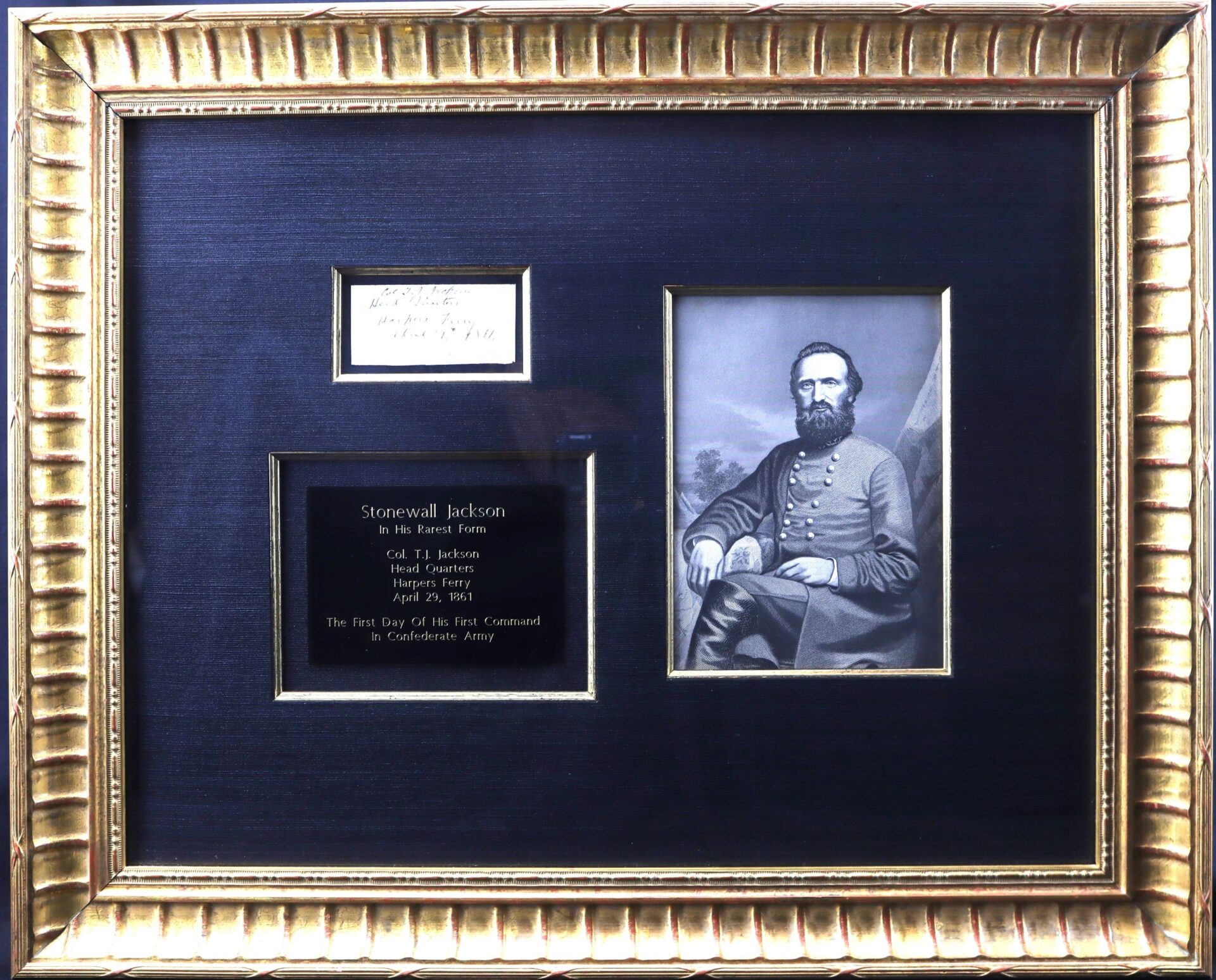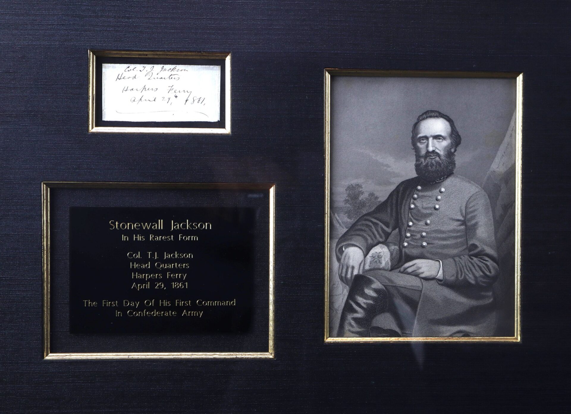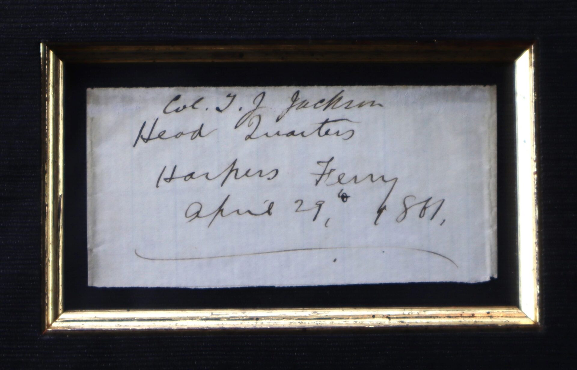 Stonewall Jackson Autograph In His Rarest Form! – Inventory Number: CON 442 / SOLD Col. T.J. Jackson Head Quarters Harper’s Ferry April 29, 1861 The First Day of His Command in the Confederate Army!  Inventory Number: CON 442 / SOLD