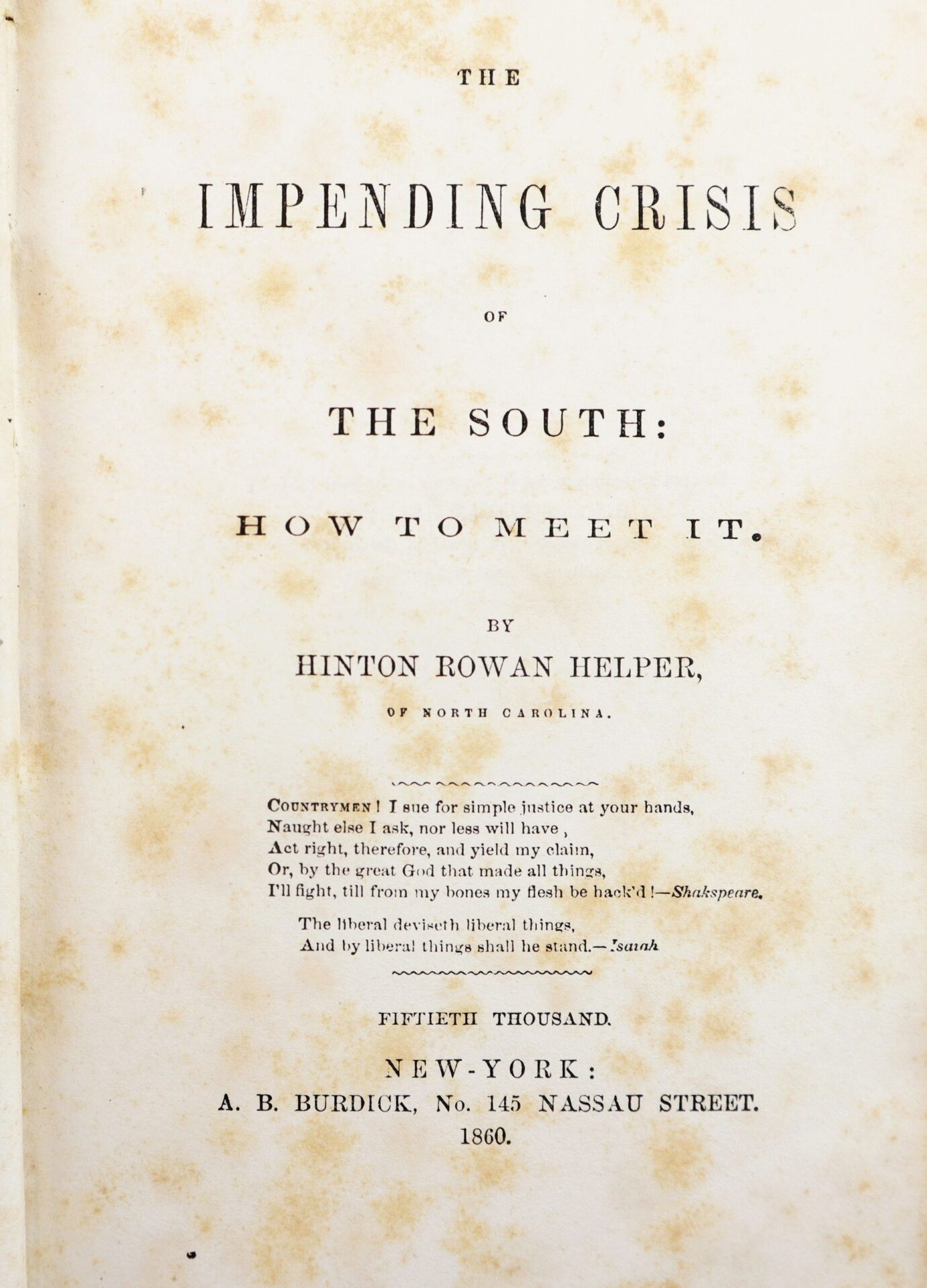 The Impending Crisis of the South: How to Meet It Printed in 1860!