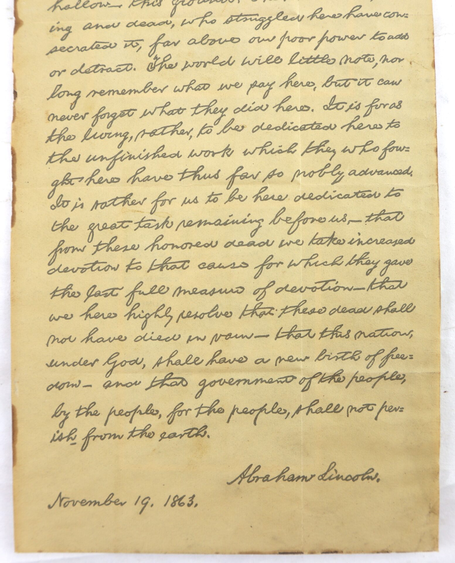 Turn-of-the-Century Copy of the Gettysburg Address / SOLD