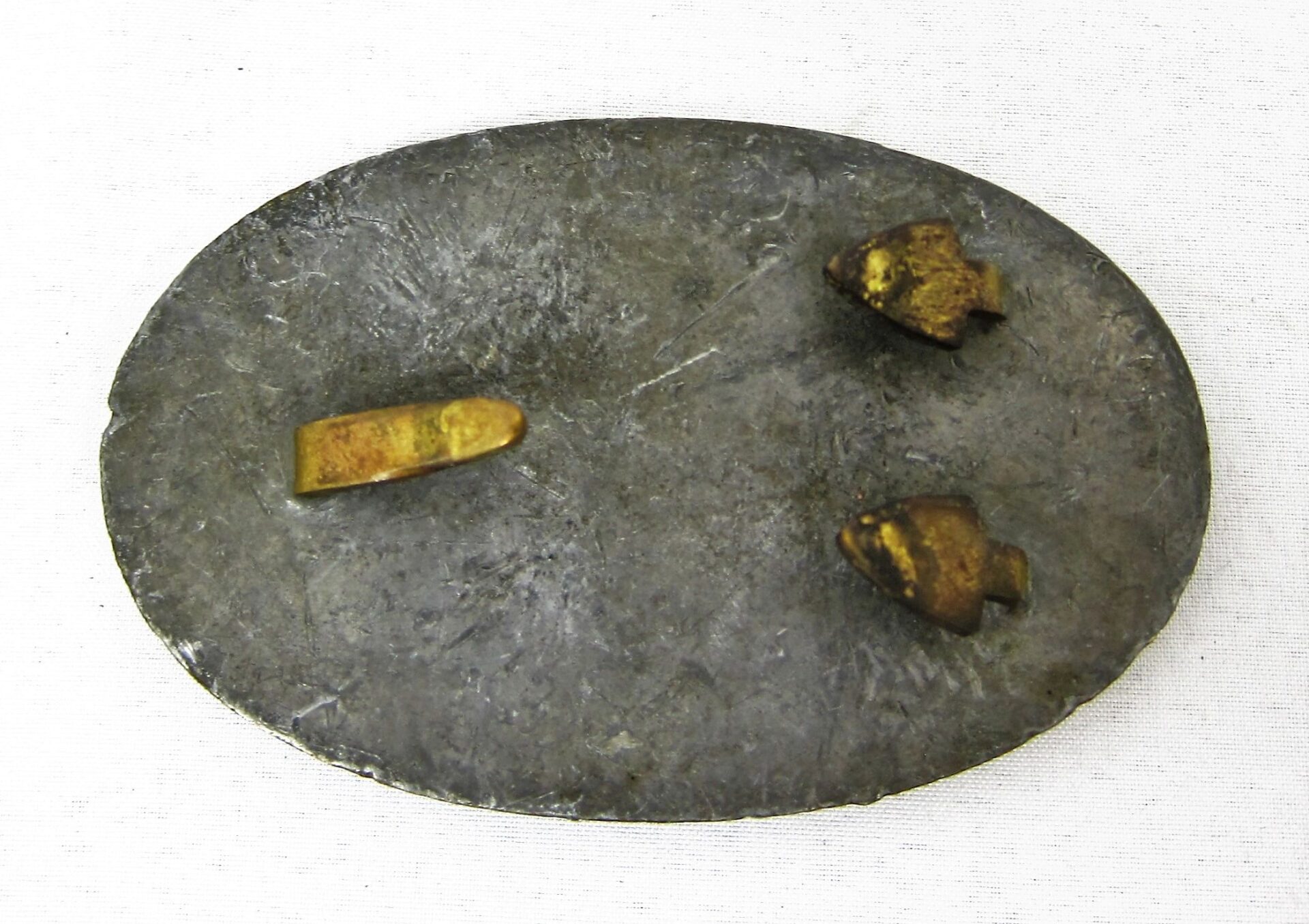 Regulation enlisted Civil War U.S. belt plate. Excellent example with arrowhead hooks. Nice amount of its original gold finish highlights the face. Lead fill is in good condition. Inventory Number: BEL 020 / SOLD