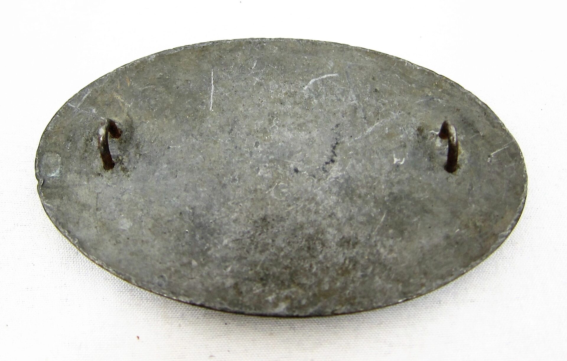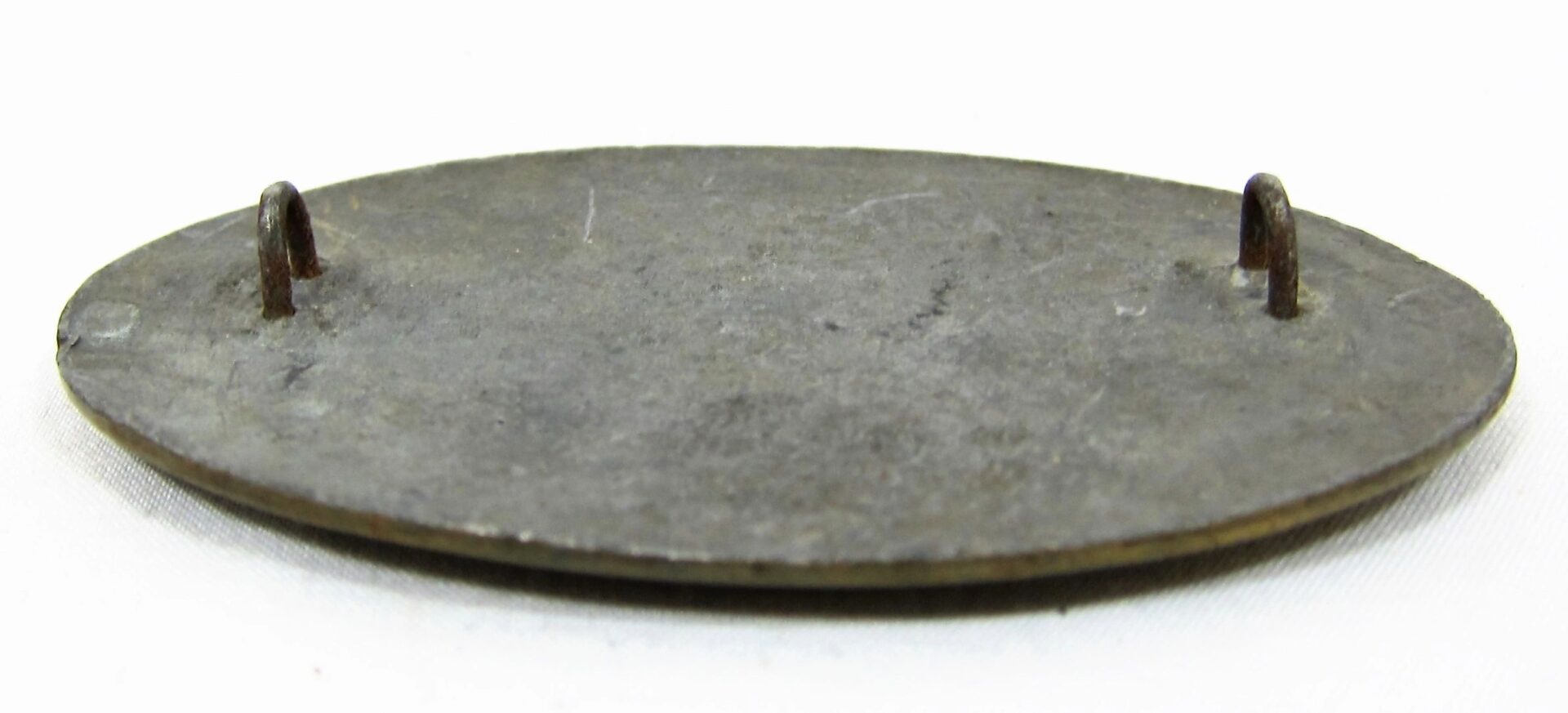 Excellent non-excavated example of the U.S. cartridge box plate.  Nice mellow patina with gold finish highlighting the letters “U.S.”. The back of the plate is in excellent condition with smooth lead fill and clean iron loops for affixing to the cartridge box flap. Inventory Number: BEL 019 / SOLD