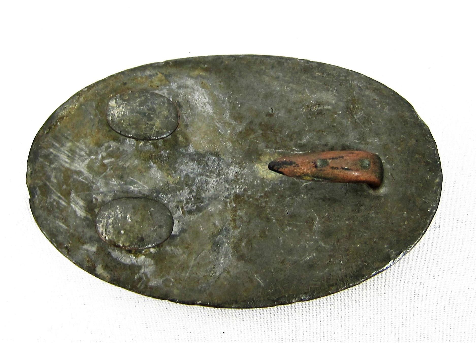 U.S> Puppy Paw Plate – Inventory Number: BEL 023 / SOLD Very nice early example of the U.S. puppy-paw belt plate. Nice mellow gold patina on face. From an collection assembled at the turn of the century in Haerper’s Ferry. Inventory Number: BEL 023 / SOLD