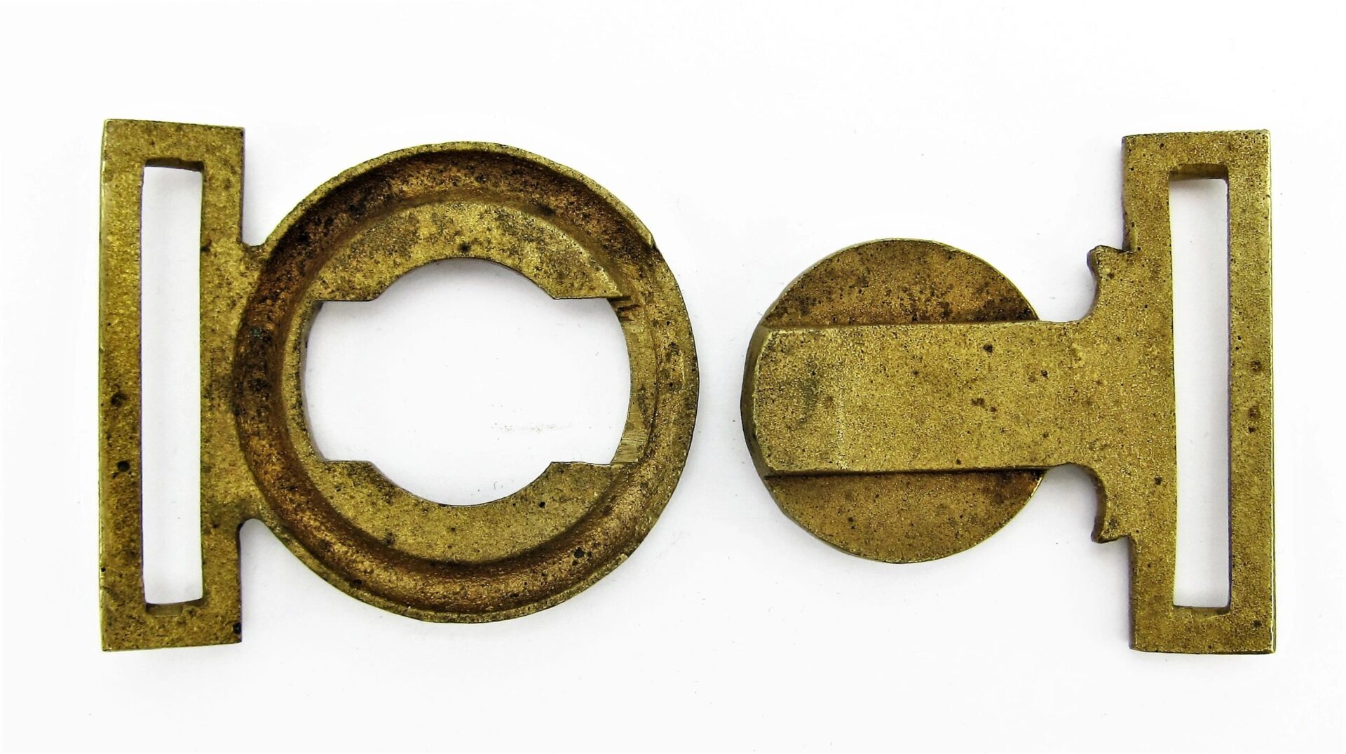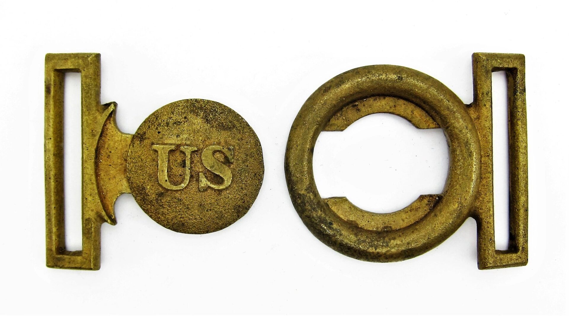 US Dragoon Artillery Plate – Inventory Number: BEL 033 – SOLD Rare Two-piece Interlocking U.S. Sword Belt Plate.  Very nice non-excavated example of this desirable two-piece belt plate.  When encountered with a belt it is typically mounted for the model 1832 short artillery sword, or the model 1840 light artillery saber.  This plate was recently acquired from a 50+ year collection of belt plates and the first we’ve had to offer in three years.  The plate has a nice mellow patina and has not been cleaned.  The stippling on the field is detailed and highlights the letter U.S.  Would make a great addition to any Civil War artillery or belt plate collection. Inventory Number: BEL 033 – SOLD