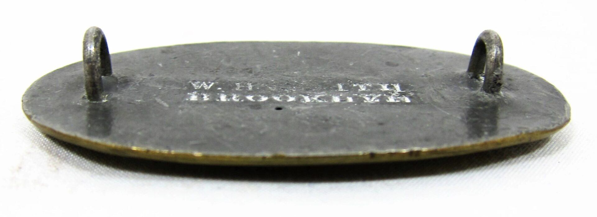 “W.H. Smith” Brooklyn Marked 1839 U.S. Box Plate –  Inventory Number: BEL 080 / Sold 1839 Small pattern U.S. Cartridge box plate with iron loops.  Maker marked: “W.H. Smith/Brooklyn”.  Very nice non-excavated example with light patina and strong gold highlights.   Inventory Number: BEL 080 / Sold