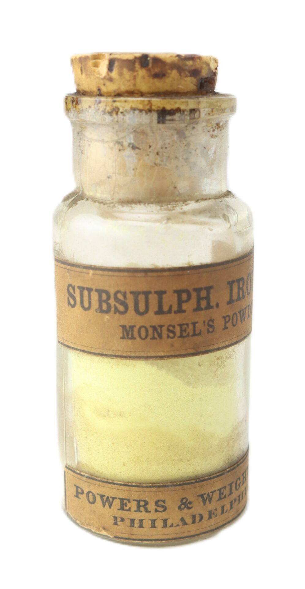 Civil War Apothecary Bottle with Contents – Subsulphate of Iron (Monsel’s Powder), Powers & Weightman, Philadelphia