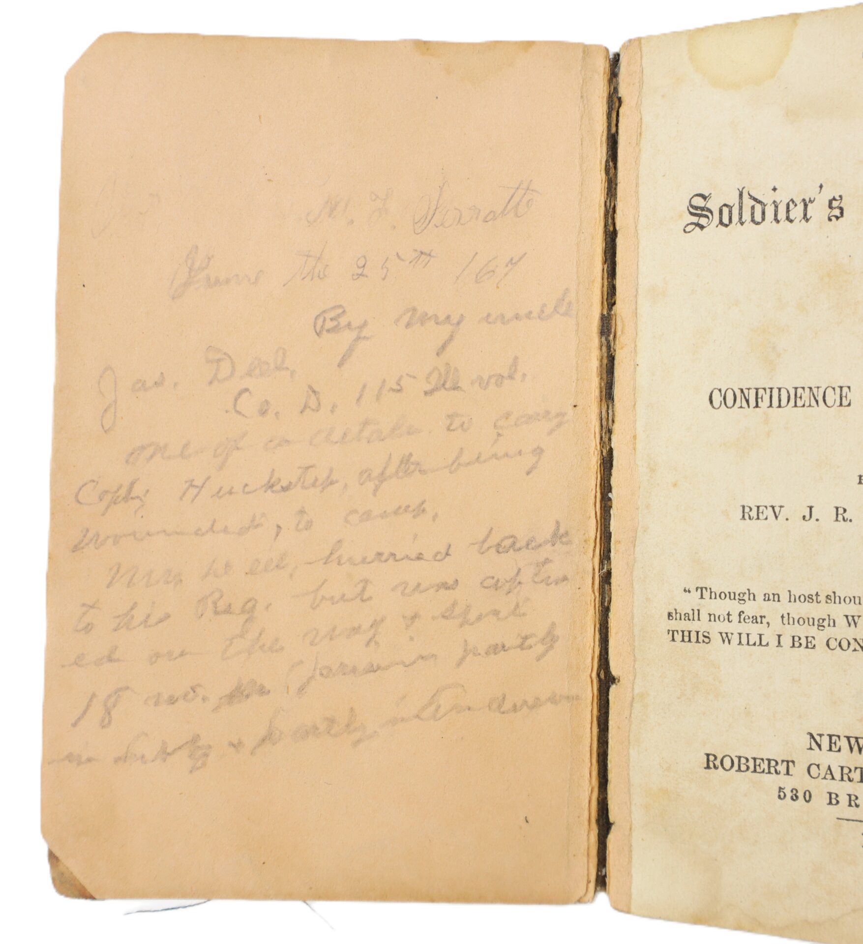 Identified Civil War Soldier’s Devotional “The Soldier’s Text-Book” – 1861 Carried by Pvt. James Deel, Co. D, 115th Illinois Infantry