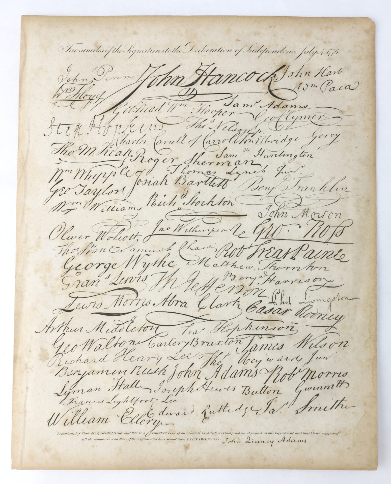Facsimiles of the Signatures to the Declaration of Independence
