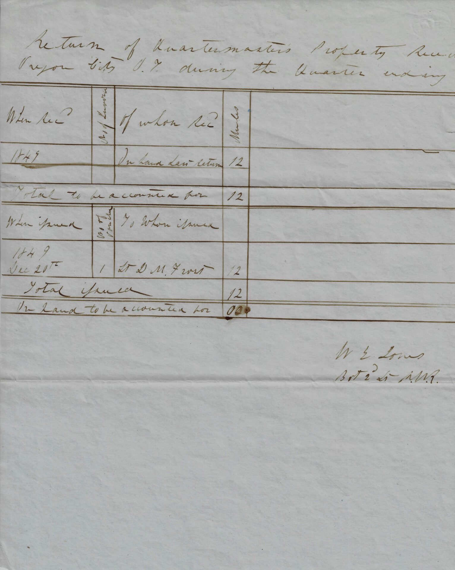 Grumble Jones Autograph Return of Quartermaster’s Property Signs “W. E. Jones Brevet 2nd Lieutenant” / SOLD